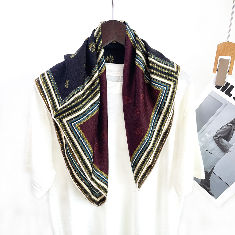 뽕나무 실크 울 한 잎 봄과 가을 65 실크 울 스퀘어 스카프 여자 가을 겨울 하이 엔드 올 매치 실크 스카프 양면 스카프