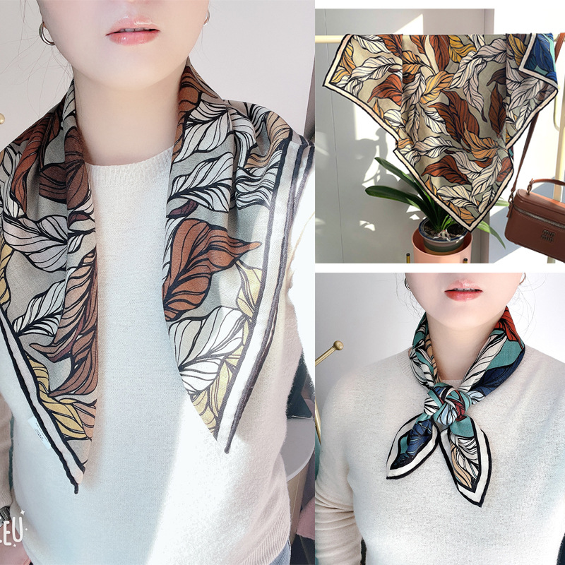 뽕나무 실크 울 한 잎 봄과 가을 65 실크 울 스퀘어 스카프 여자 가을 겨울 하이 엔드 올 매치 실크 스카프 양면 스카프스토어 가기