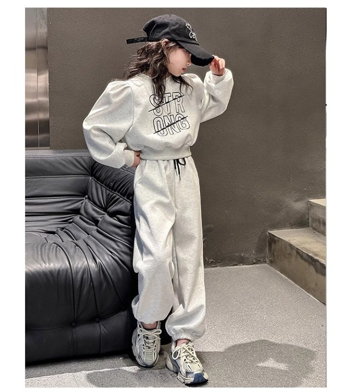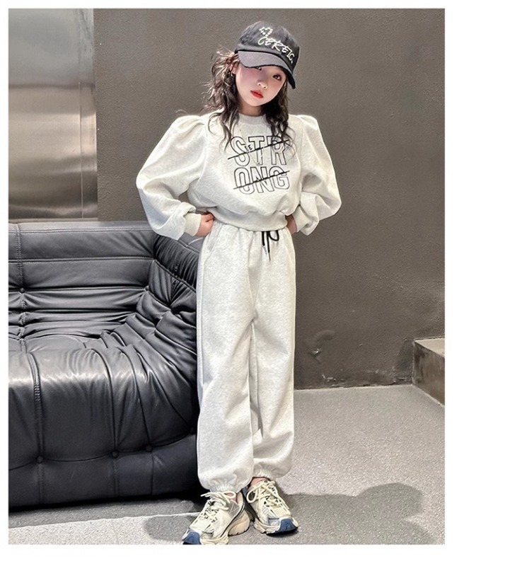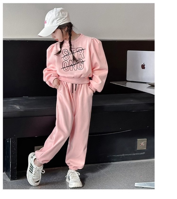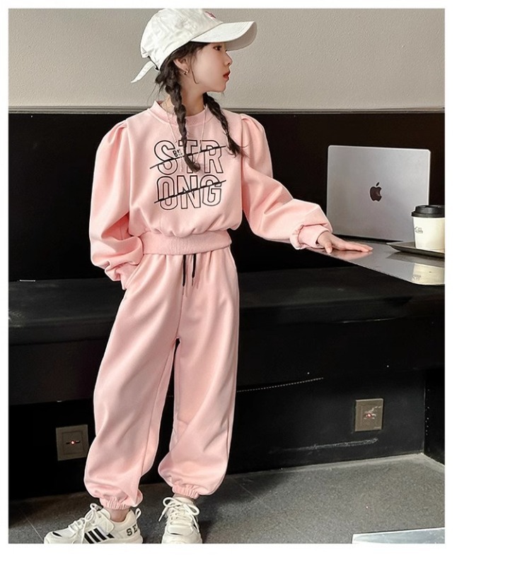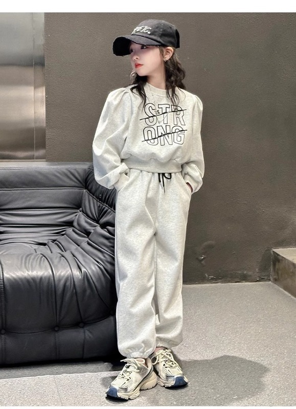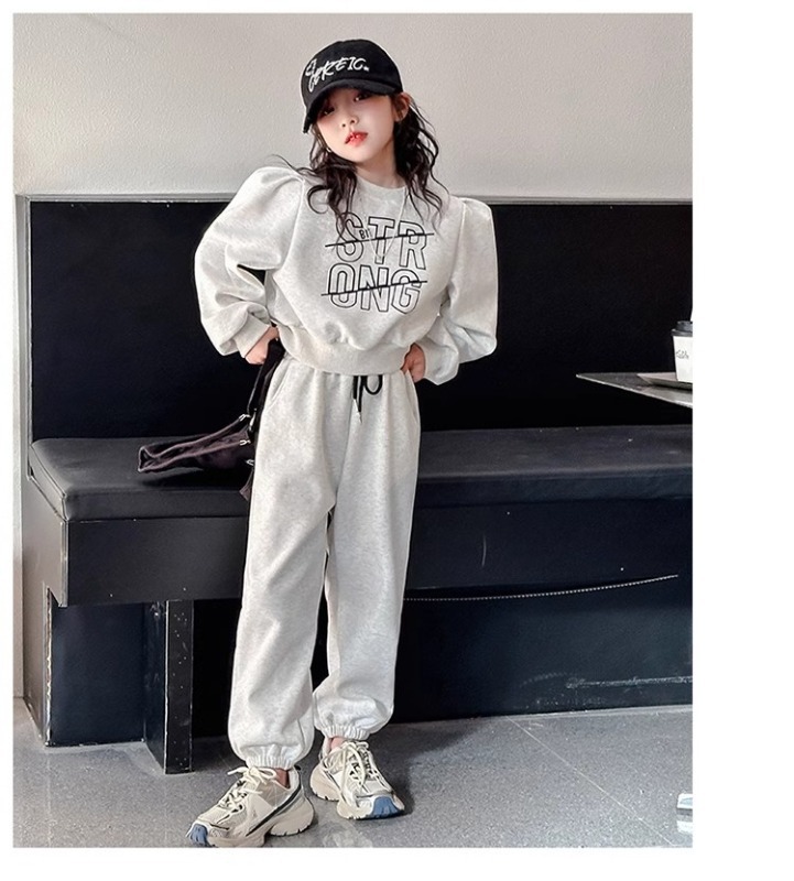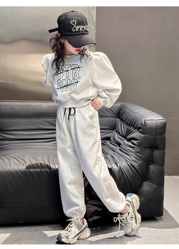 소녀 스웨트 셔츠 세트 캐주얼 스포츠 스웨트 바지 달콤한 쿨 어린 소녀 2025 봄 새로운 유행 서양식 투피스 세트