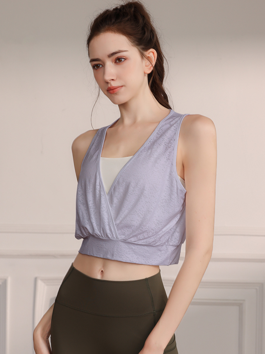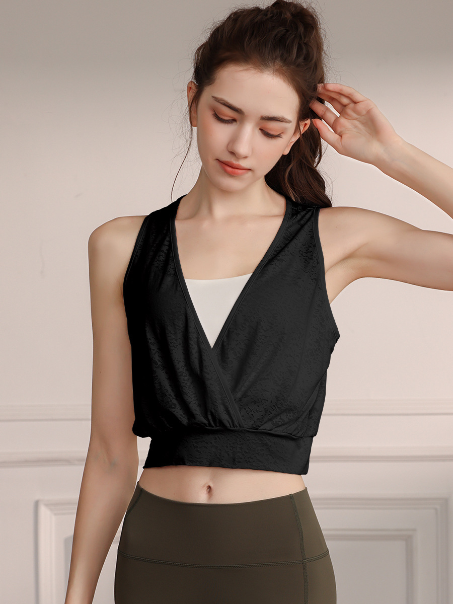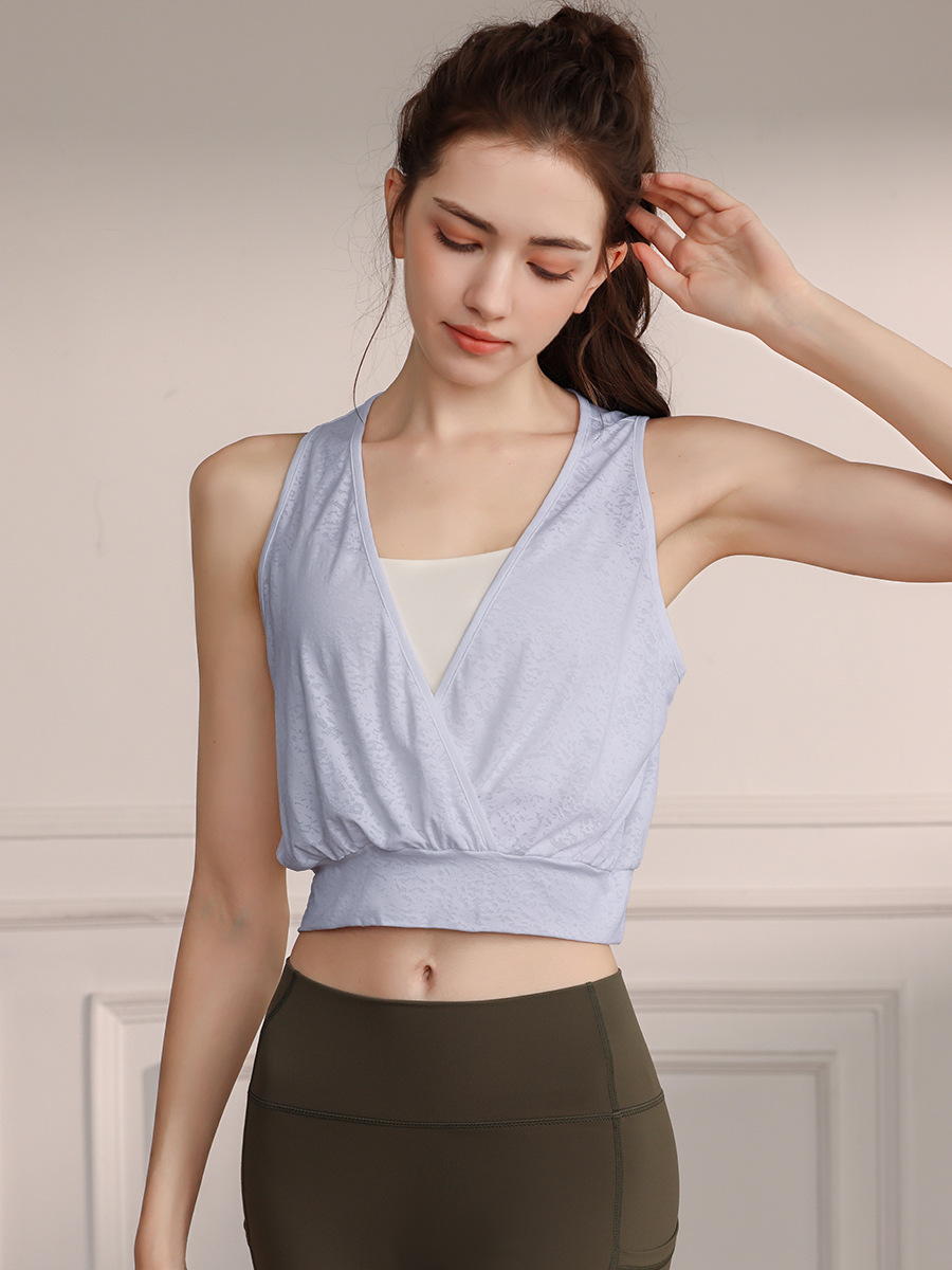 하이 엔드 패션 나일론 자카드 스포츠 조끼 여성 느슨한 전문 피트니스 요가 의류 기질 스포츠 블라우스 여름스토어 가기