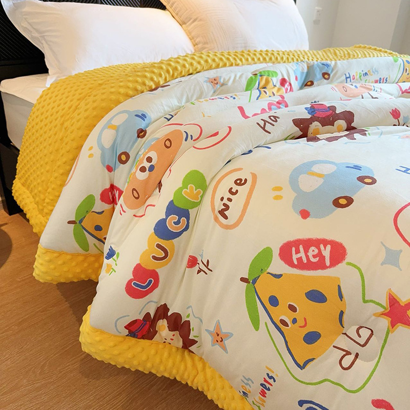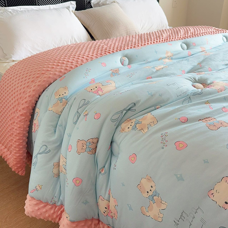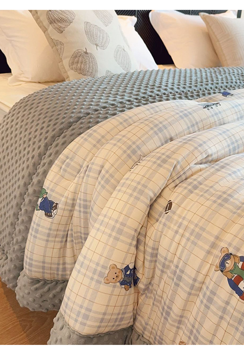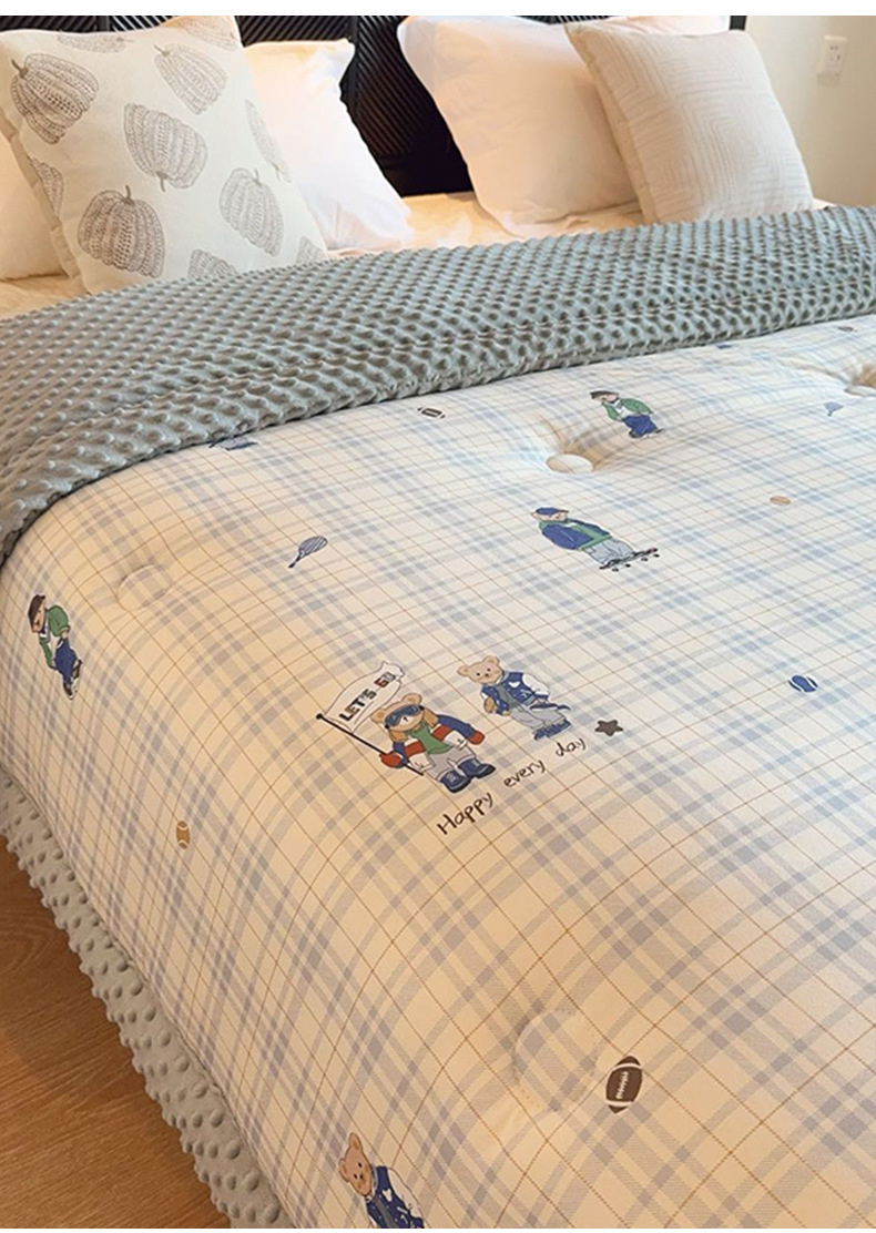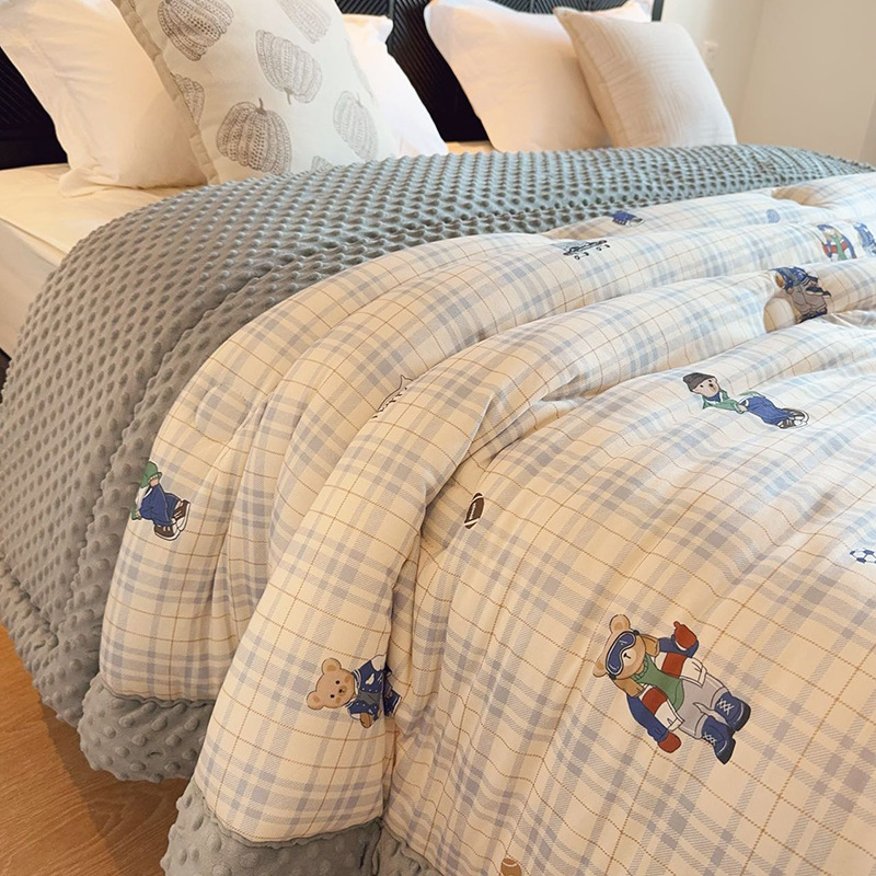 곰 클래스 A 니트 코튼 빈 벨벳 담요 퀼트 만화 단일 콩 퀼트 유아 정원 낮잠 퀼트