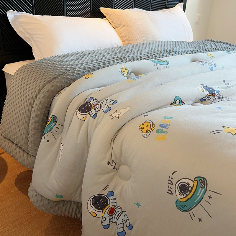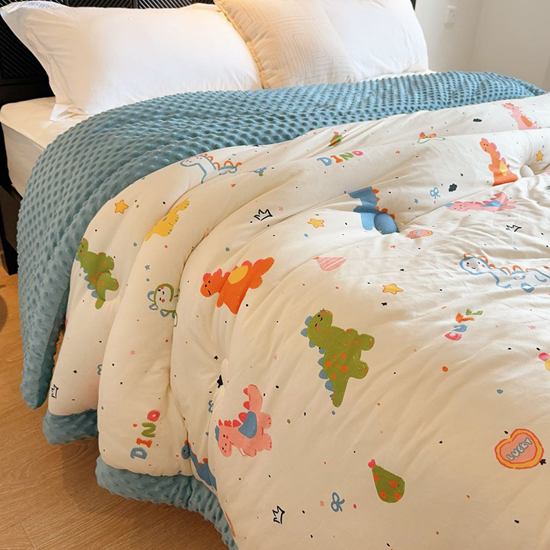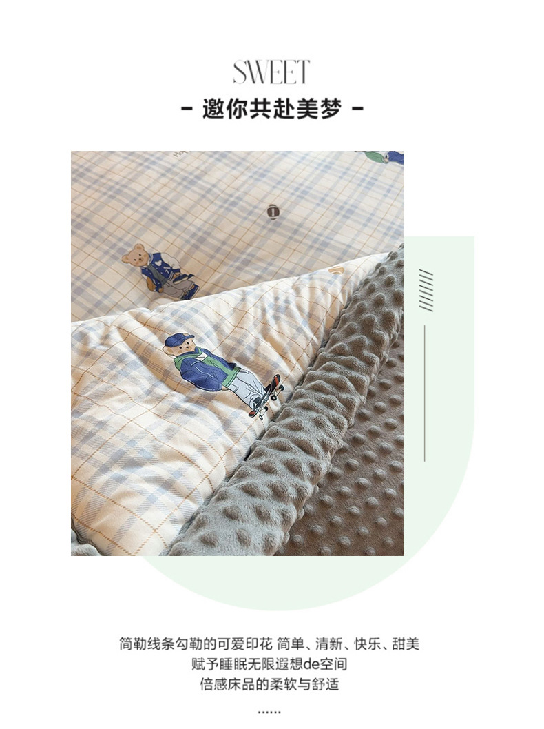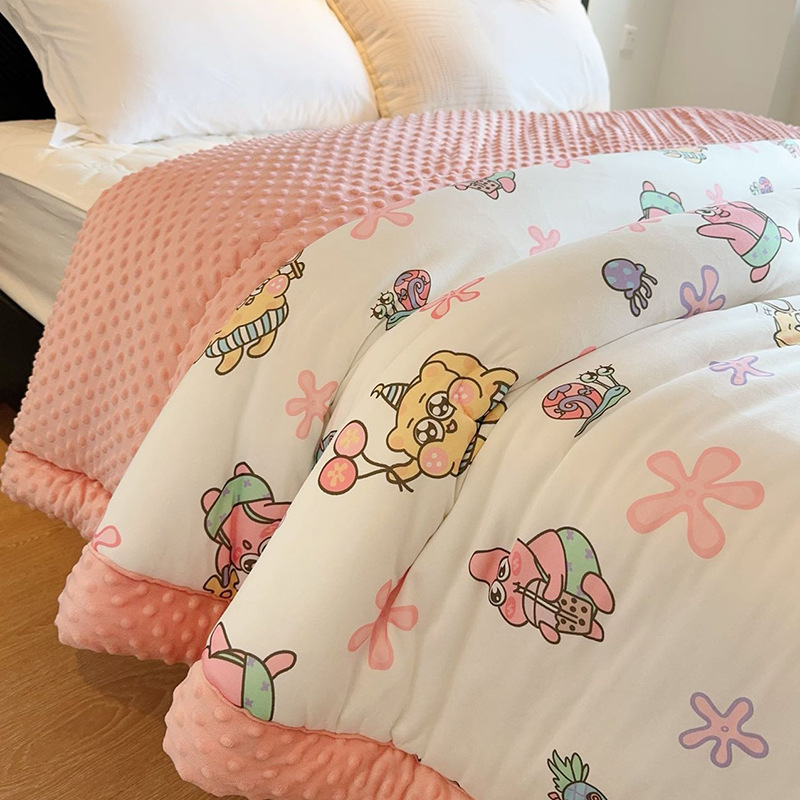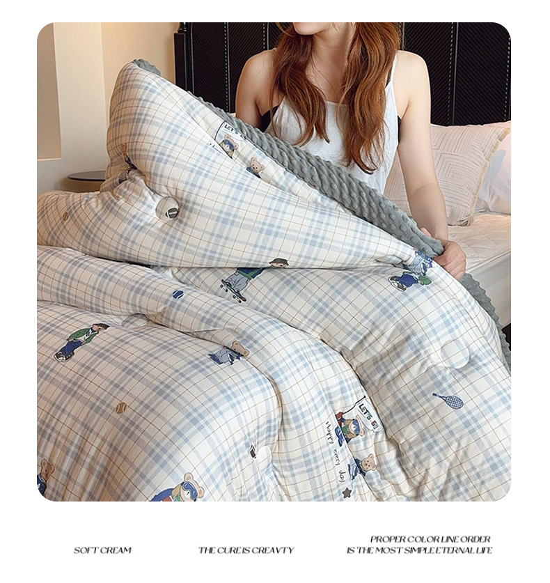 곰 클래스 A 니트 코튼 빈 벨벳 담요 퀼트 만화 단일 콩 퀼트 유아 정원 낮잠 퀼트