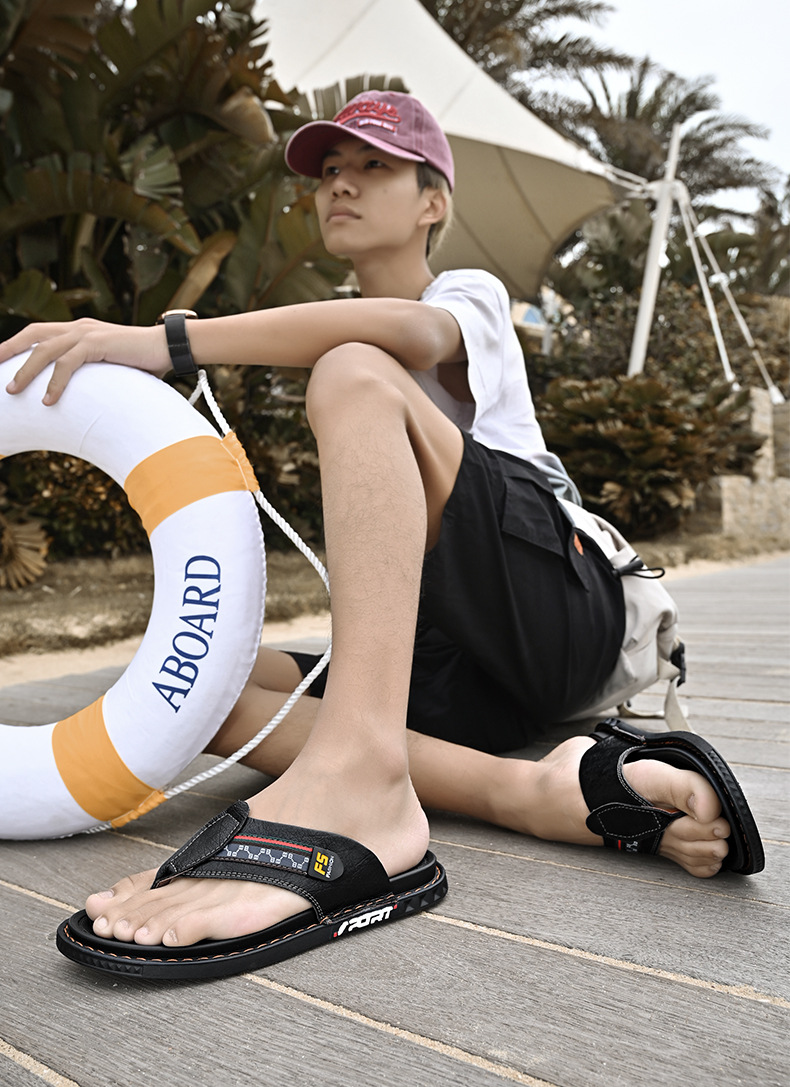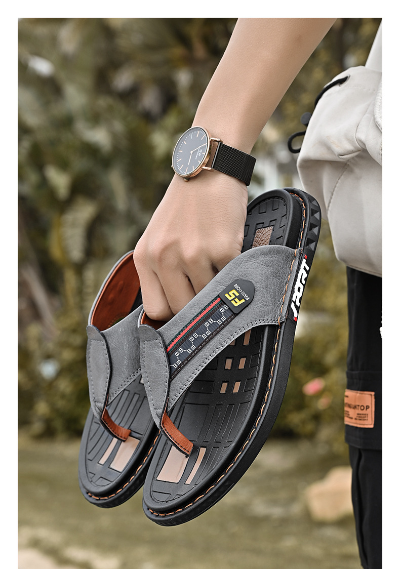 국경 간 남성용 샌들 슬리퍼 가죽 플러스 사이즈 통기성 신발 대외 무역 아마존 캐주얼 남성용 신발 남성용 플립 플롭스토어 가기