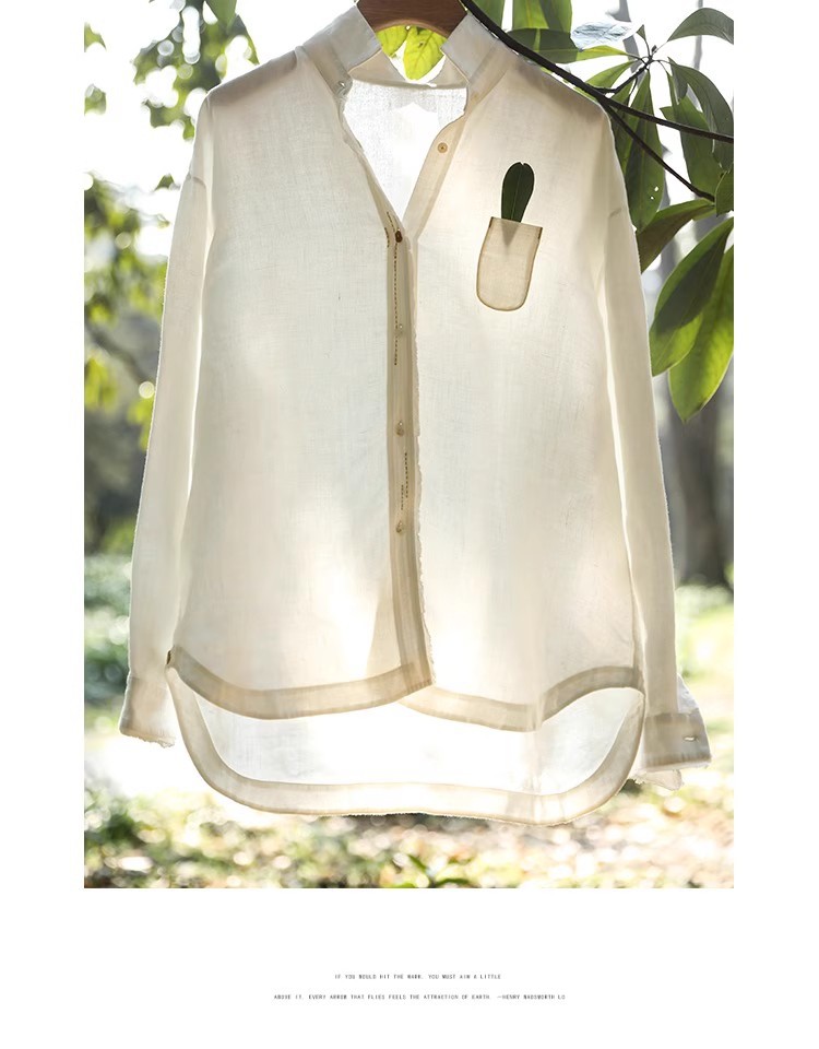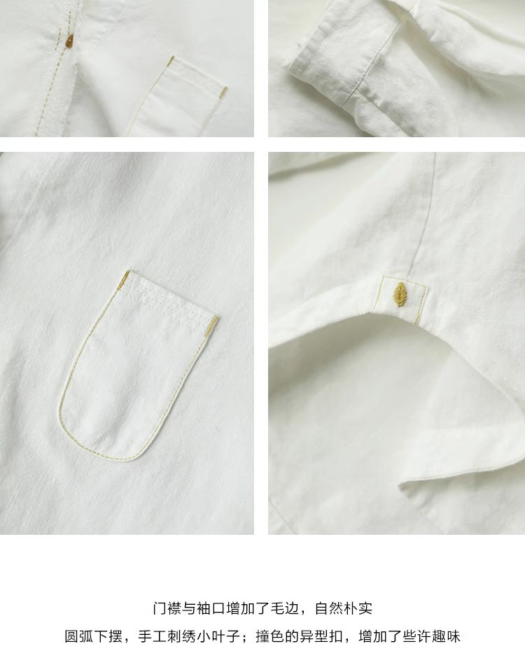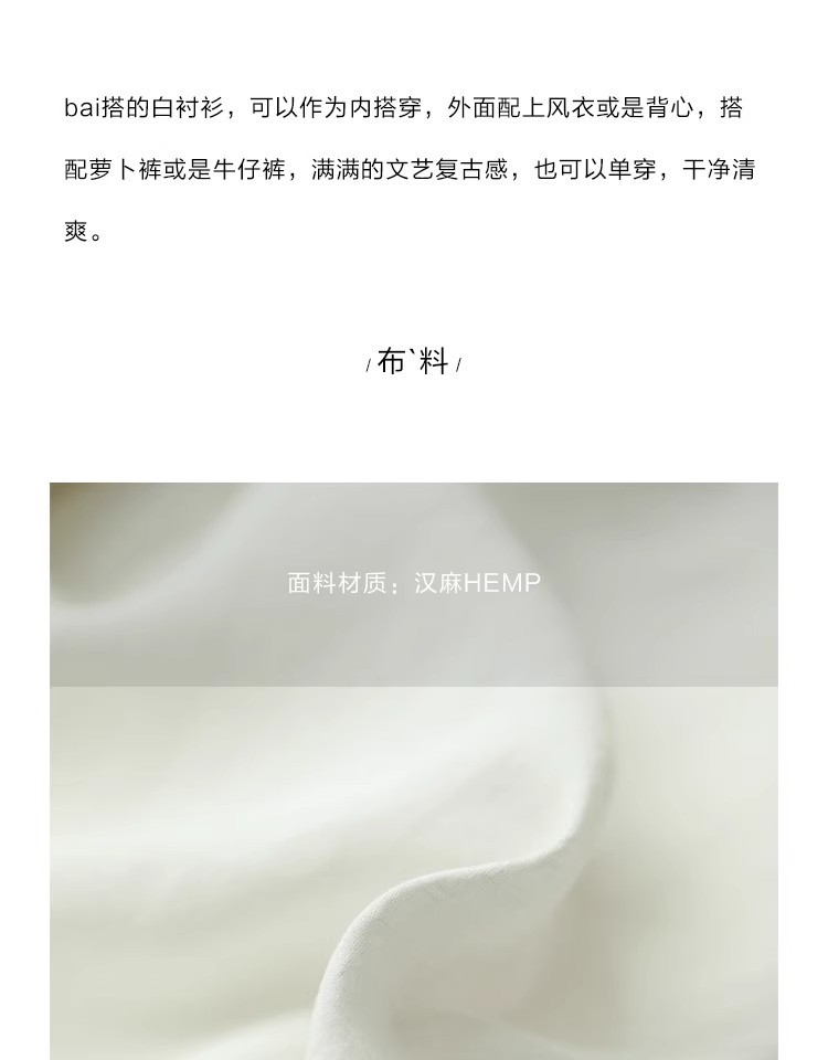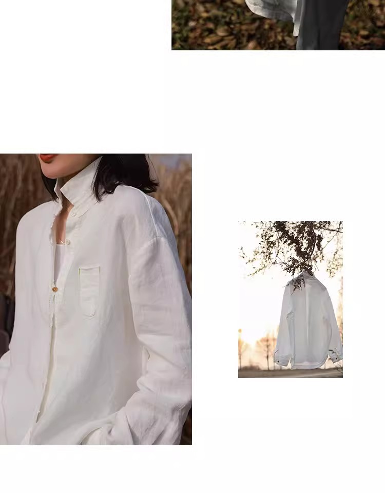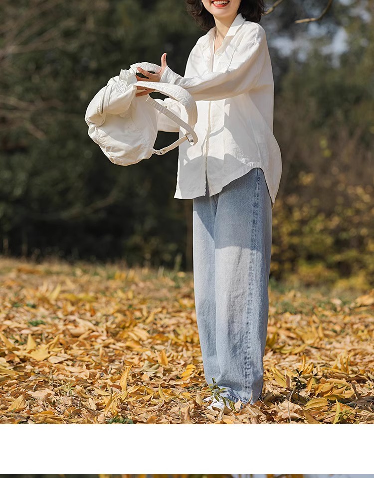 2025 봄과 가을 새로운 도착 대마 셔츠 소녀의 캐주얼 편안한 복고풍 유행 리넨 어깨 드롭 긴팔 흰색 셔츠