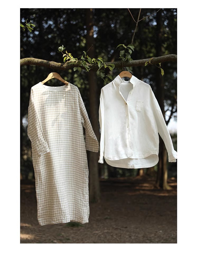2025 봄과 가을 새로운 도착 대마 셔츠 소녀의 캐주얼 편안한 복고풍 유행 리넨 어깨 드롭 긴팔 흰색 셔츠스토어 가기