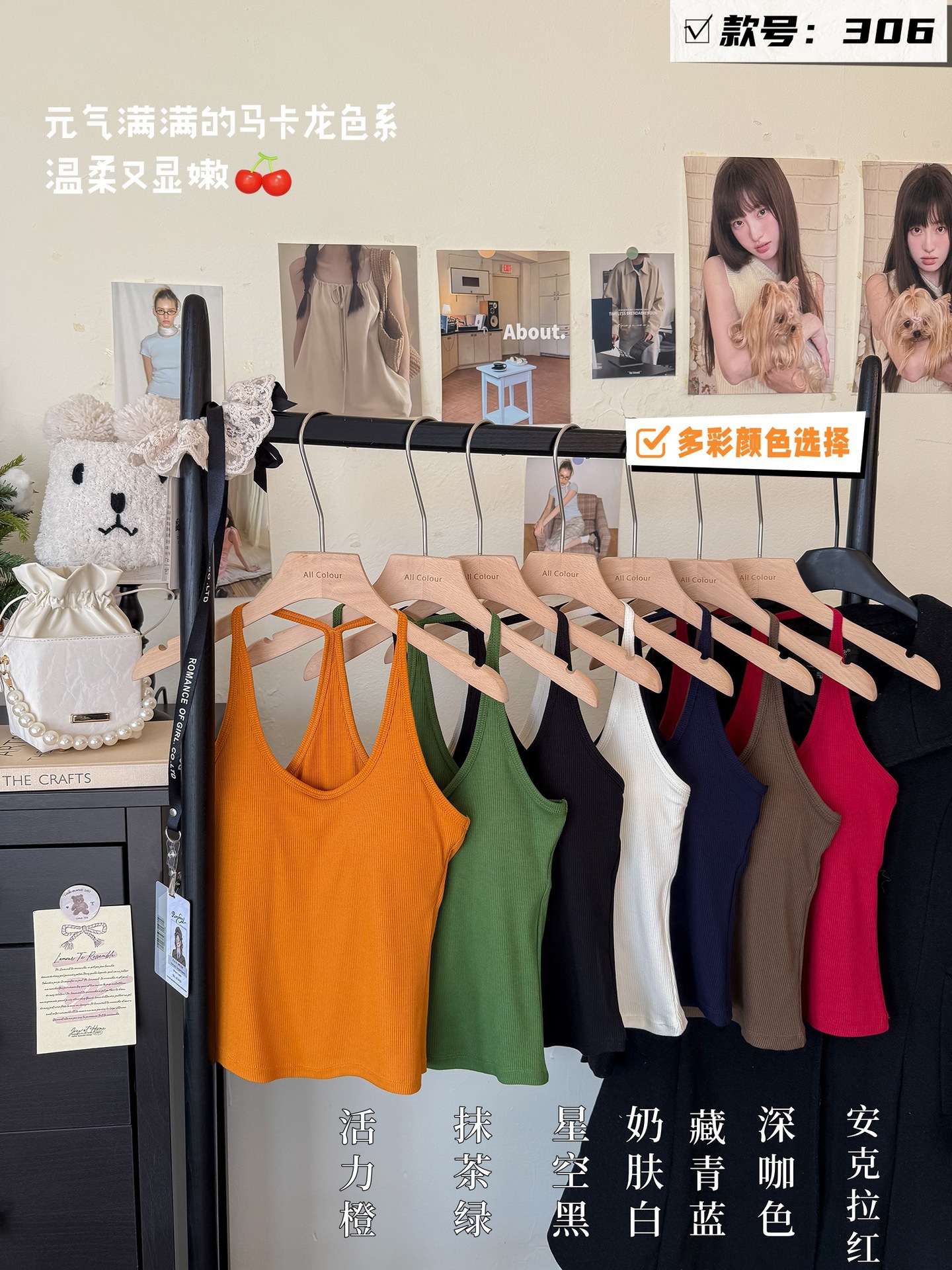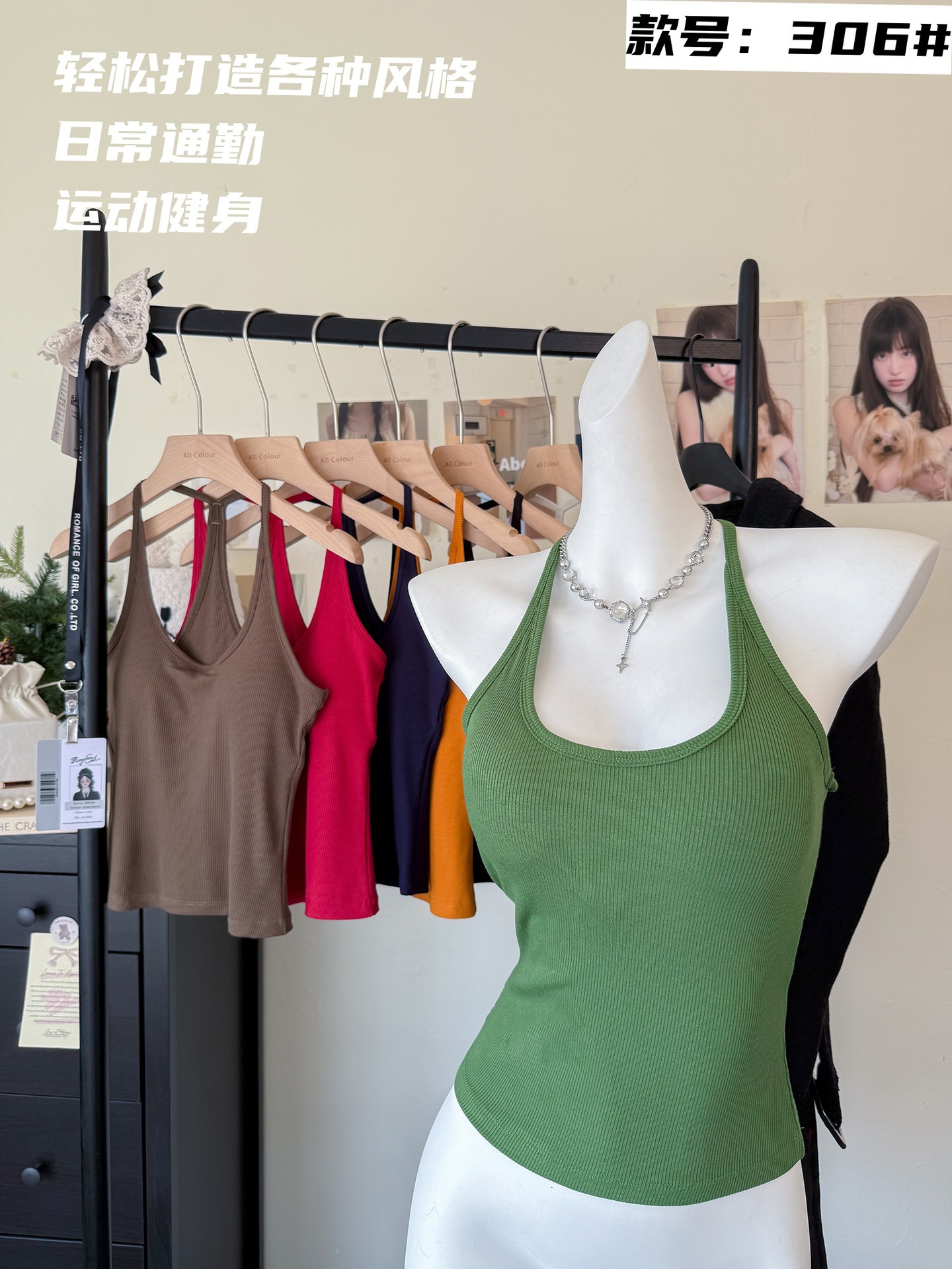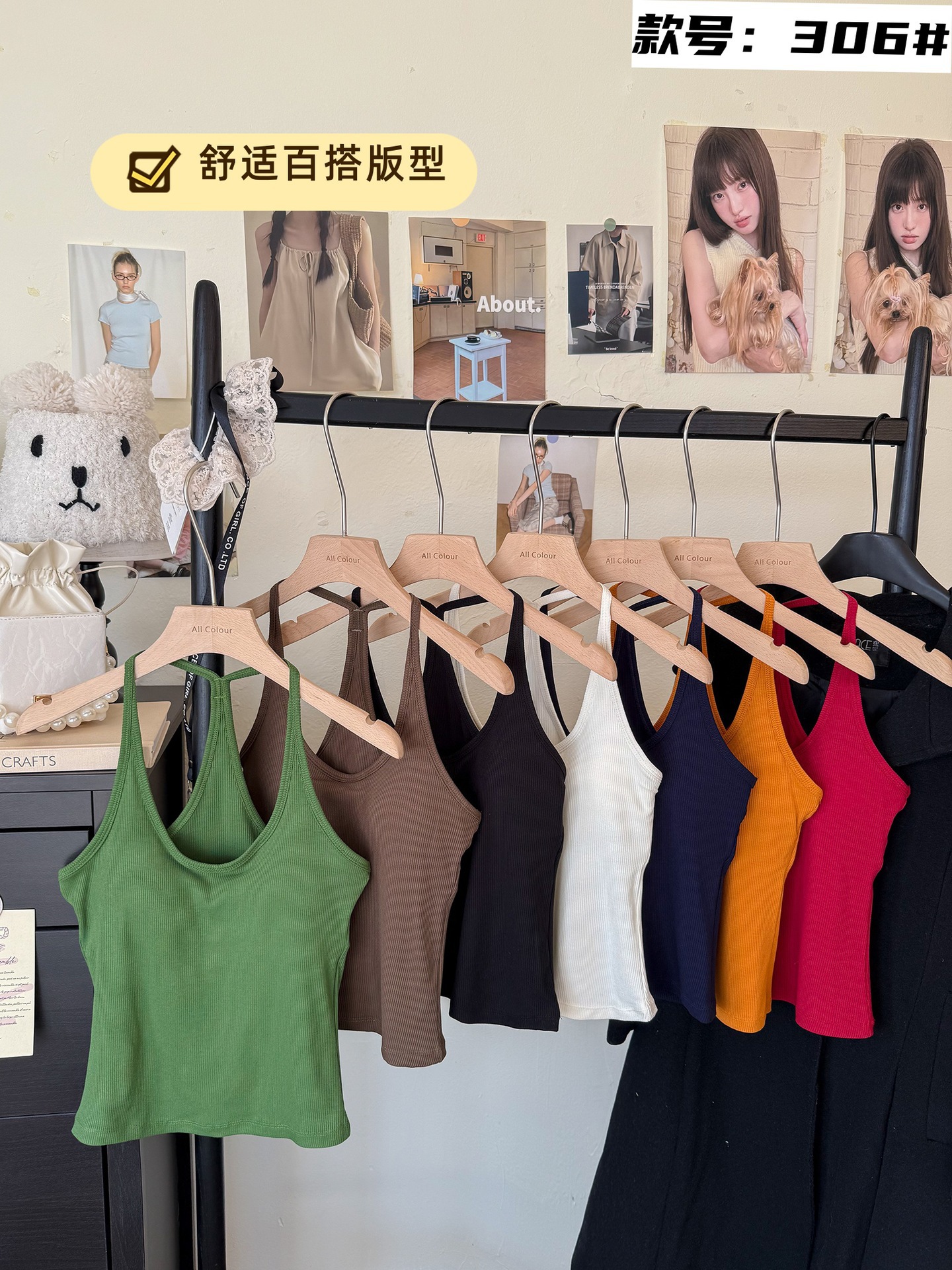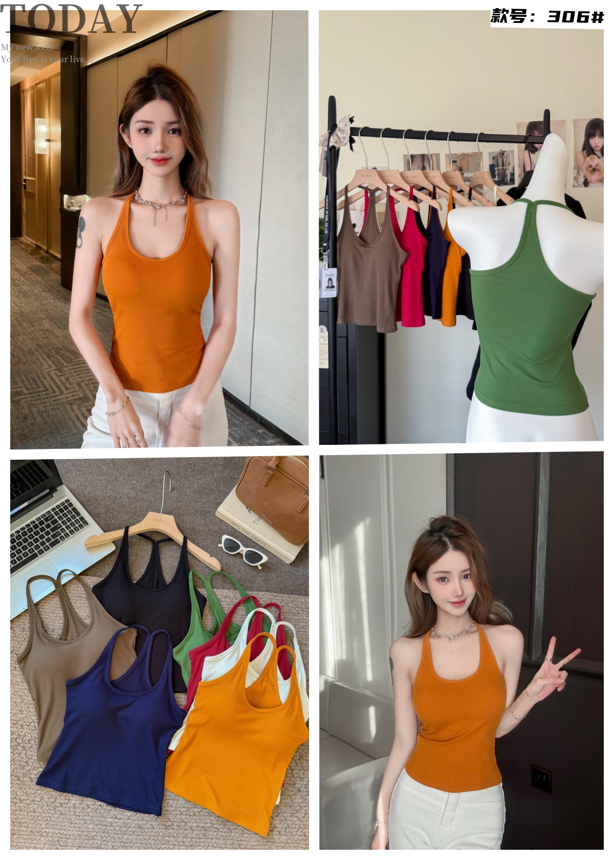 306 # 프랑스 스타일 교수형 목 크로스 어깨 스트랩 성적인 아름다운 백 조끼 슬림 핏 패션 올 매치 탑-여성용 가슴 패드 서스펜더스토어 가기