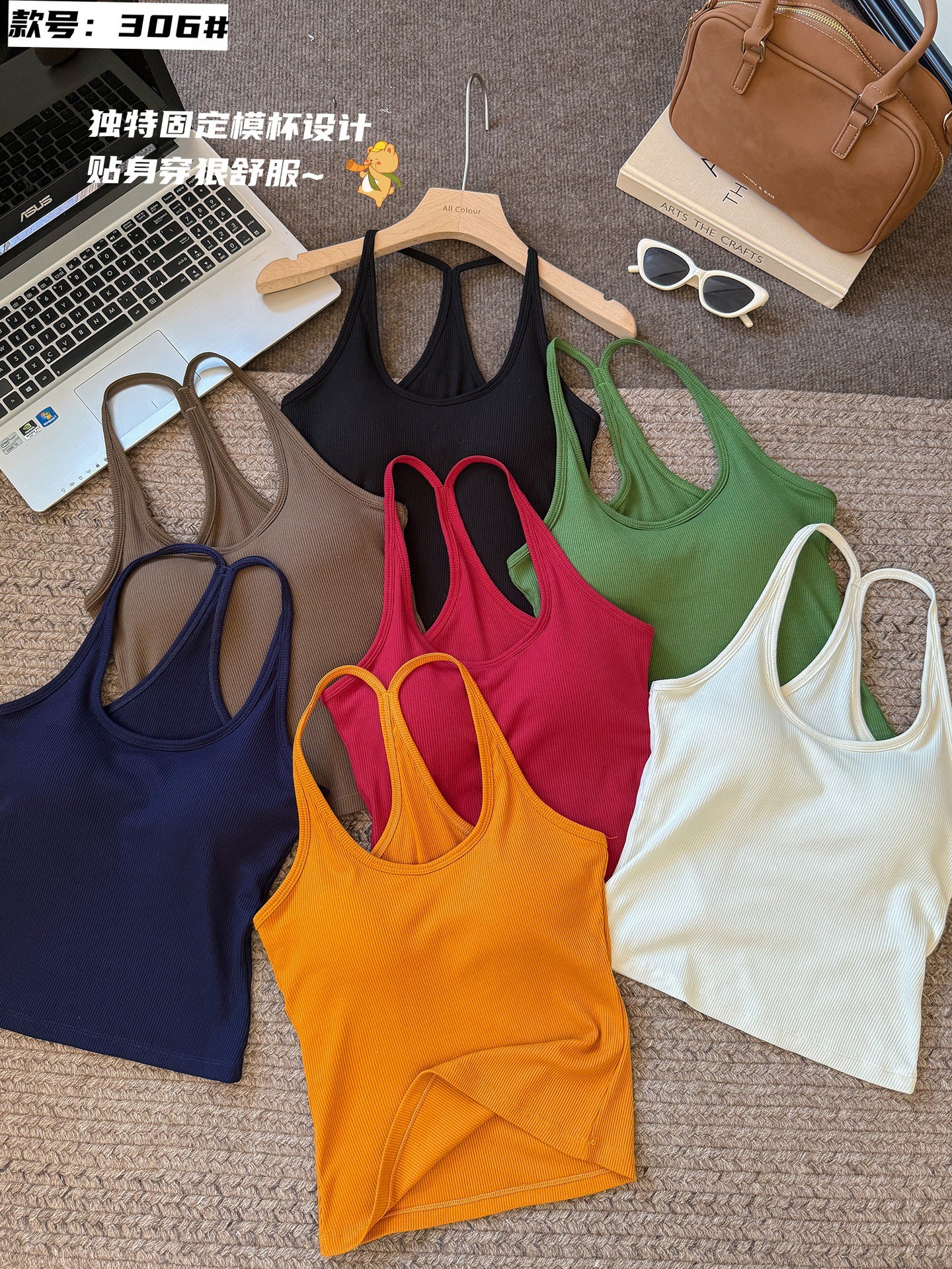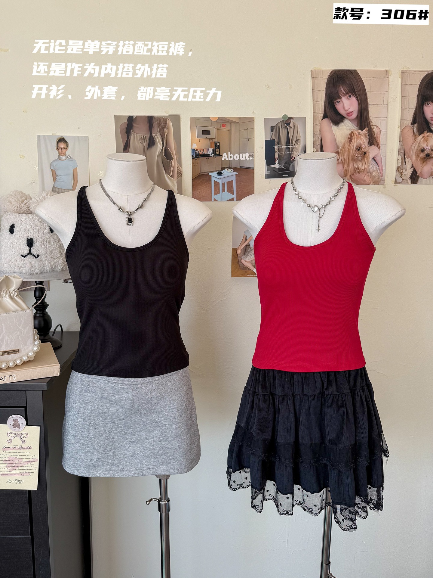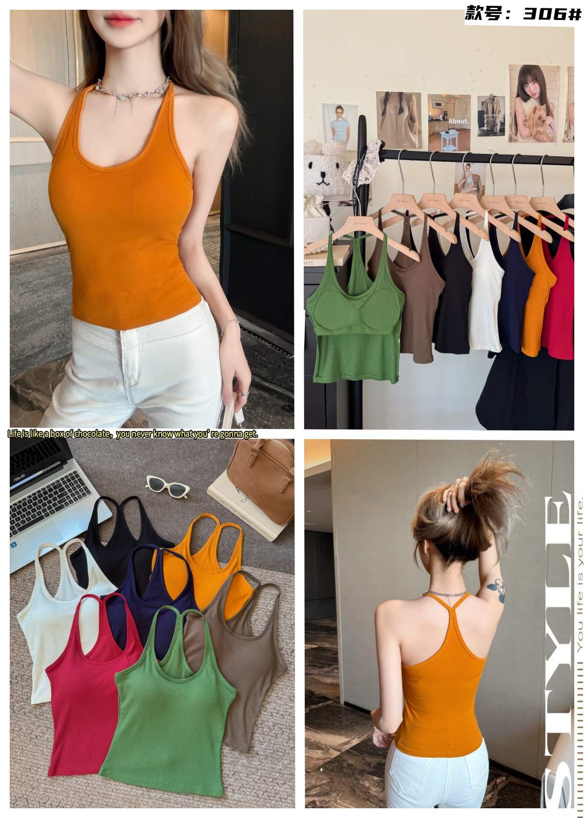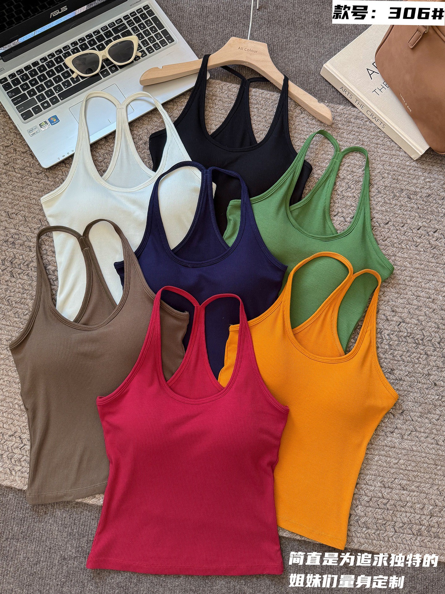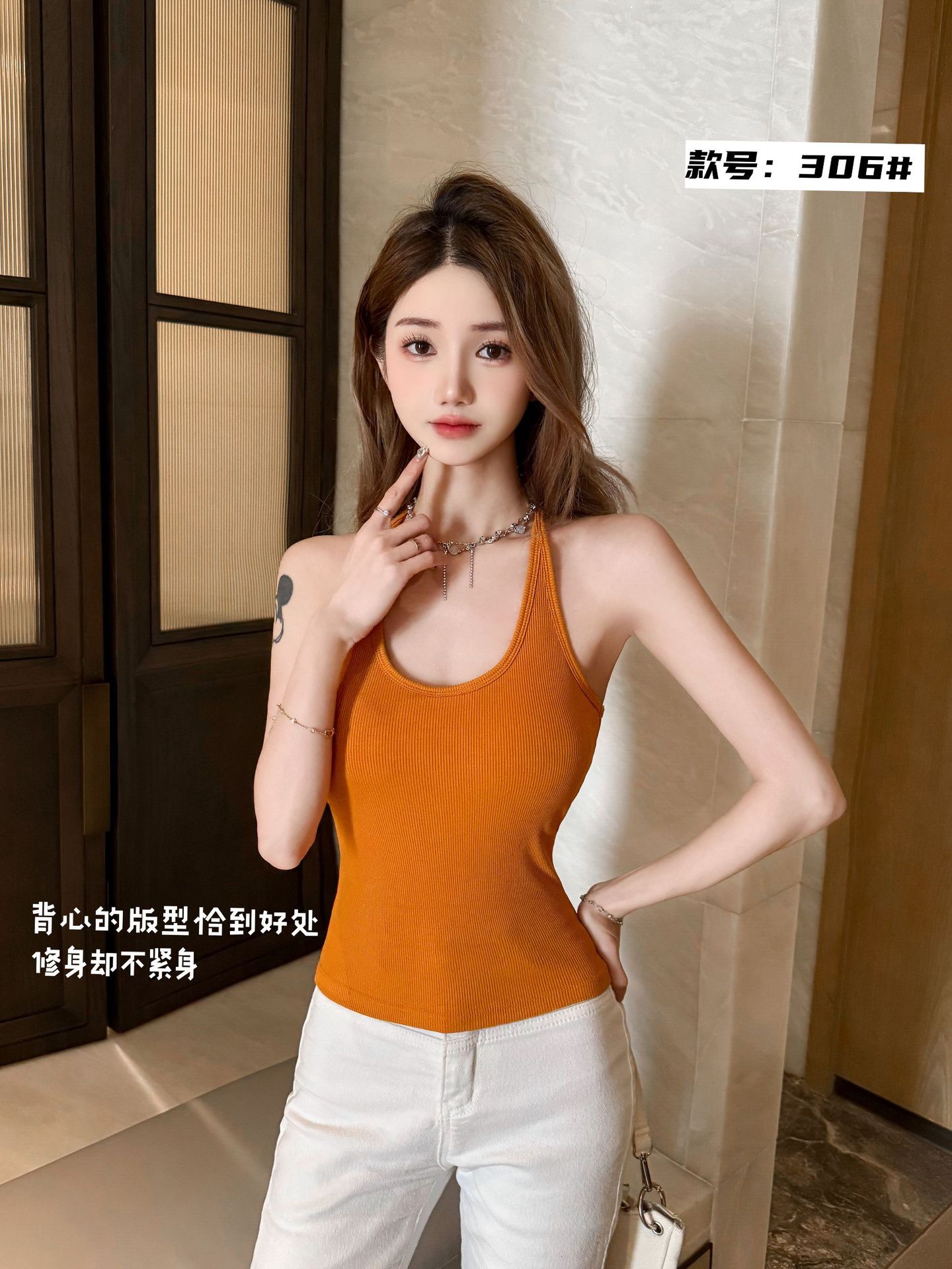 306 # 프랑스 스타일 교수형 목 크로스 어깨 스트랩 성적인 아름다운 백 조끼 슬림 핏 패션 올 매치 탑-여성용 가슴 패드 서스펜더스토어 가기