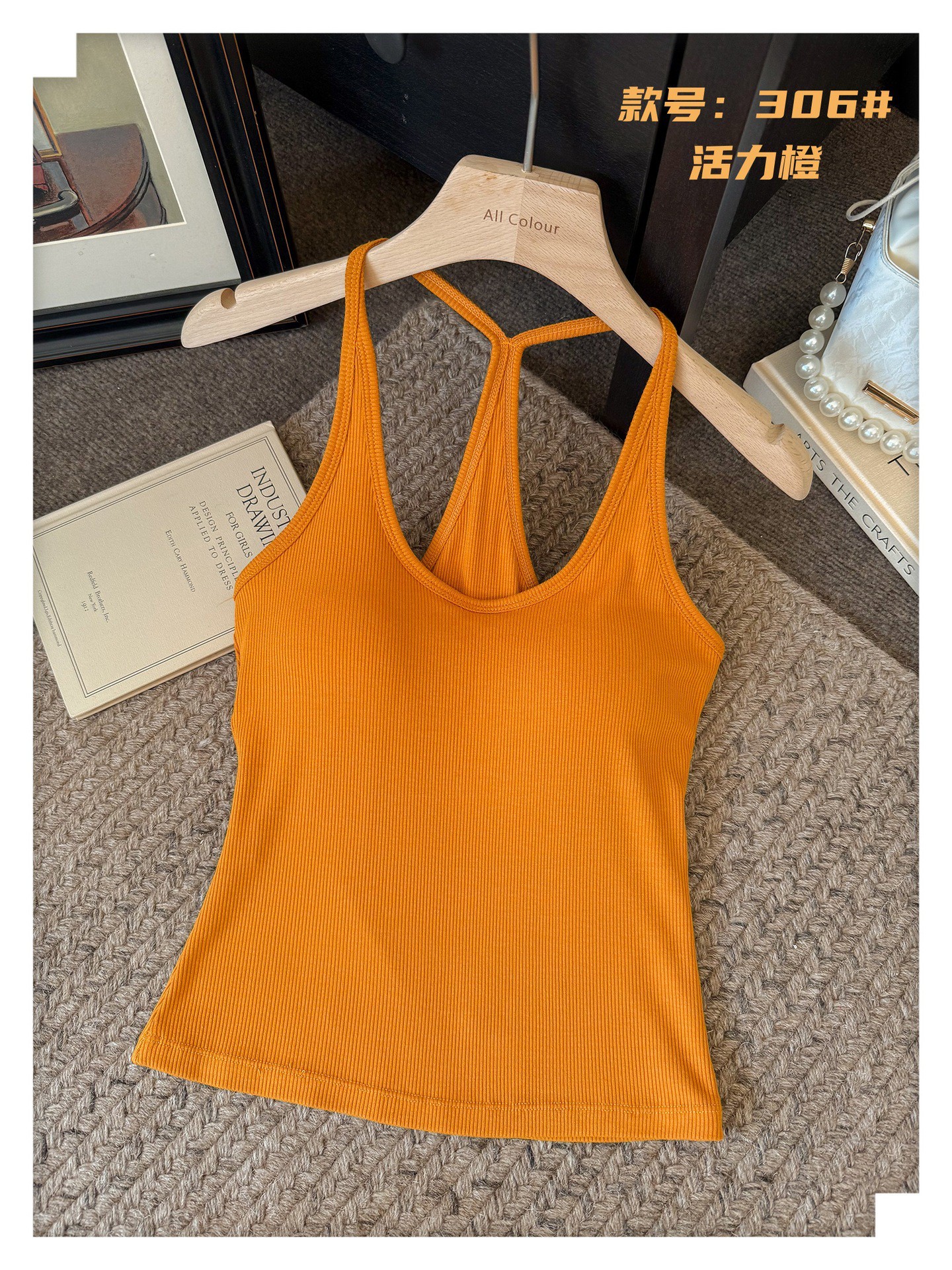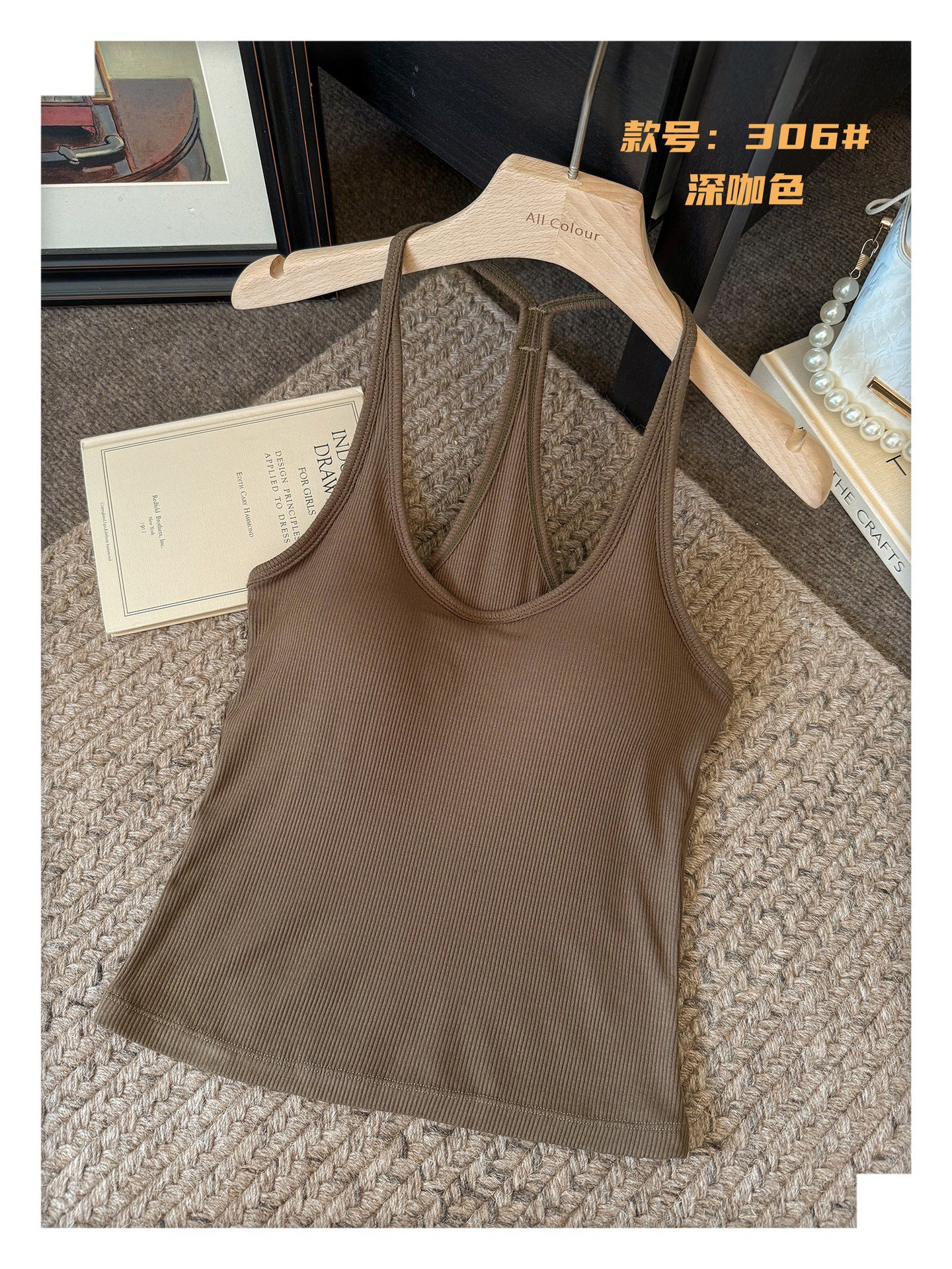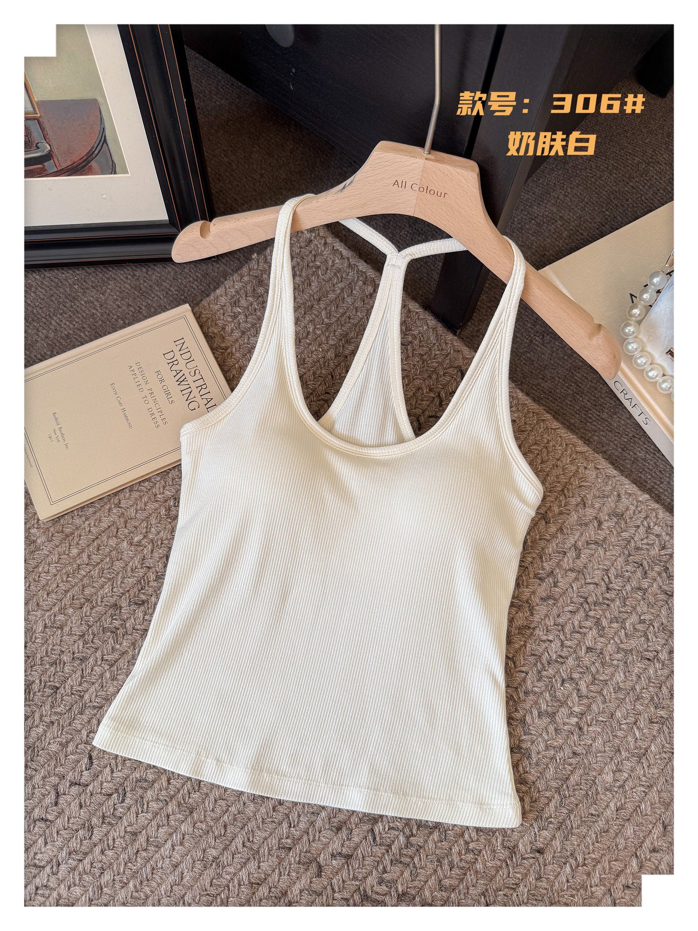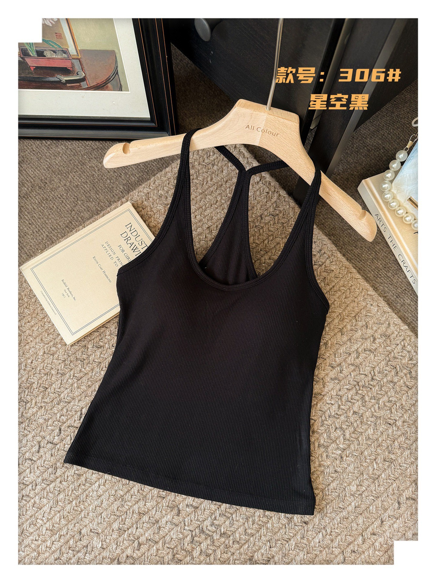 306 # 프랑스 스타일 교수형 목 크로스 어깨 스트랩 성적인 아름다운 백 조끼 슬림 핏 패션 올 매치 탑-여성용 가슴 패드 서스펜더
