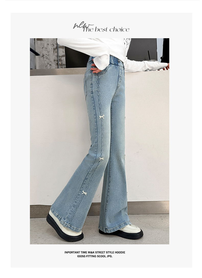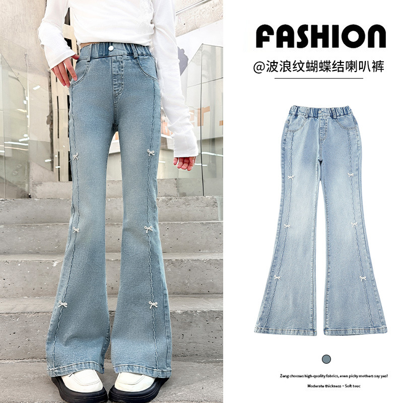 소녀 바지 봄과 가을 2025 새로운 어린이 마이크로 라 청바지 여름 얇은 큰 어린이 플레어 바지 캐주얼 바지스토어 가기