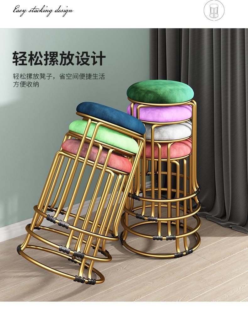 라이트 럭셔리 스틸 바 의자 현대 간단한 라운드 의자 가정용 거실 식탁 의자 노르딕 인터넷 인기있는 가정용 의자 벤치스토어 가기
