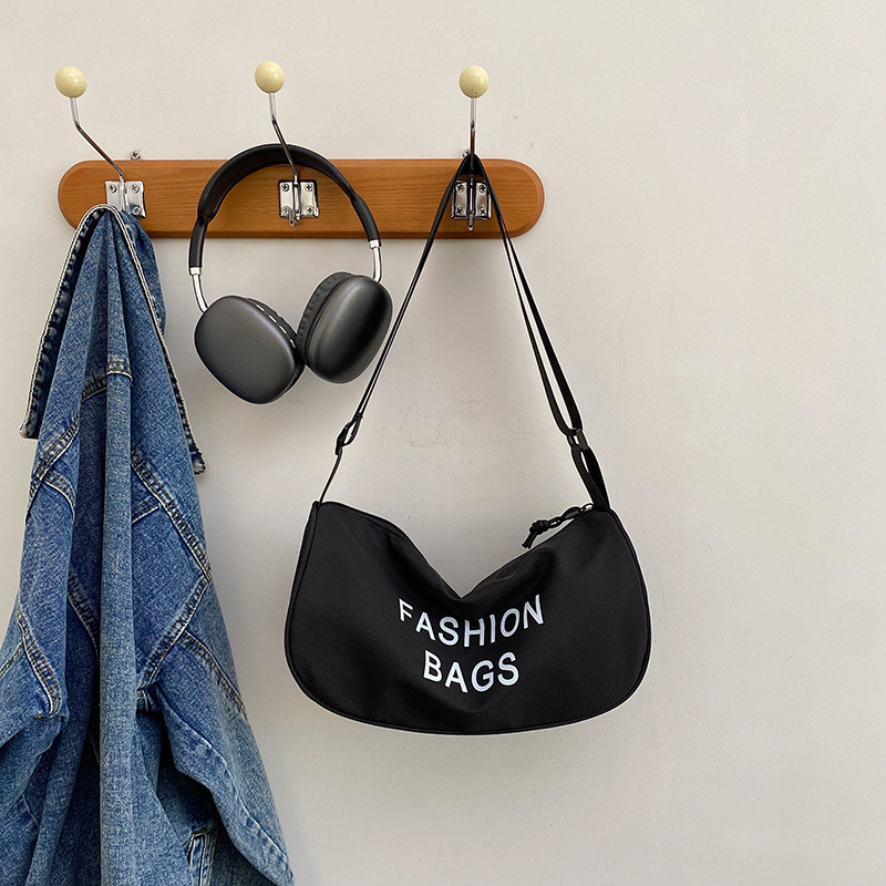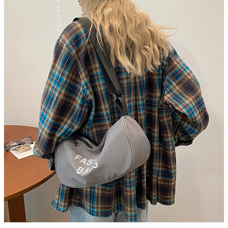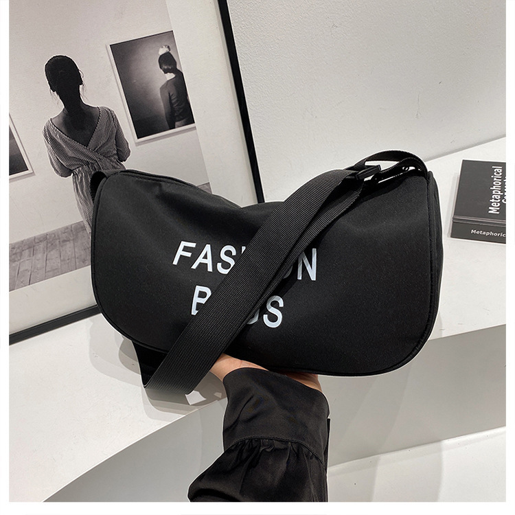일본식 나일론 가방 대용량 2024 겨울 새로운 단색 편지 가방 캐주얼 아트 학생 게으른 스타일 크로스 바디 백