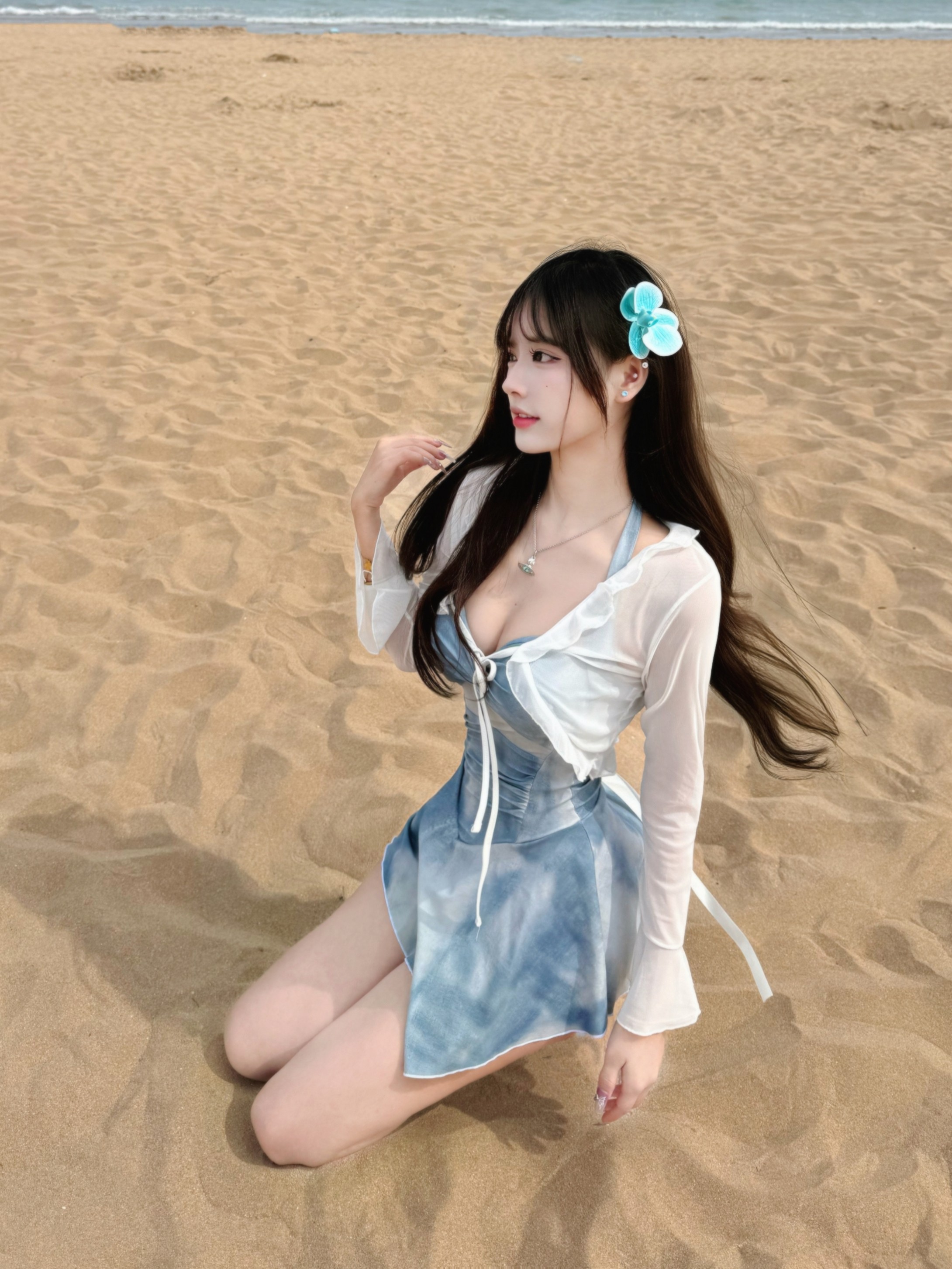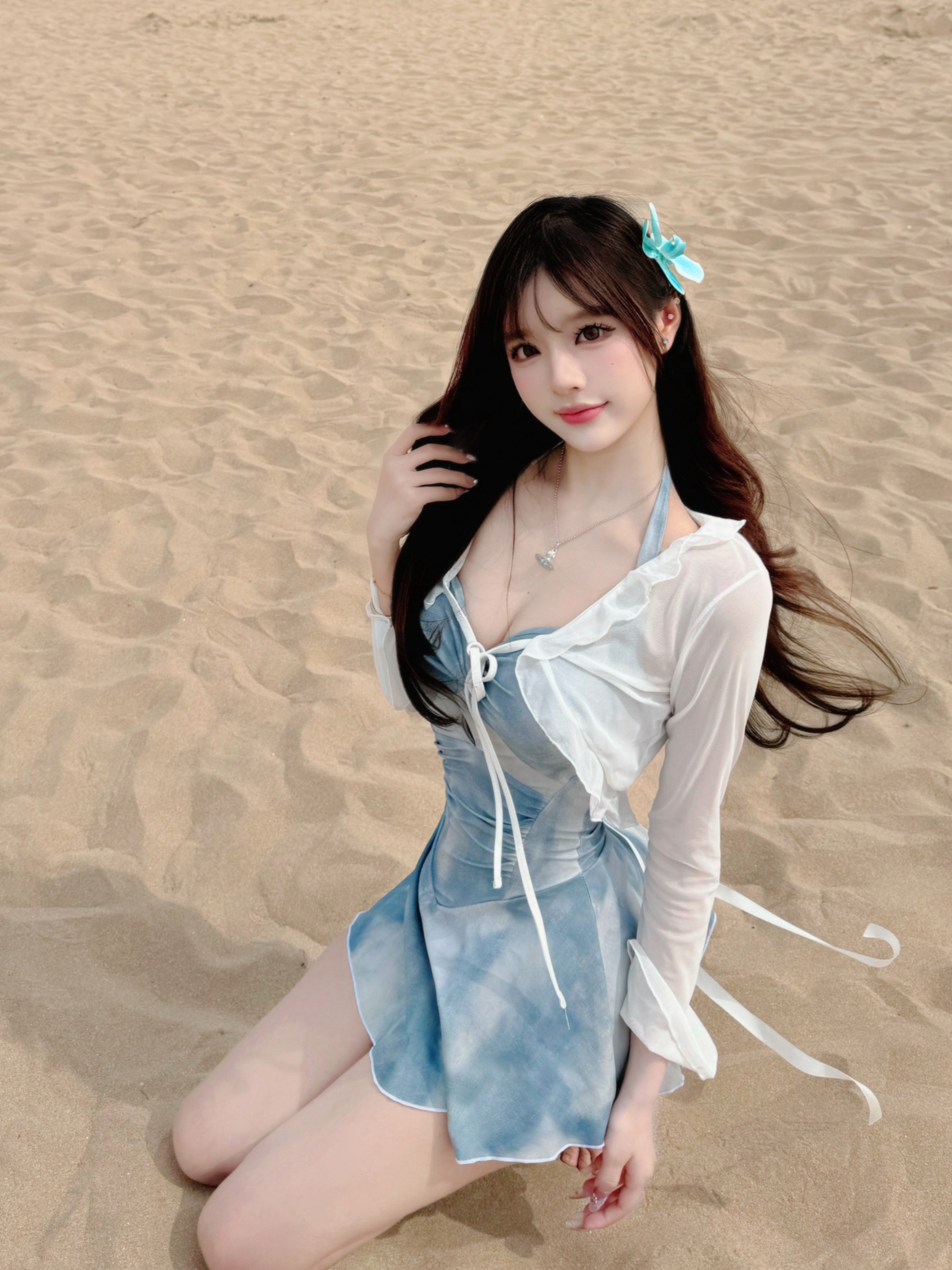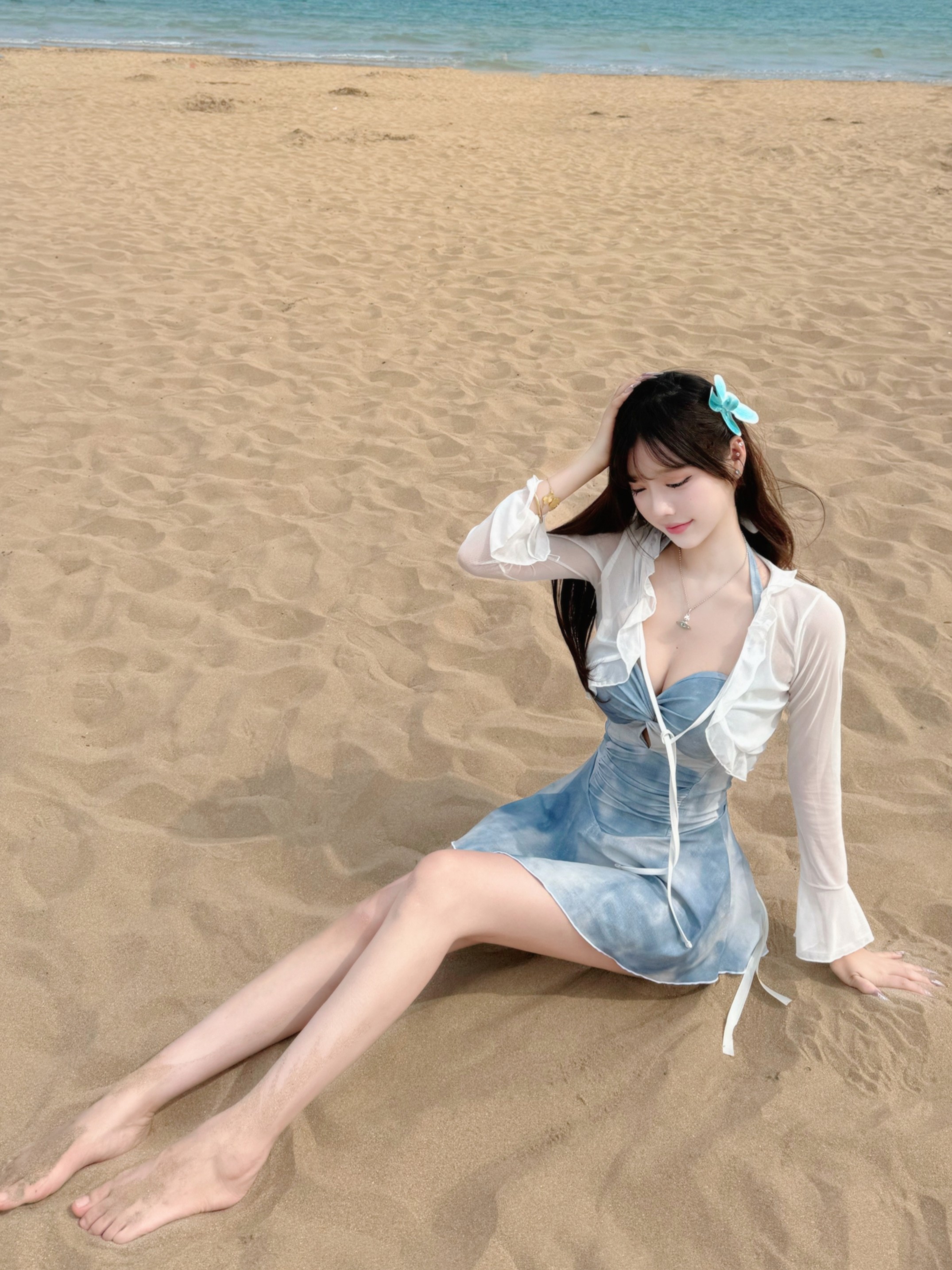 수영복 여성의 2025 새로운 넥타이 염색 블루 교수형 목 스커트 원피스 패션 하이 엔드 센스 약간의 뚱뚱한 소녀의 몸 슬리밍스토어 가기