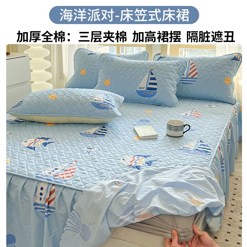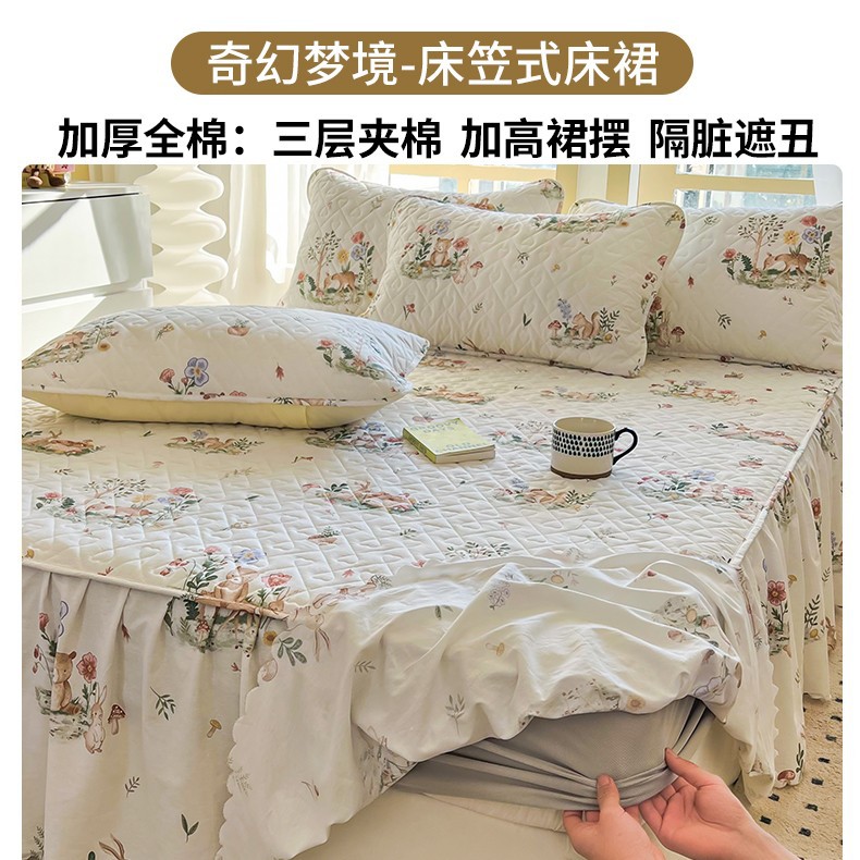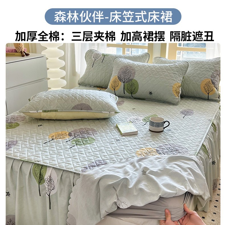 • ★[침대스커트 4종세트] 120x200cm 침대스커트 + 150x200 이불커버 + 베갯잇 한쌍