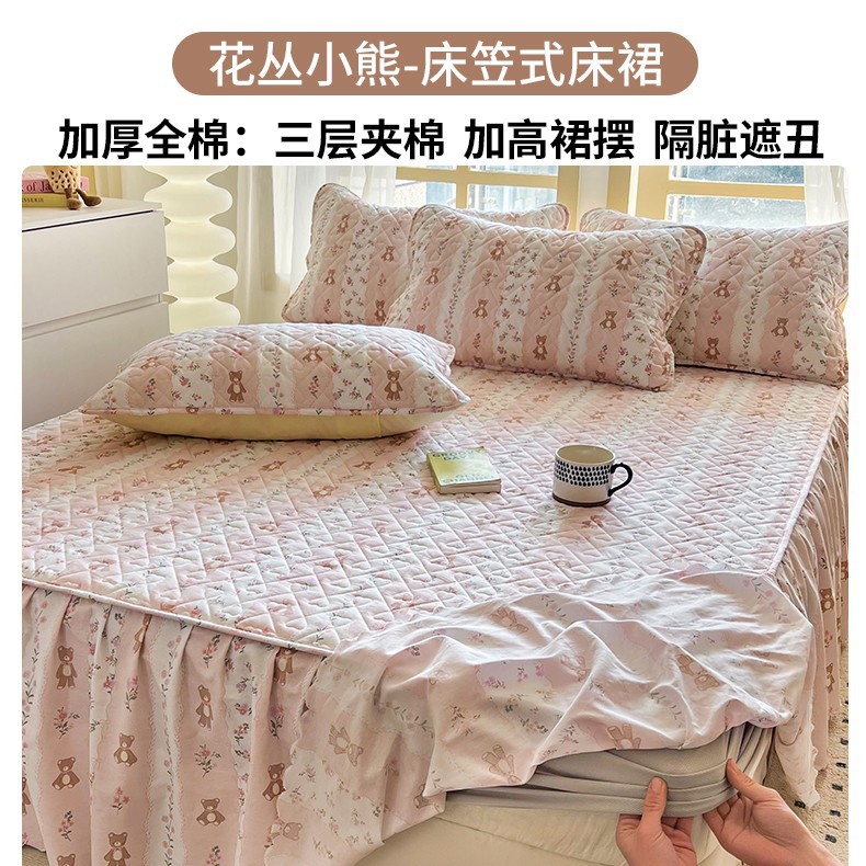 • ★[베드스커트 4종세트] 150x200cm 베드스커트 + 150x200 이불커버 + 베갯잇 한쌍