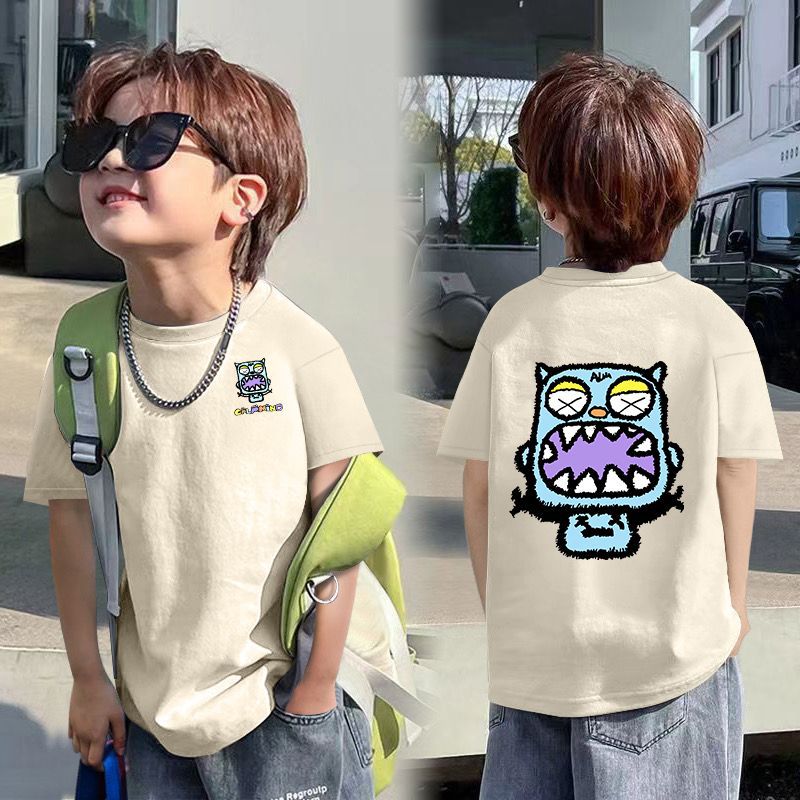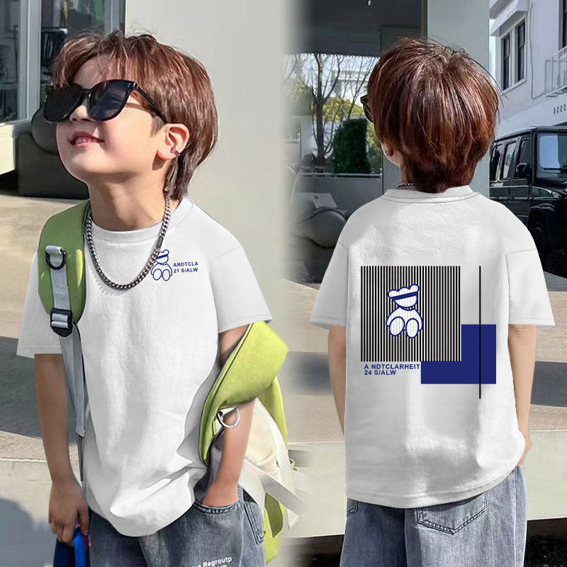2025 여름 새로운 면 한국 스타일 트렌디 한 소년 티셔츠 유행 인 스타일 아기 잘 생긴 짧은 소매 멋진 옷스토어 가기