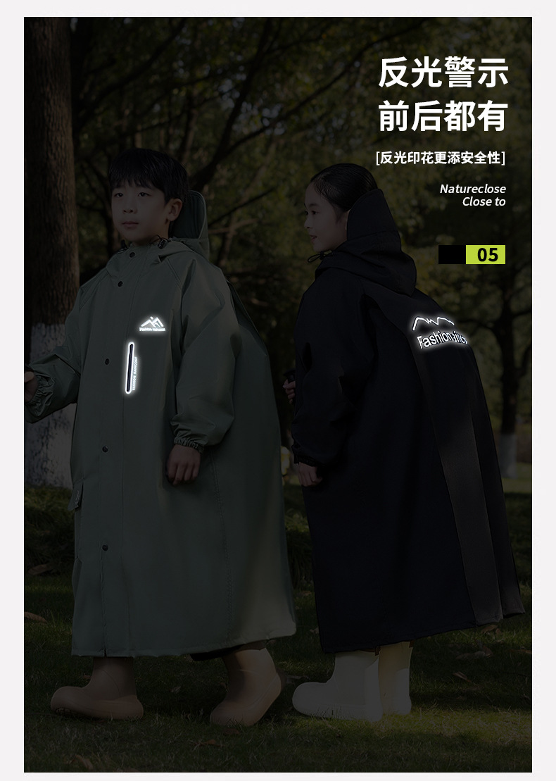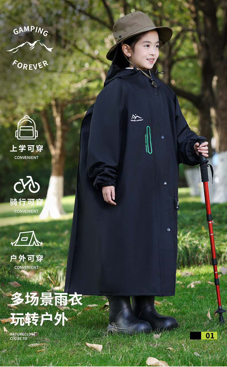 남학생과 여학생을위한 어린이 비옷 중학교 및 초등학생을위한 긴 전신 비 방지 판초 학교 자전거
