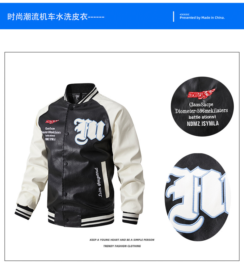 플러스 사이즈 국경 간 미국 스타일 하이 스트리트 트렌디 한 PU 가죽 자켓 남성과 여성의 동일 스타일 수직 칼라 커플 오토바이 자켓 남성 트렌디 브랜드