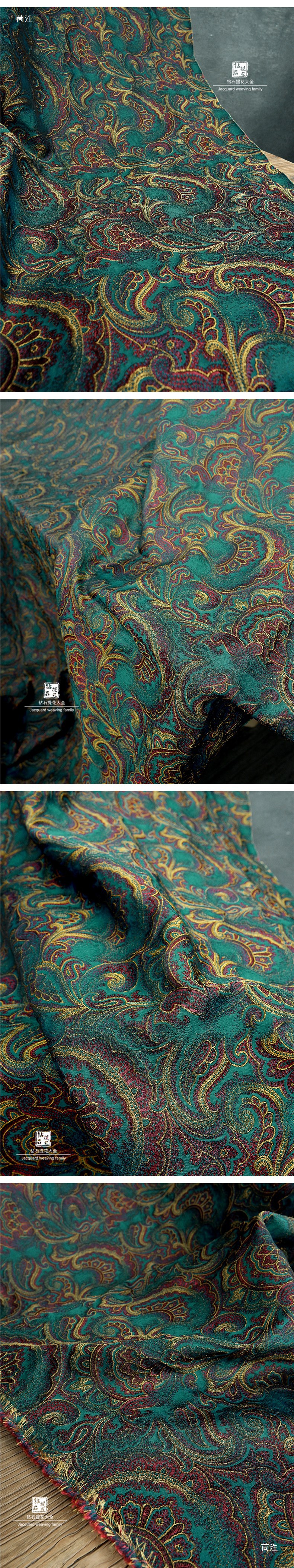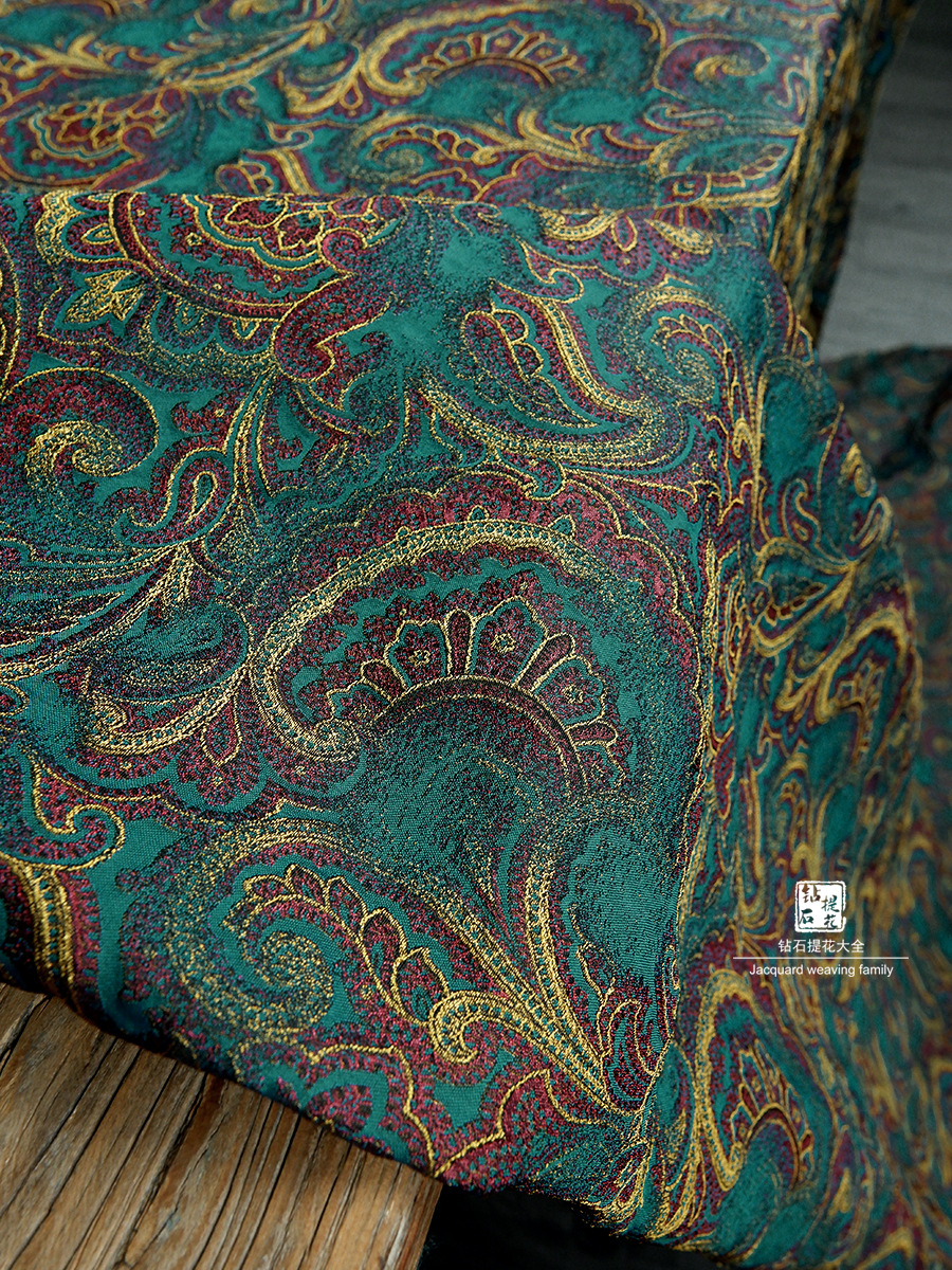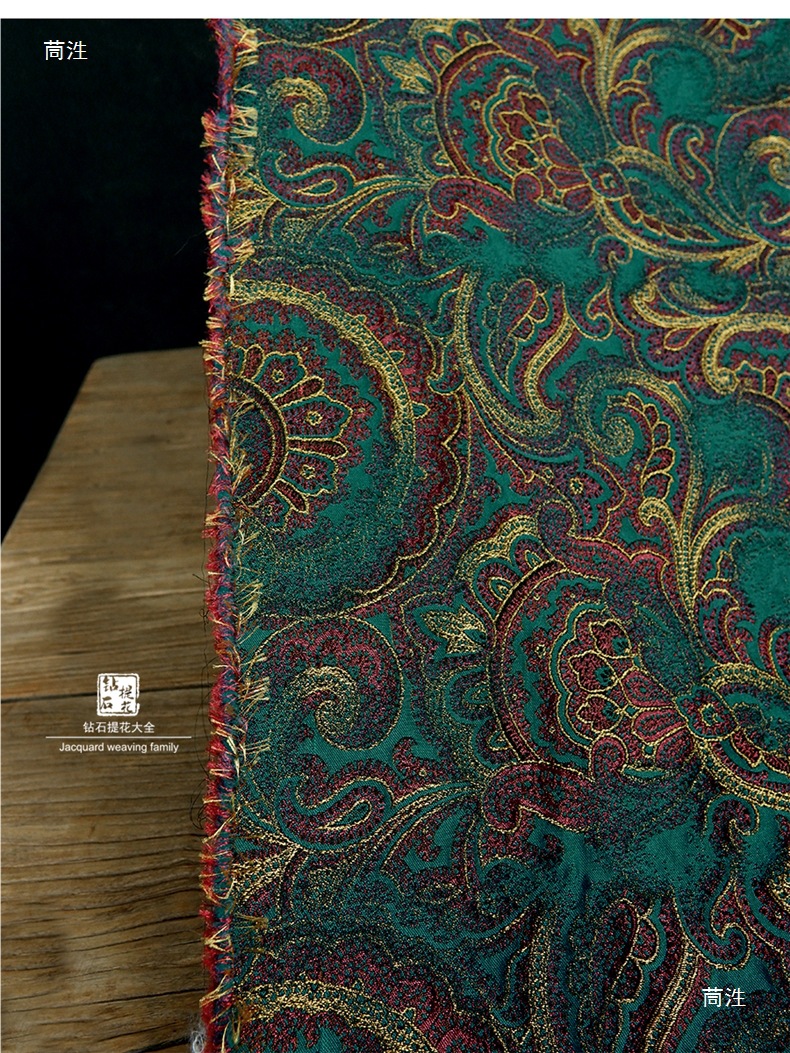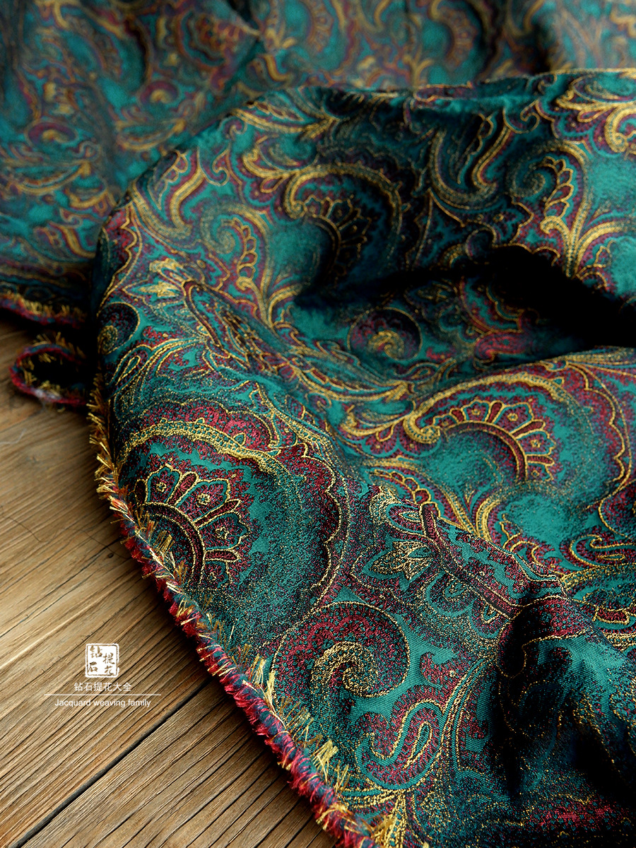 레드 옐로우 그린 원피스 피닉스 테일 블루밍 팰리스 스타일 자카드 텍스처 꽃 천 의류 DIY 디자이너 천 패브릭스토어 가기
