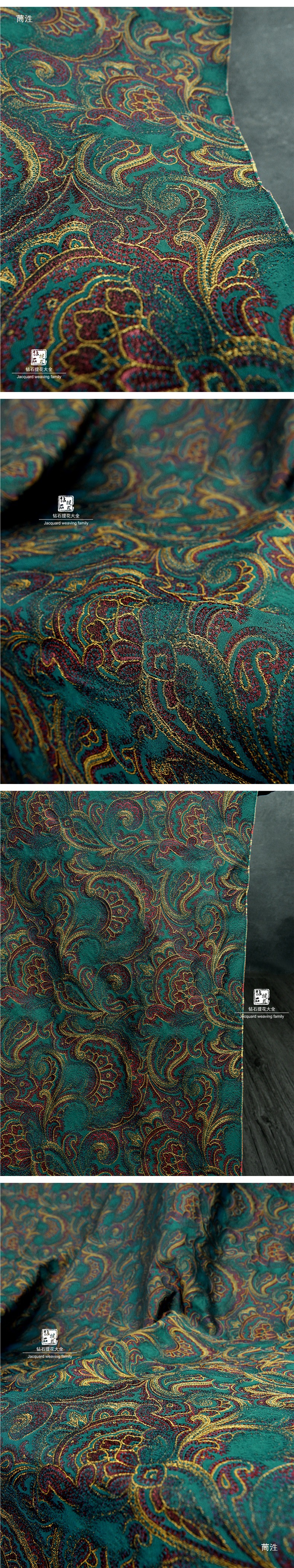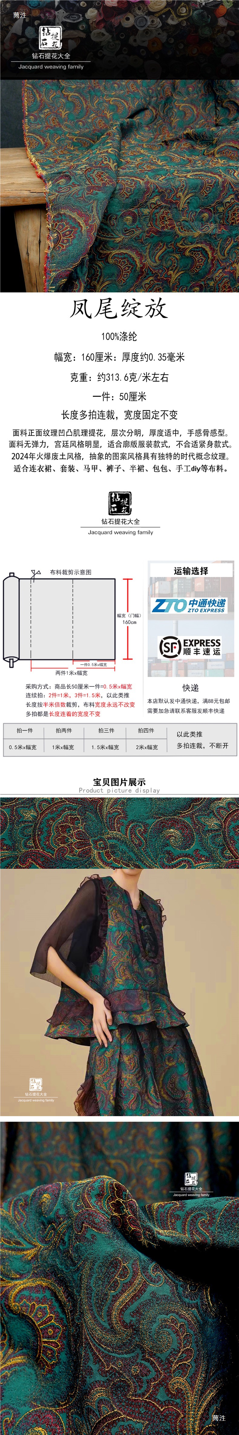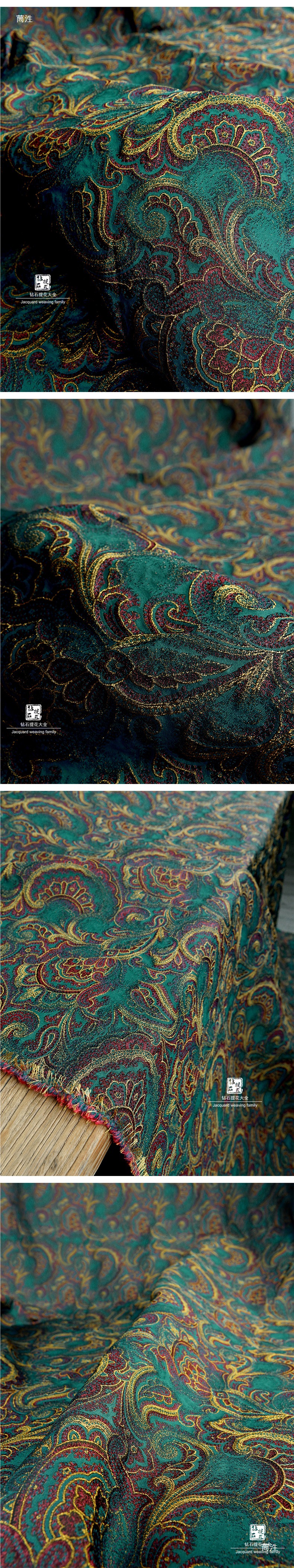 레드 옐로우 그린 원피스 피닉스 테일 블루밍 팰리스 스타일 자카드 텍스처 꽃 천 의류 DIY 디자이너 천 패브릭스토어 가기