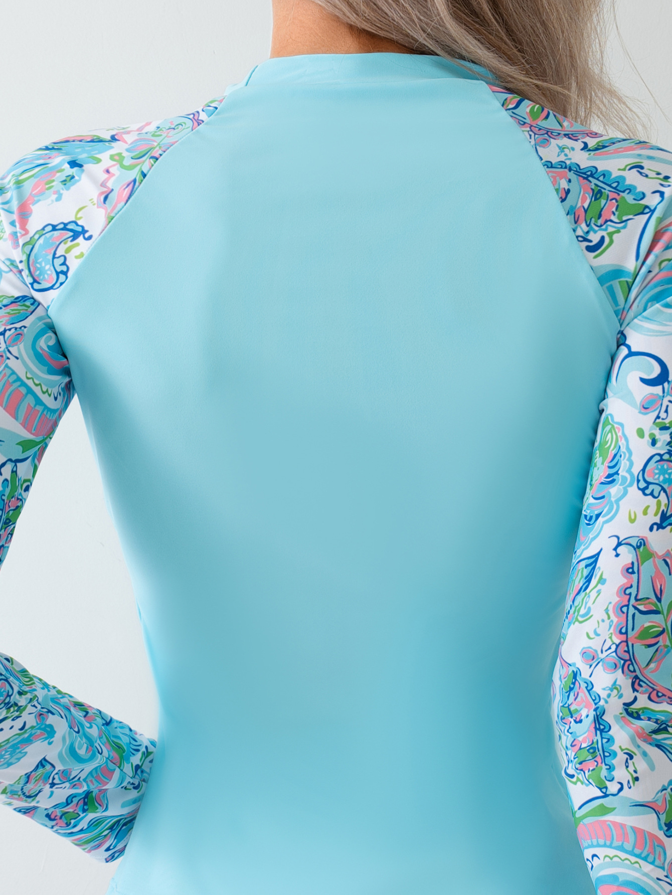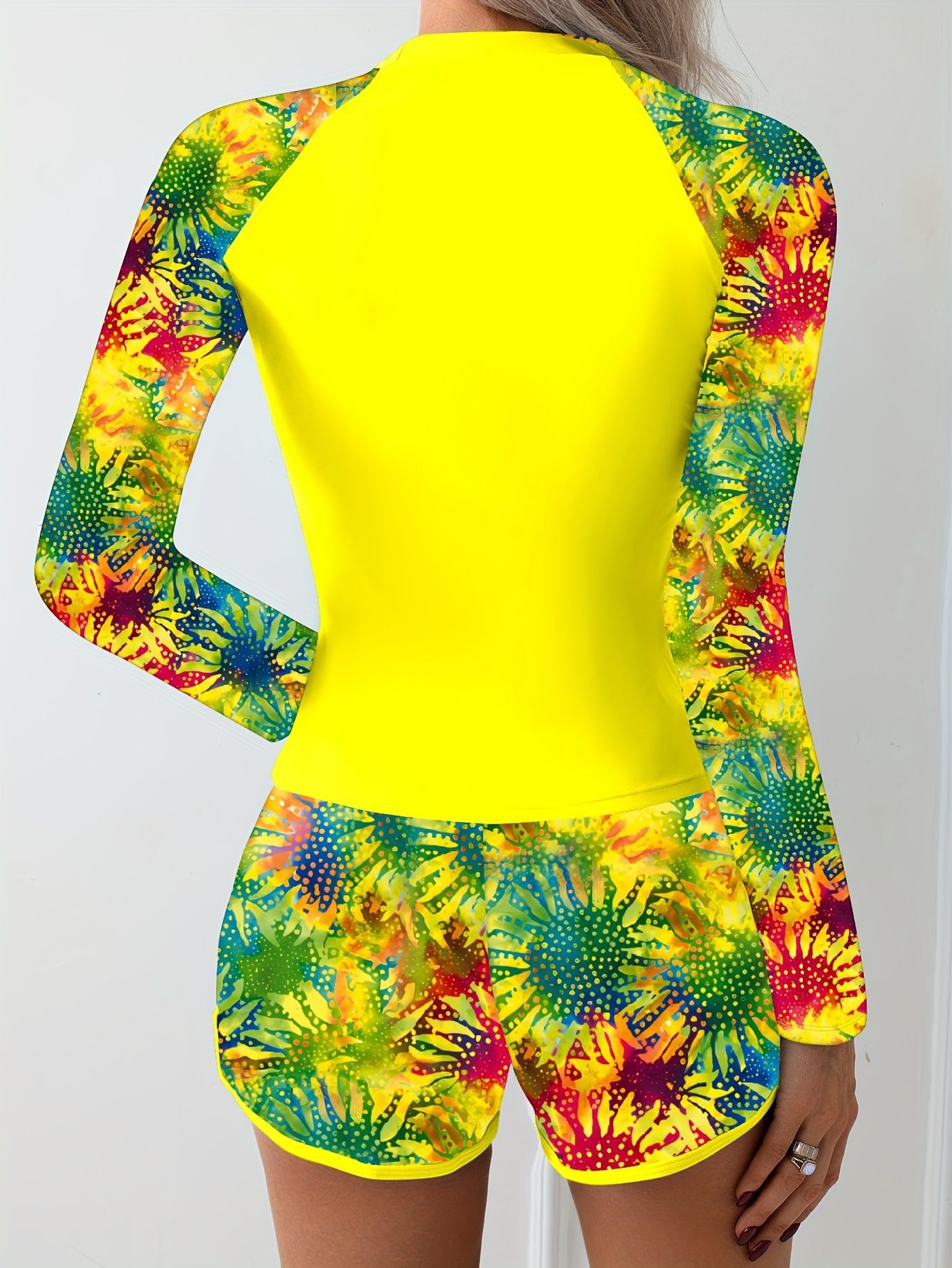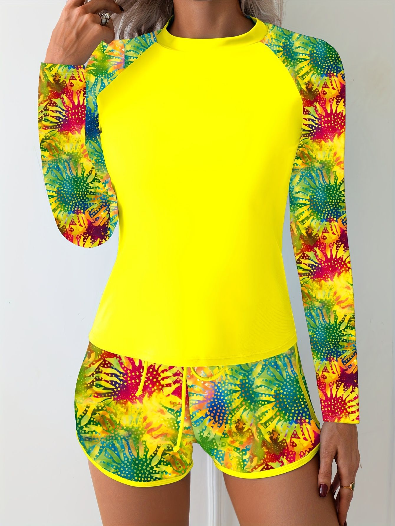 2025 유럽과 미국의 새로운 타키니 여성 보수적 인 복서 스포츠 비치 대외 무역 인쇄 스플릿 수영복 투피스 세트
