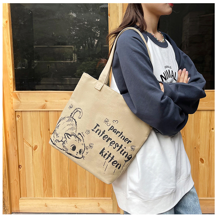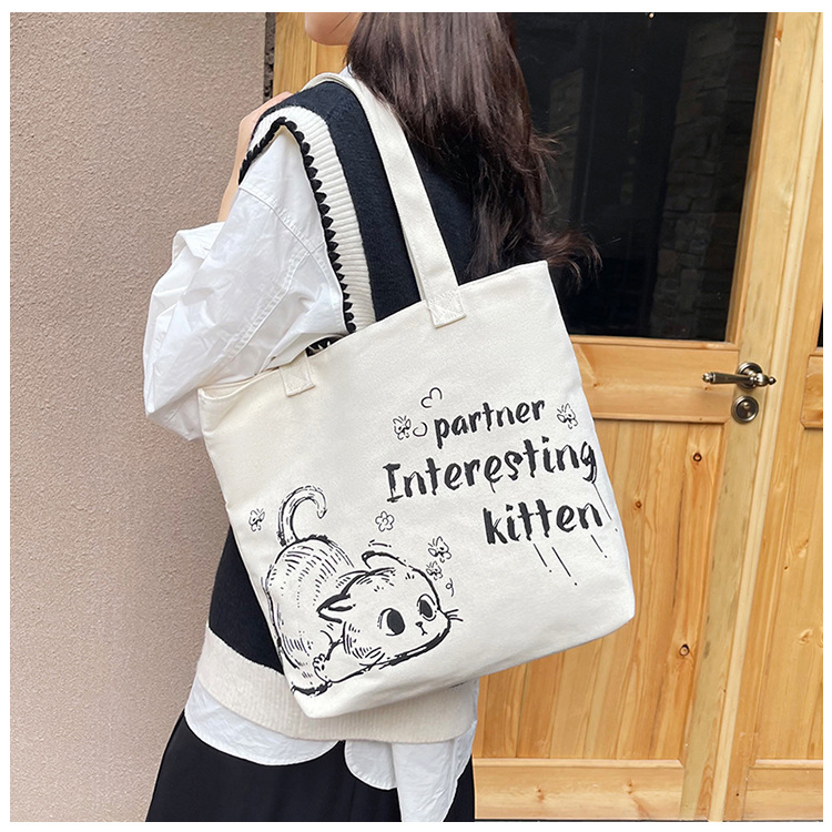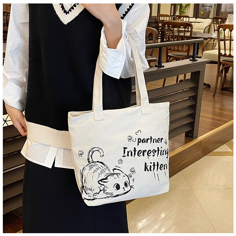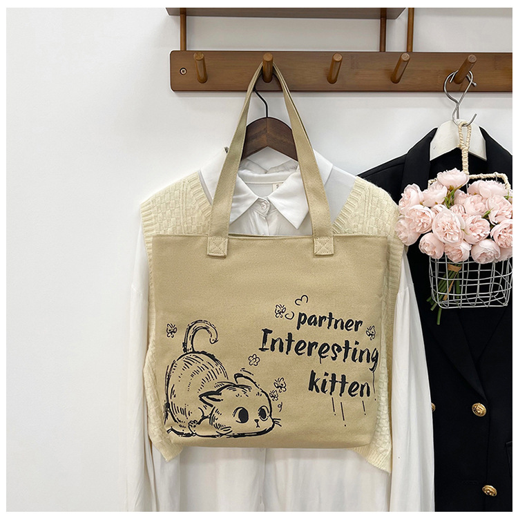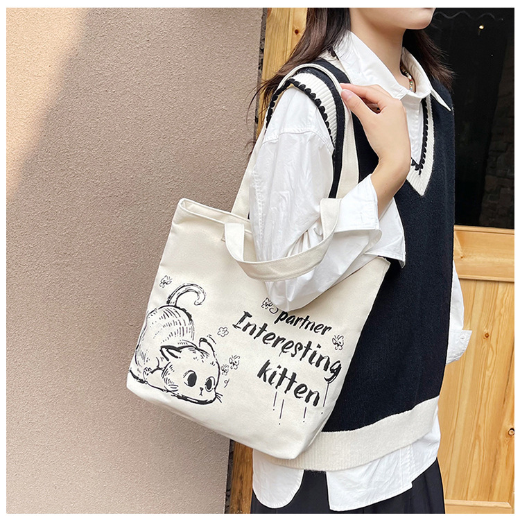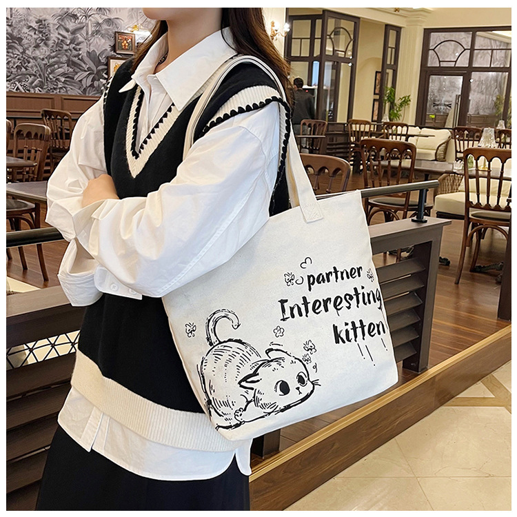 만화 한 어깨 캔버스 가방 여성의 2025 새로운 학생 클래스 핸드백 캐주얼 고양이 인쇄 토트 백스토어 가기