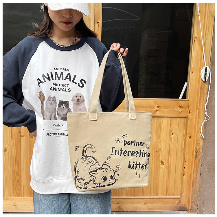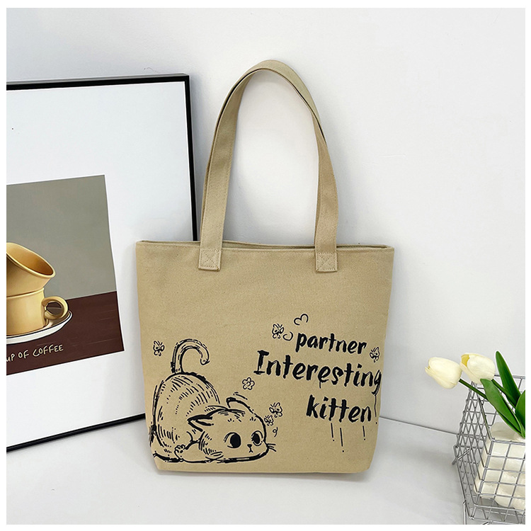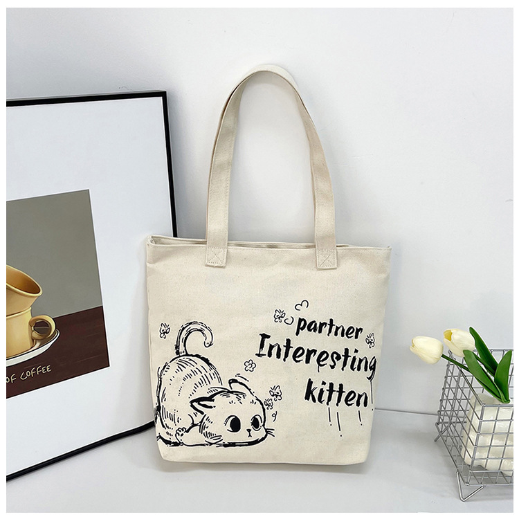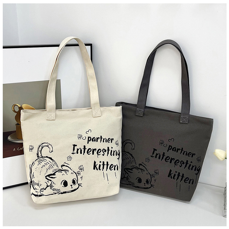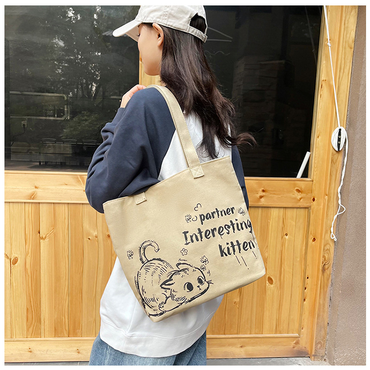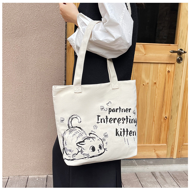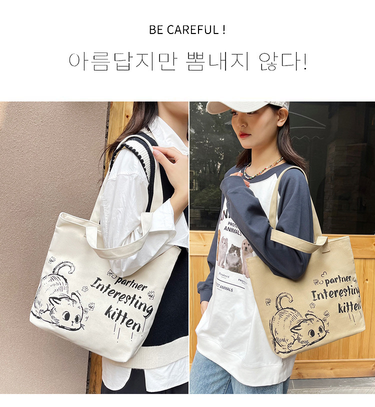 만화 한 어깨 캔버스 가방 여성의 2025 새로운 학생 클래스 핸드백 캐주얼 고양이 인쇄 토트 백스토어 가기