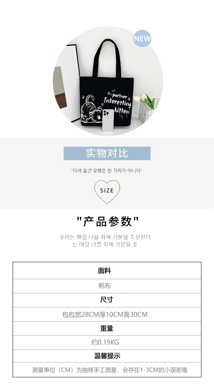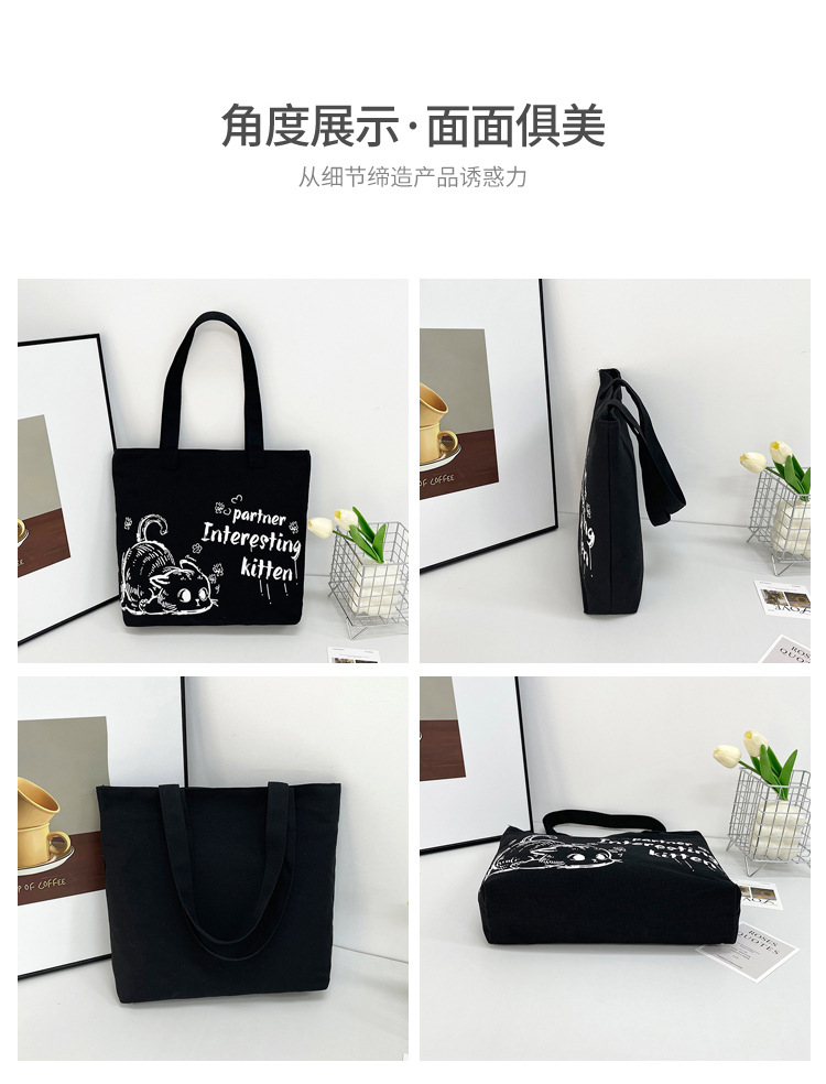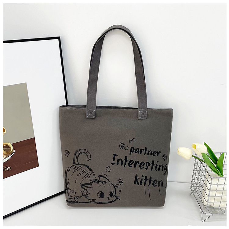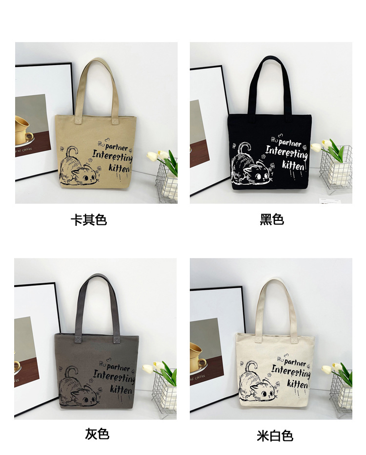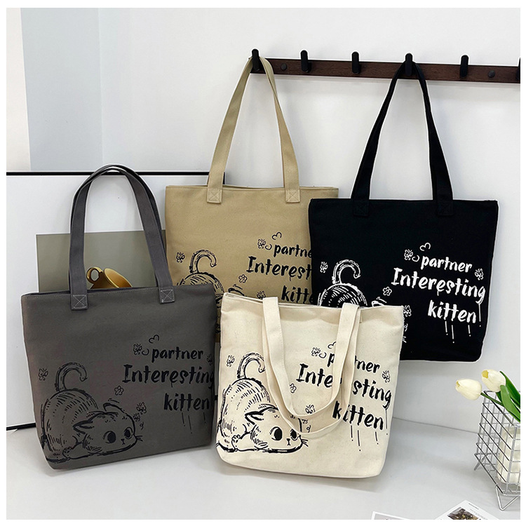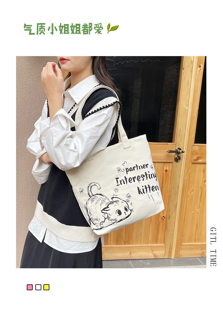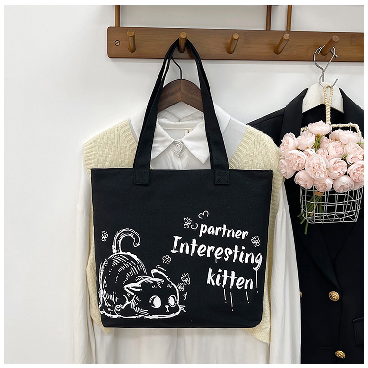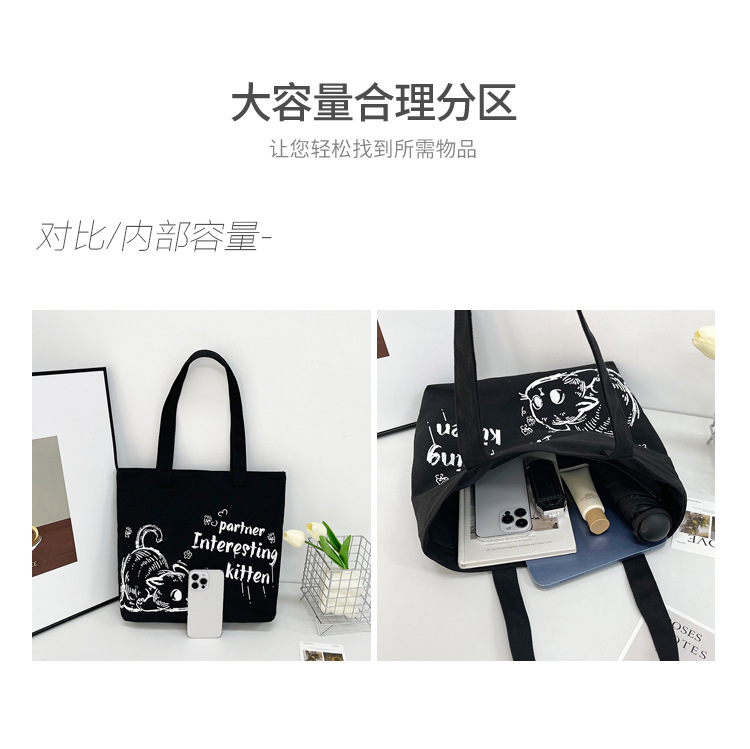 만화 한 어깨 캔버스 가방 여성의 2025 새로운 학생 클래스 핸드백 캐주얼 고양이 인쇄 토트 백