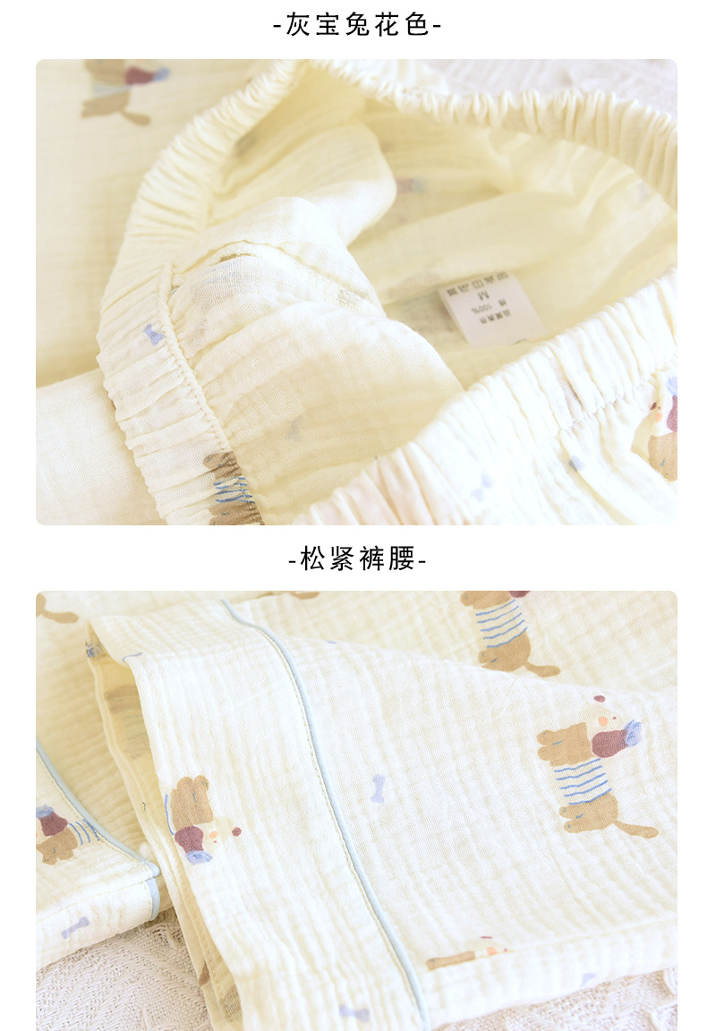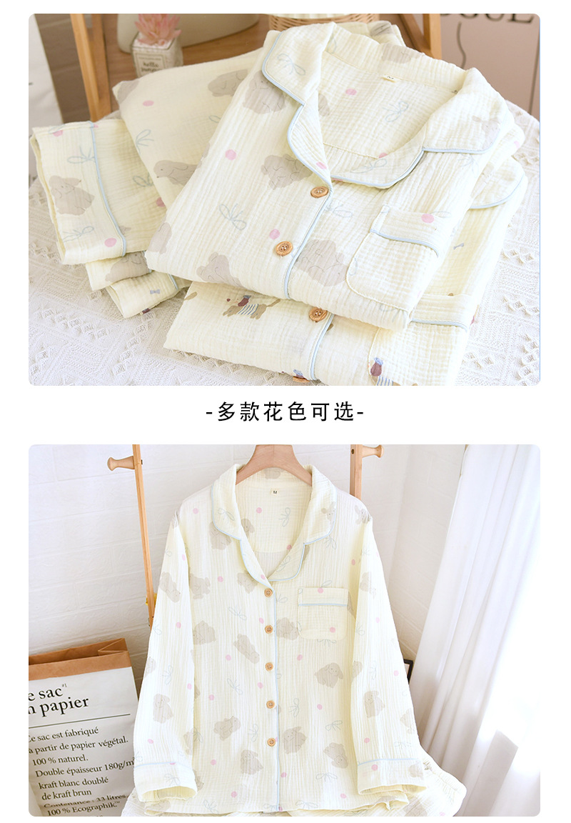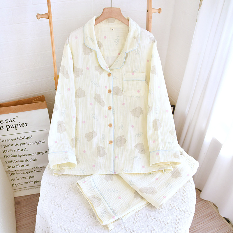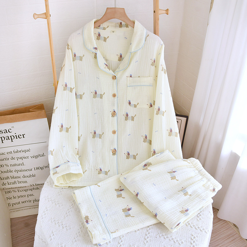 일본식 퓨어 코튼 파자마 여성의 봄과 여름 긴 소매 바지 달콤한 만화 귀여운 더블 거즈 홈 의류 세트스토어 가기