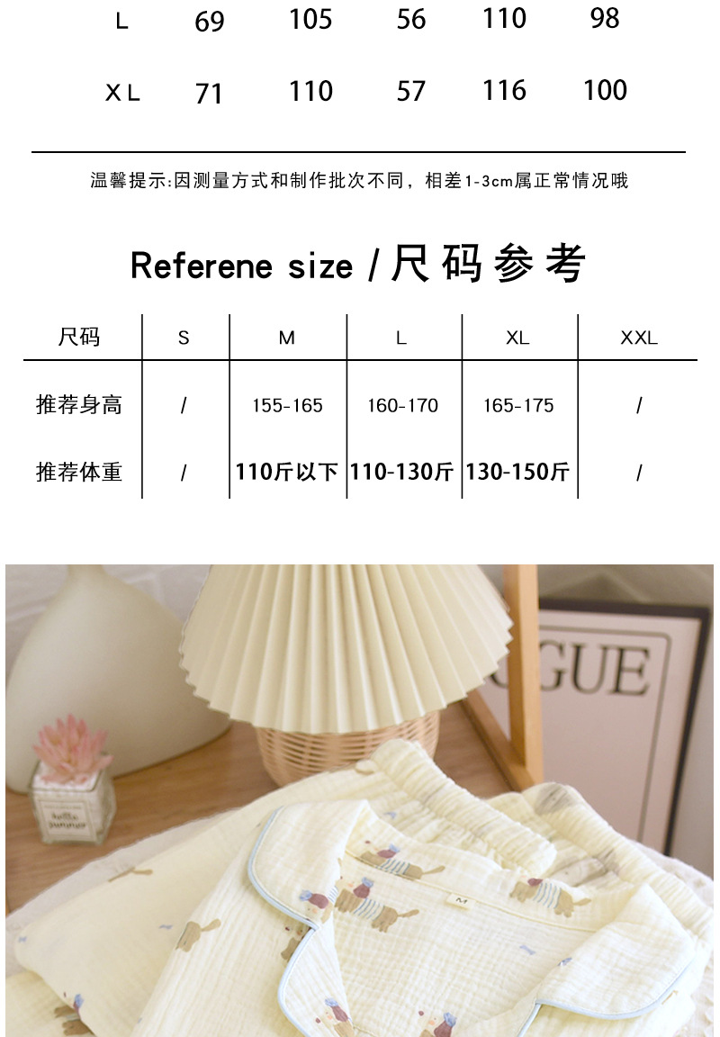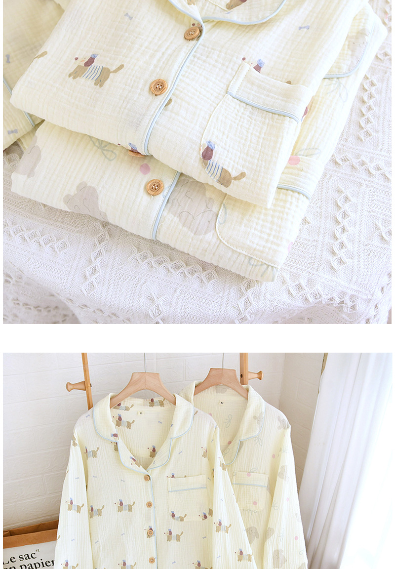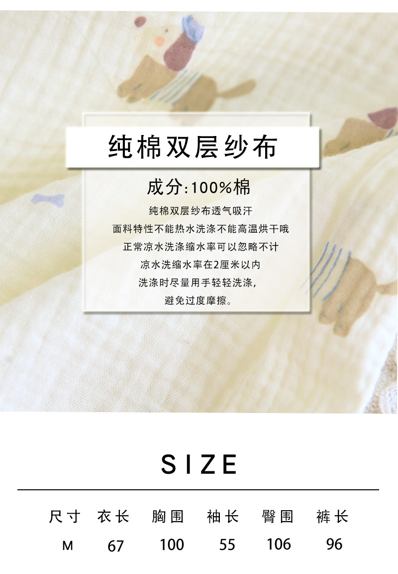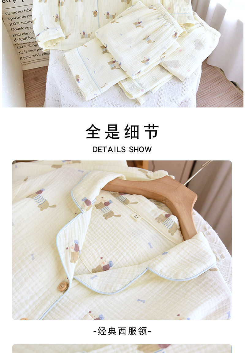 일본식 퓨어 코튼 파자마 여성의 봄과 여름 긴 소매 바지 달콤한 만화 귀여운 더블 거즈 홈 의류 세트스토어 가기