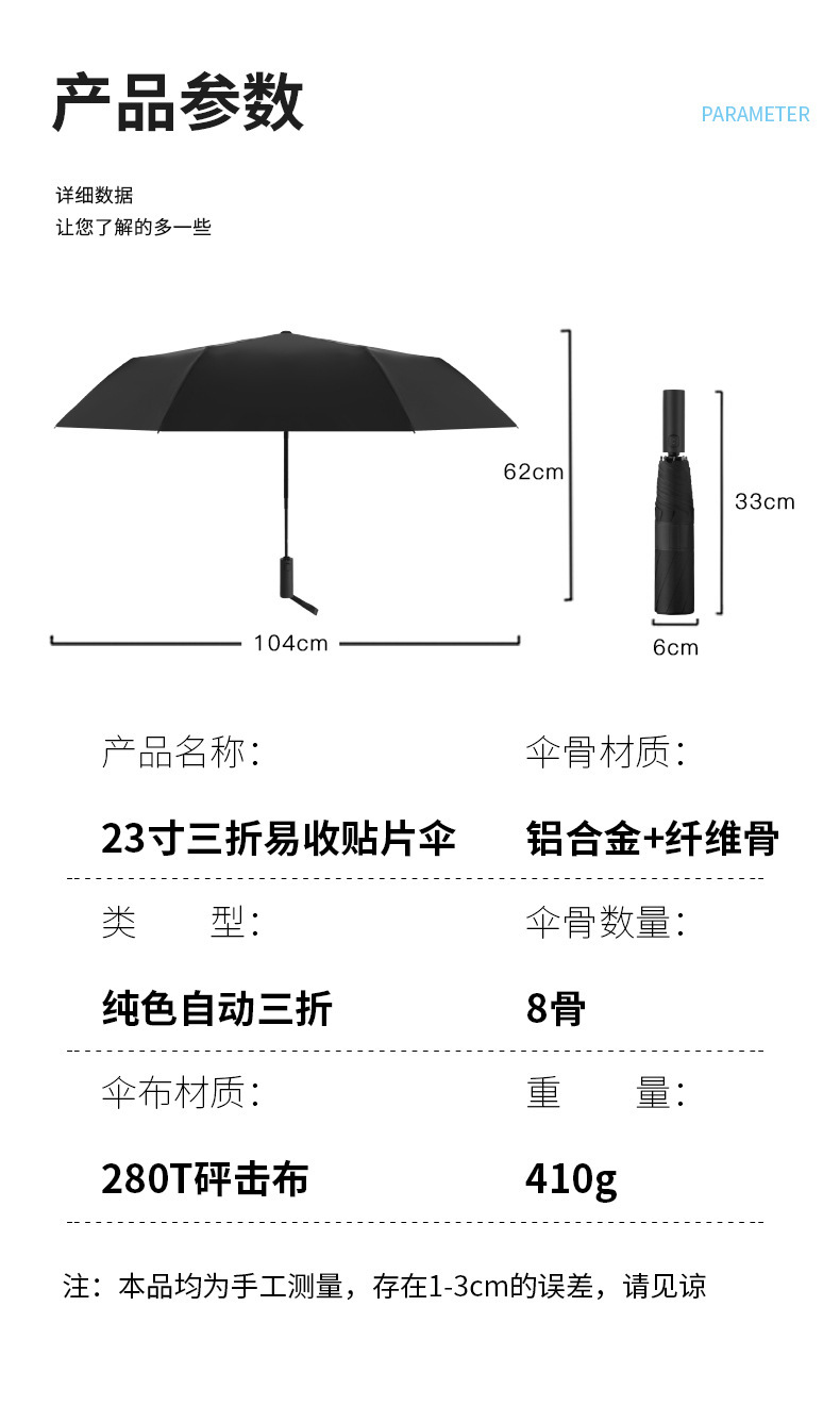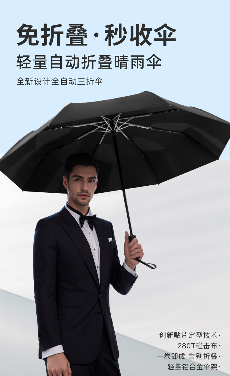 완전 자동 접이식 우산 8 뼈 3 배 비 접이식 패치 우산 도매 우산 이중 사용 광고 우산 맞춤형 로고스토어 가기