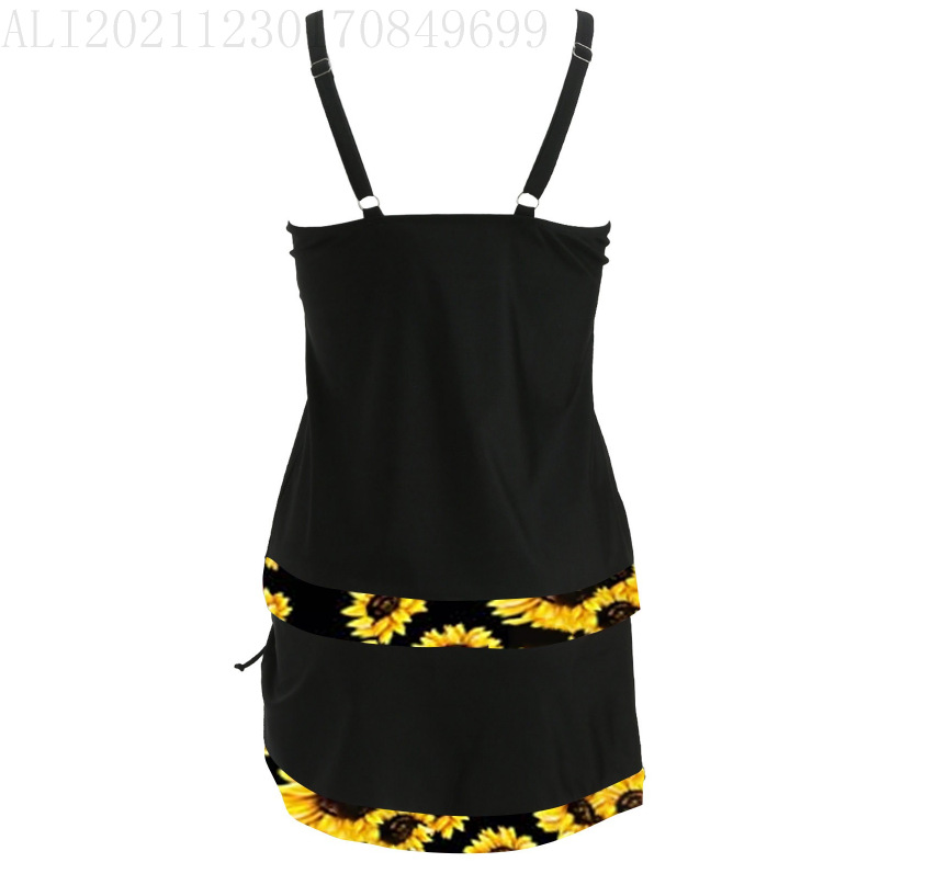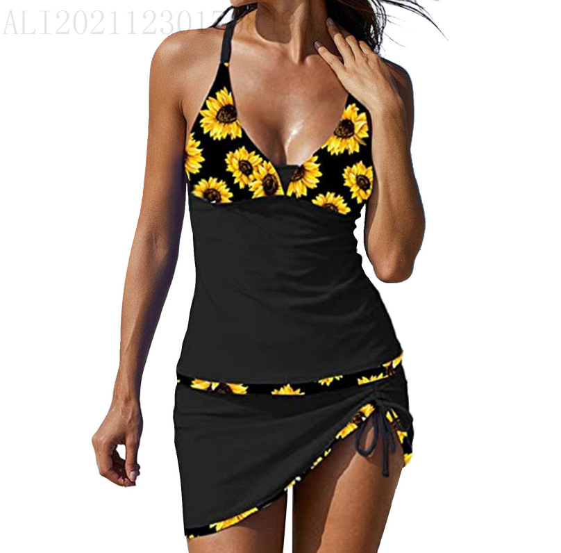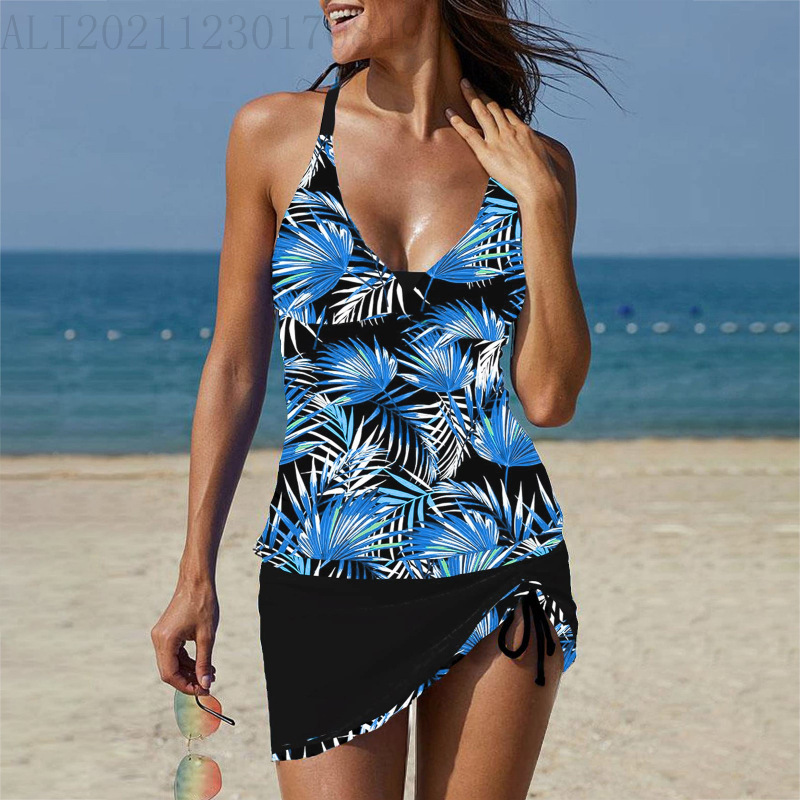 2024 새로운 여성 분할 투피스 수영복 유럽과 미국의 보수적 인 배꼽 인쇄 짧은 스커트 비키니 수영복스토어 가기