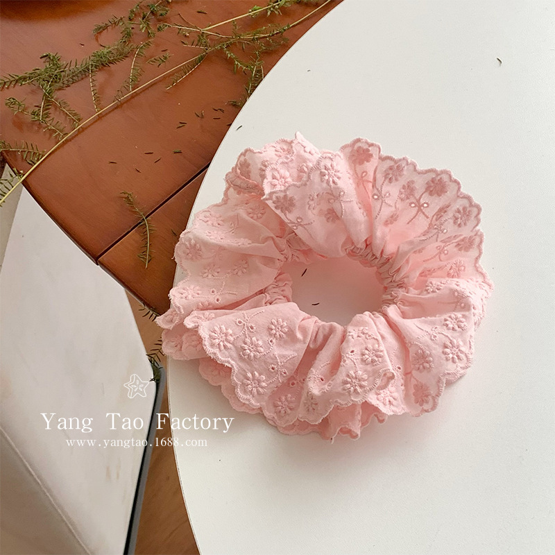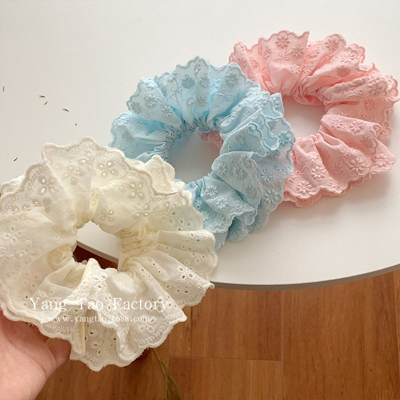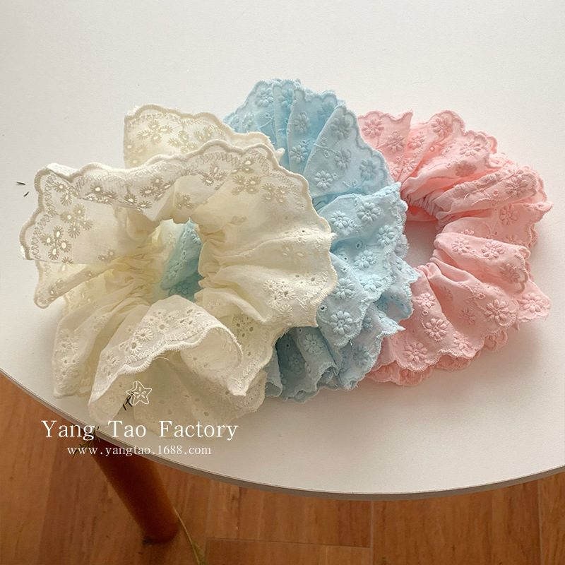 이른 봄 새로운 레이스 레이스 큰 내장 헤어 링 솔리드 컬러 신선한 꽃 헤어 링 2025 새로운 헤어 로프 타이 꽃 헤드웨어스토어 가기