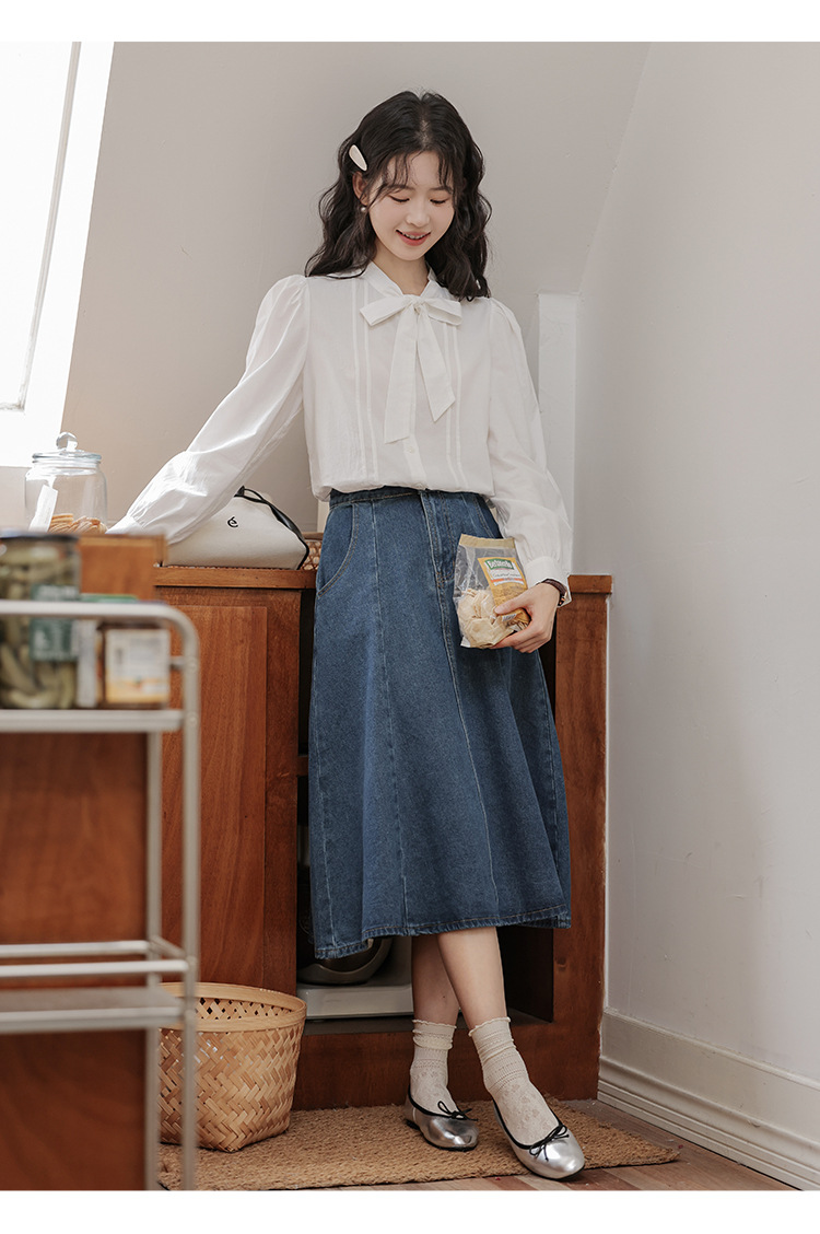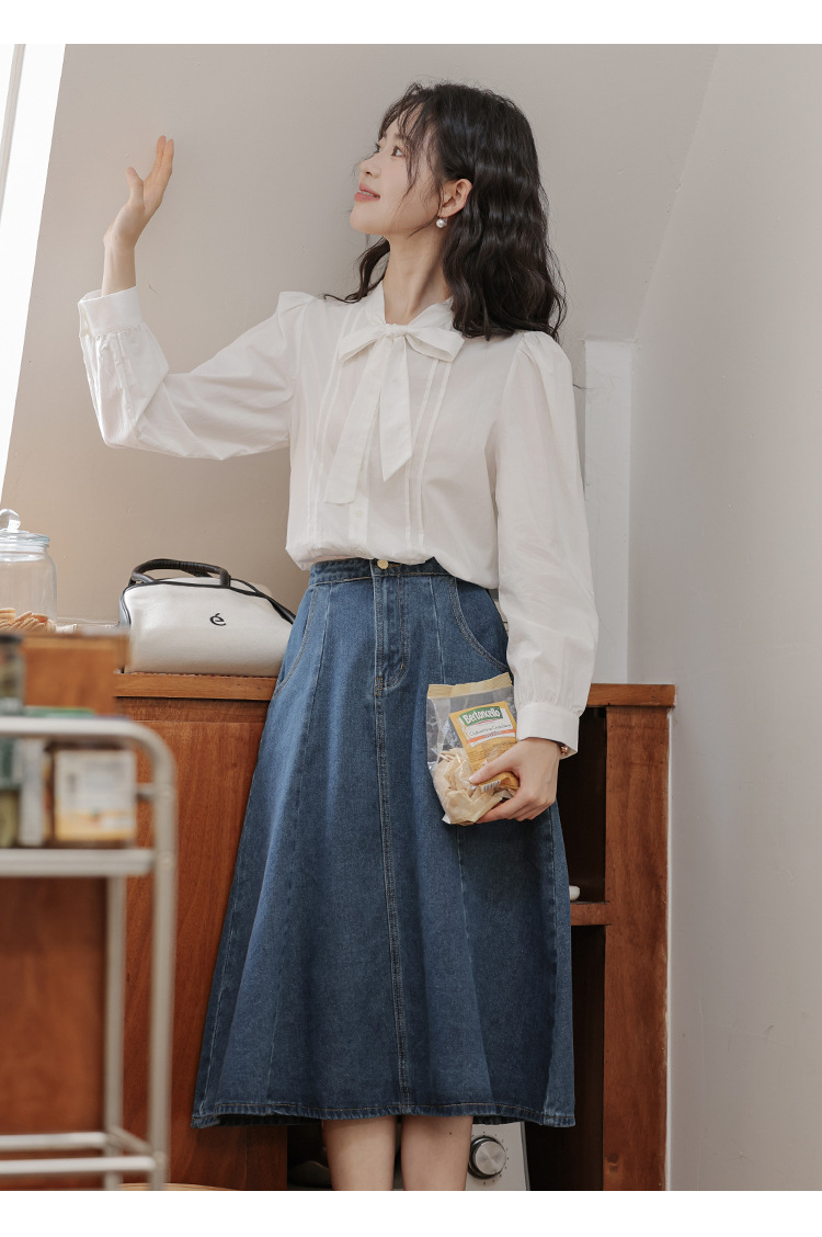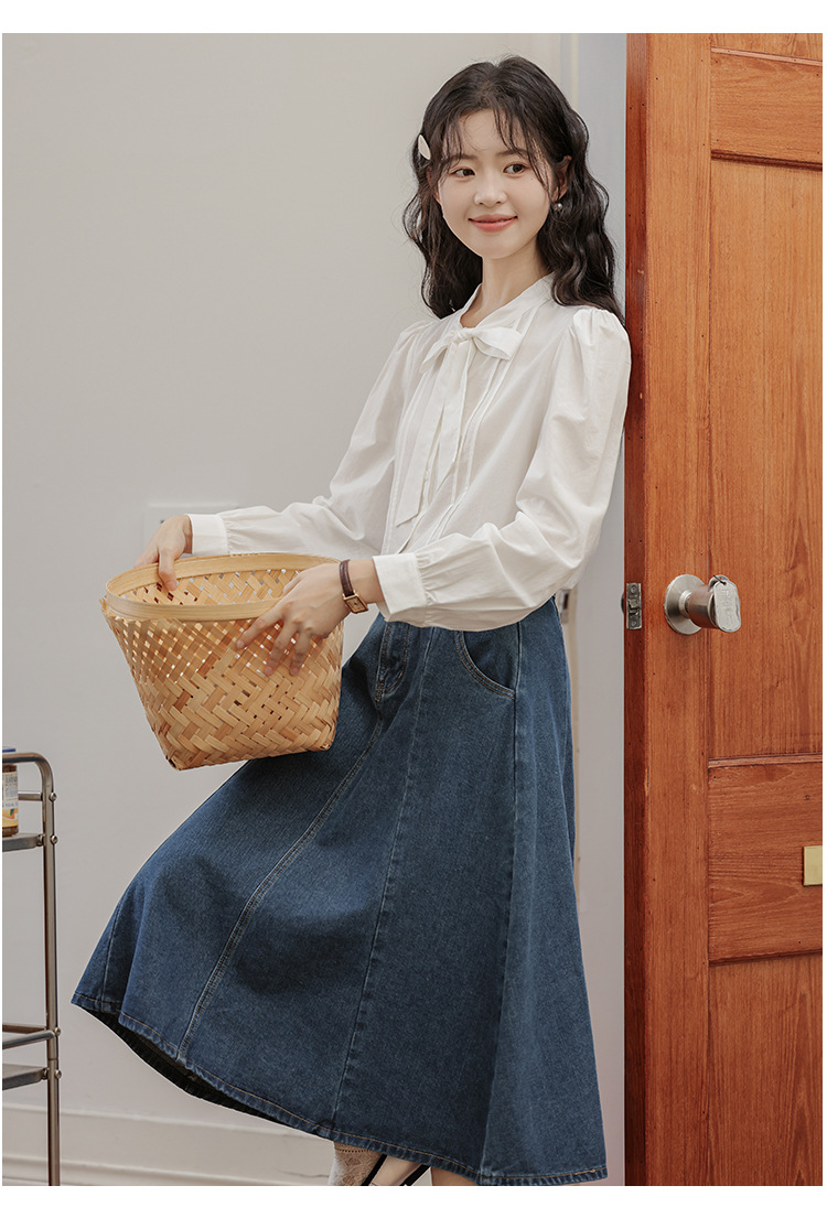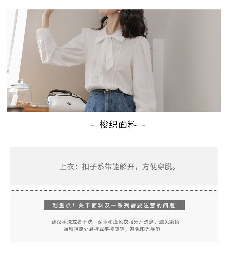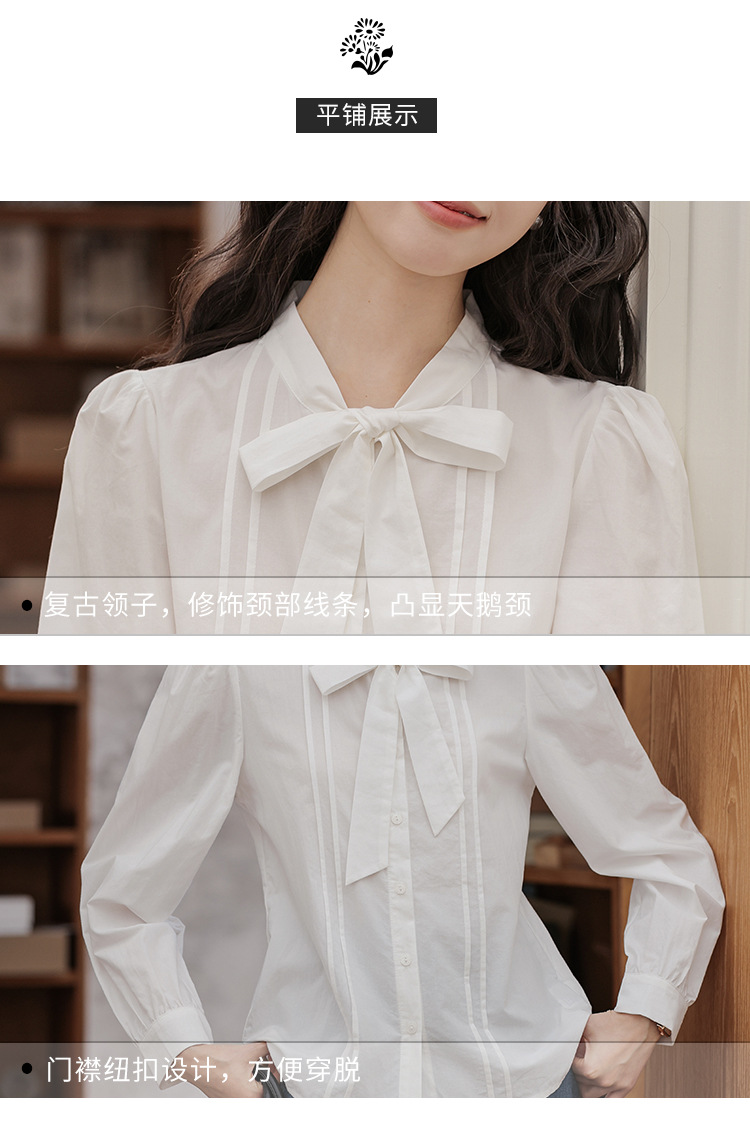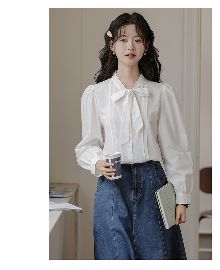 2025 년 봄 새로운 프랑스 달콤한 통근 흰색 나비 넥타이베이스 퍼프 소매 긴 소매 세련된 셔츠스토어 가기
