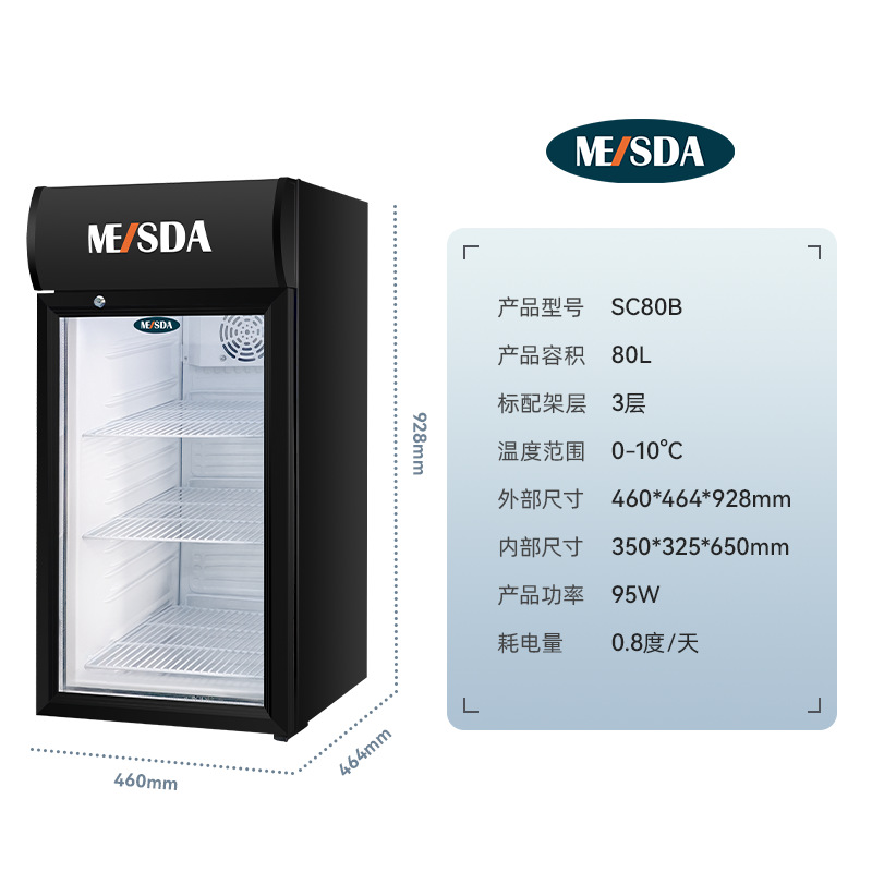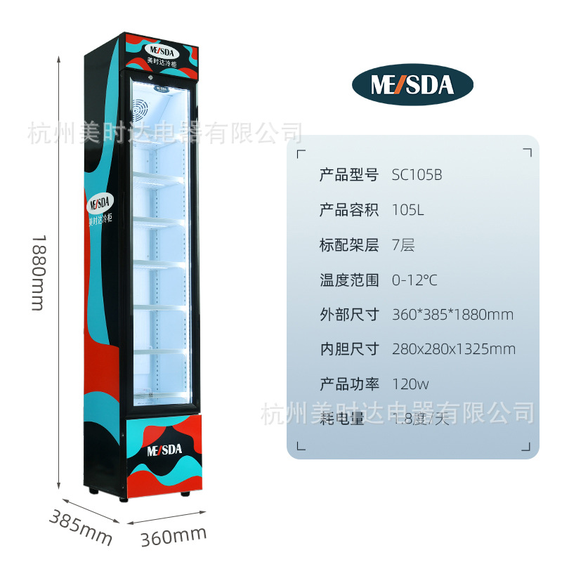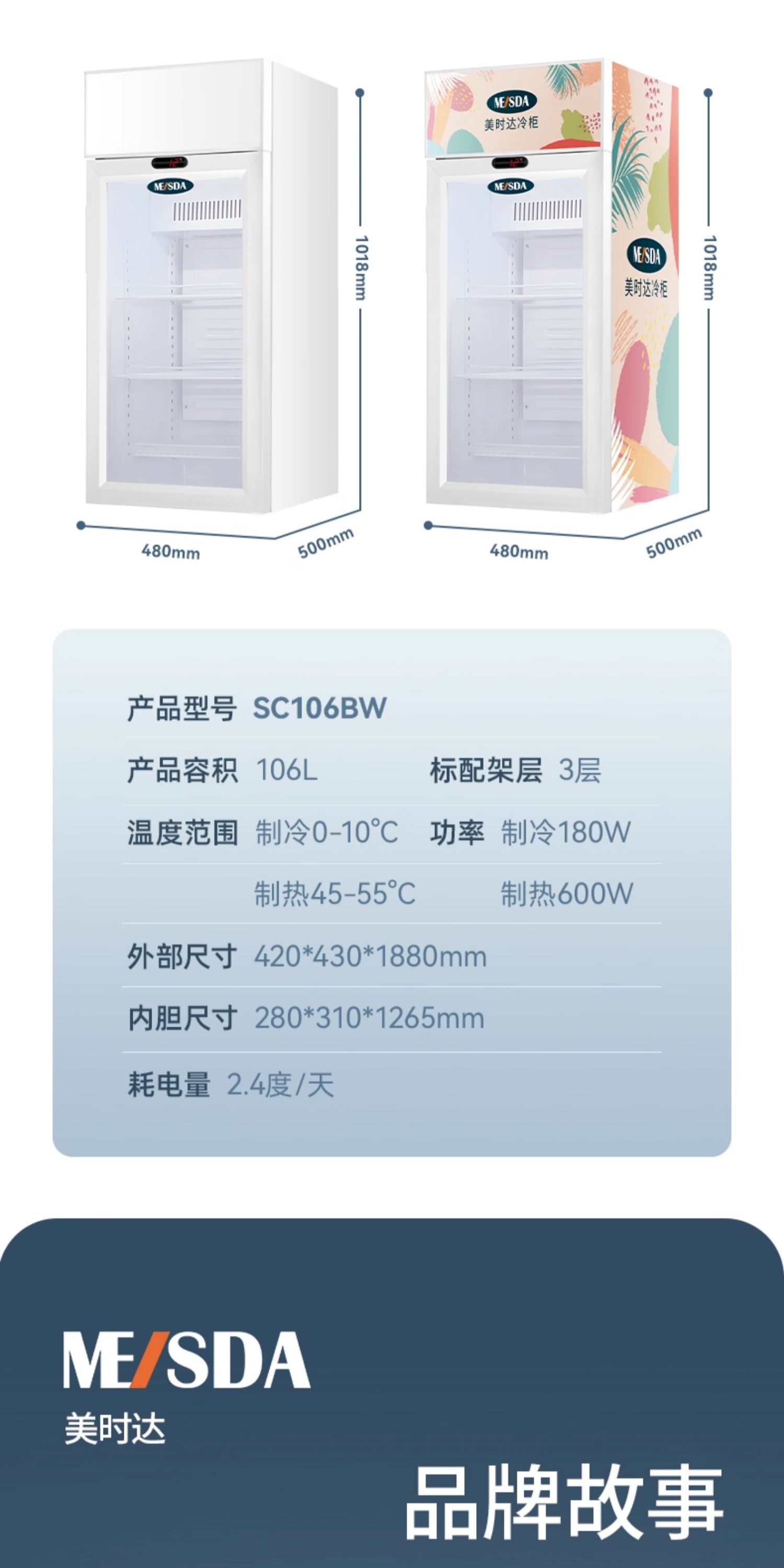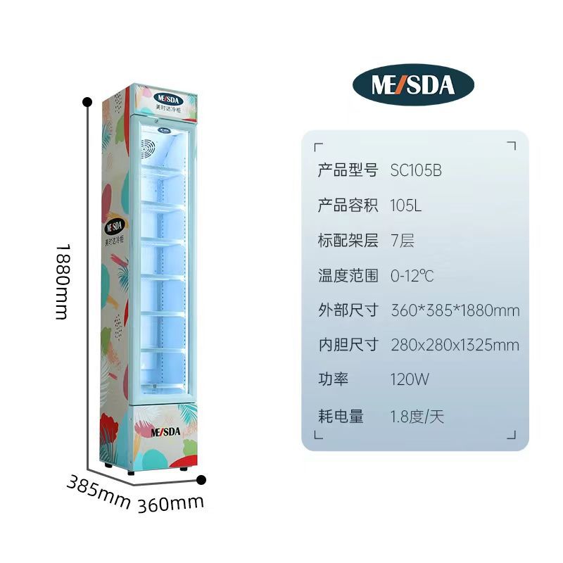 Midea 단일 도어 맥주 냉장고 소형 상업용 냉장고 유리 도어 냉장고 슈퍼마켓 음료 디스플레이 캐비닛