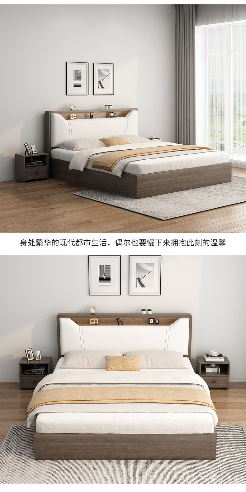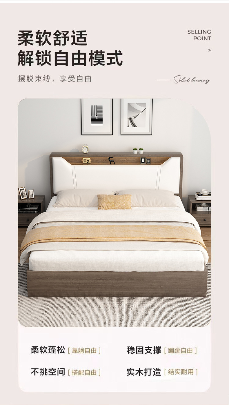 현대 간단한 단단한 나무 보드 침대 홈 마스터 침실 더블 퀸 침대 1.8 m 임대 집 간단한 침대 1.2 m 바닥 침대스토어 가기