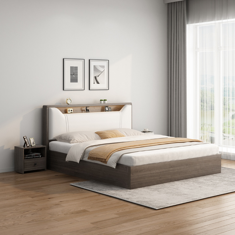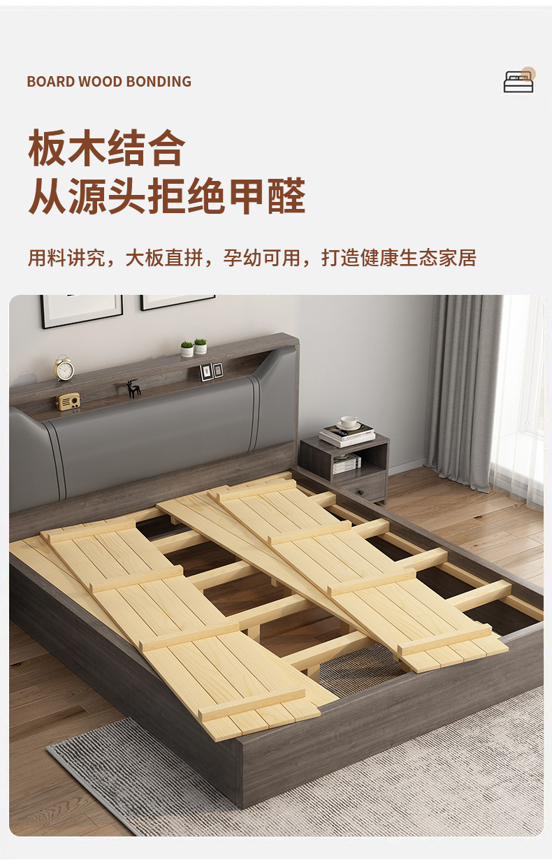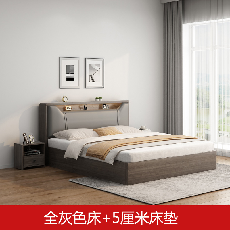 현대 간단한 단단한 나무 보드 침대 홈 마스터 침실 더블 퀸 침대 1.8 m 임대 집 간단한 침대 1.2 m 바닥 침대