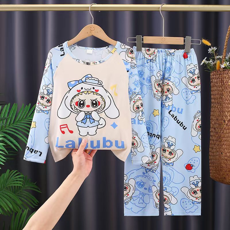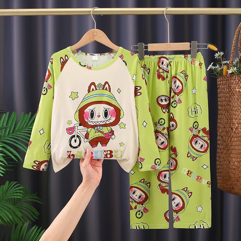 한국 아동복 봄과 가을 어린이 잠옷 세트 여름 긴팔 잠옷 캐주얼 홈 의류 소년 소녀 아동복 도매