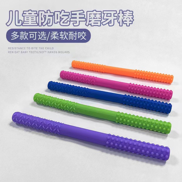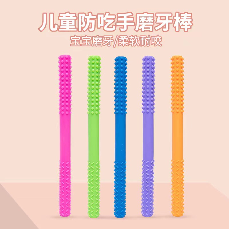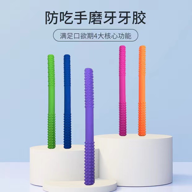 뜨거운 판매 아기 어금니 스틱은 치아를 강화하고 부드럽게 하며 먹는 것을 방지합니다. 식품 등급 친환경 실리콘 젖니가 남