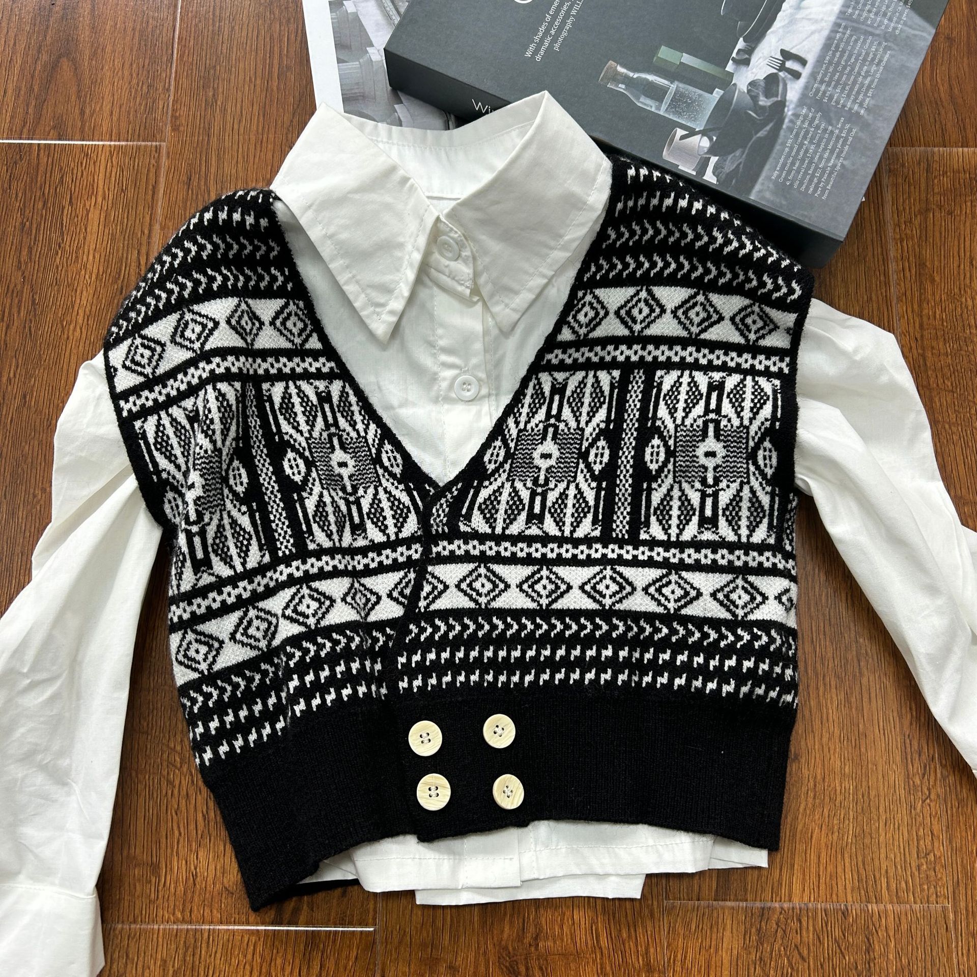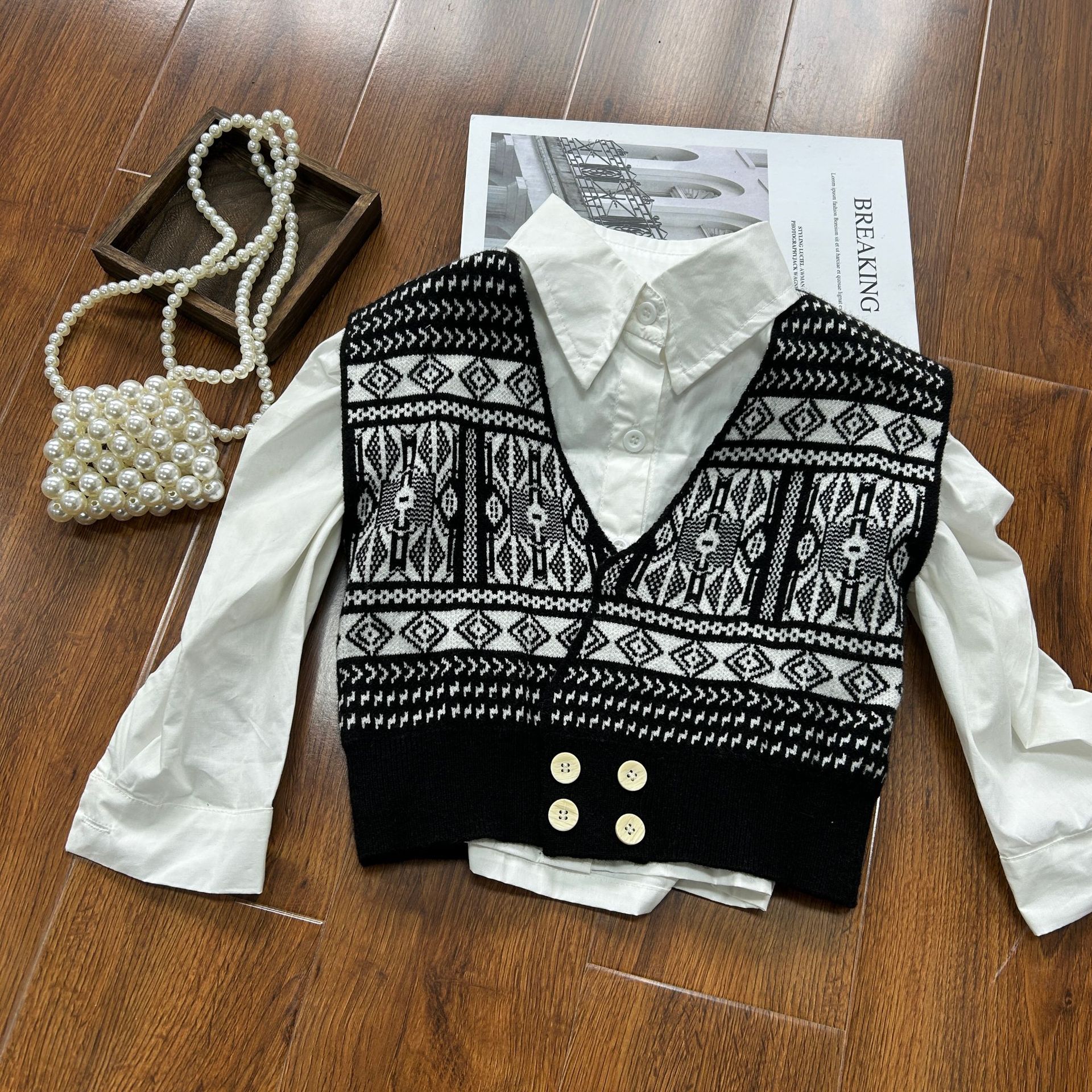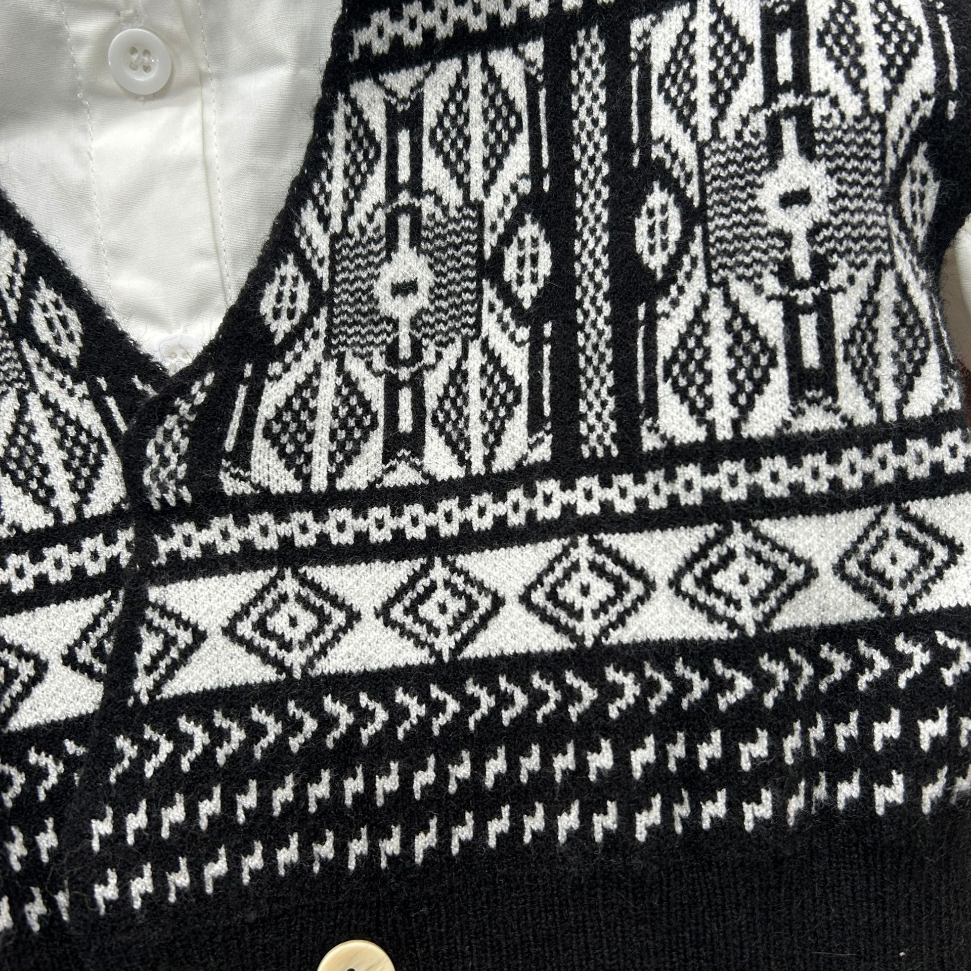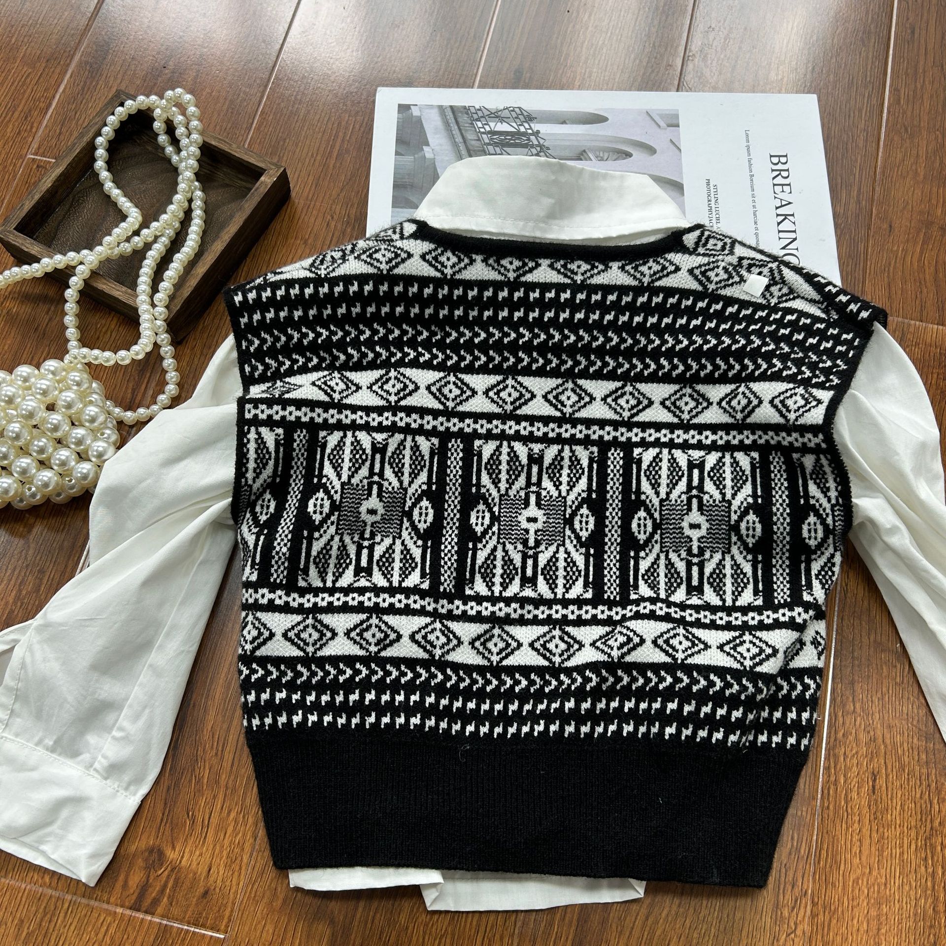 소년 소녀를위한 2025 봄 복고풍 패턴 니트 조끼