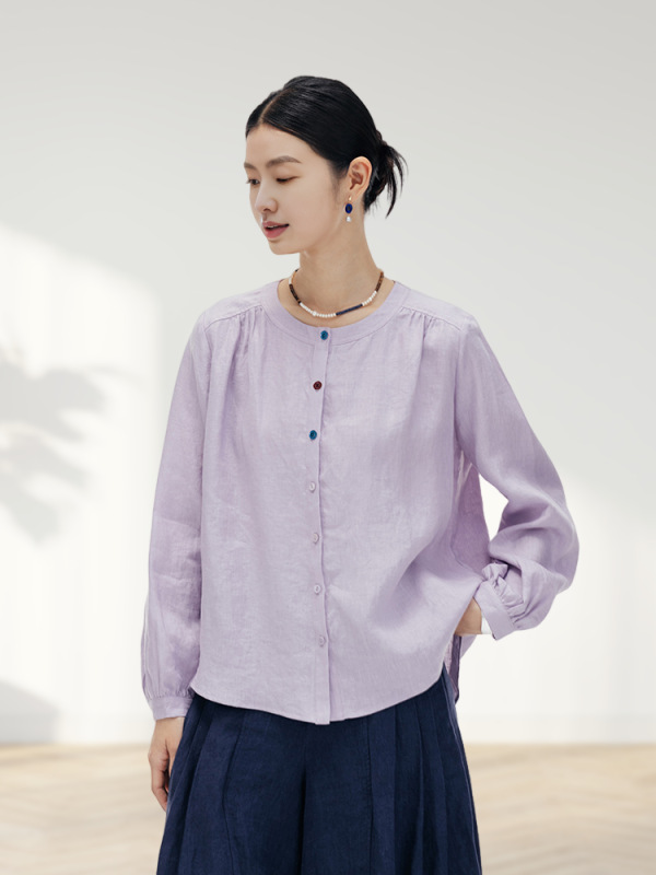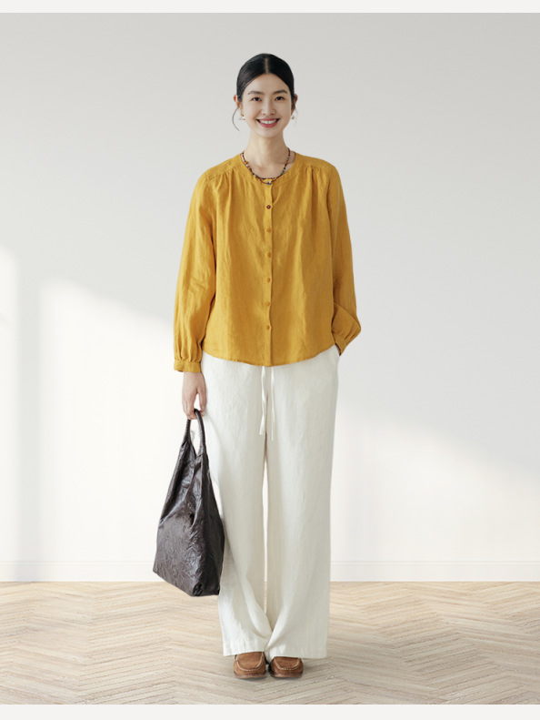 셔츠 탑 봄 여성용 셔츠 텐셀 라미 대비 버튼 슬림 느슨한 긴 소매 셔츠 코트 B1227스토어 가기