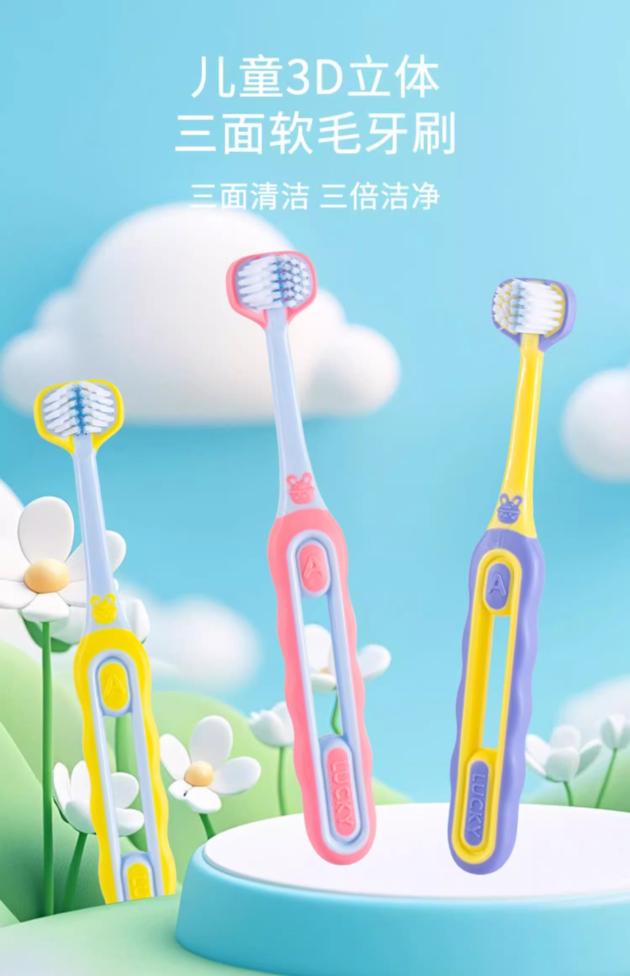 3 면 어린이 칫솔 3 ~ 6 ~ 12 세 부드러운 강모 칫솔 u 자형 3d 종합 패키지 청소 초등학생 치아 변경 기간스토어 가기