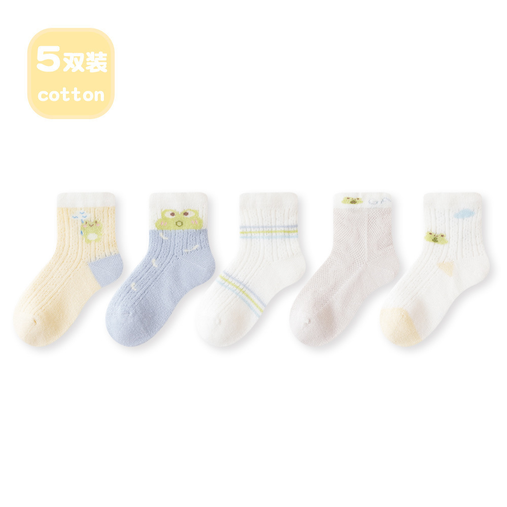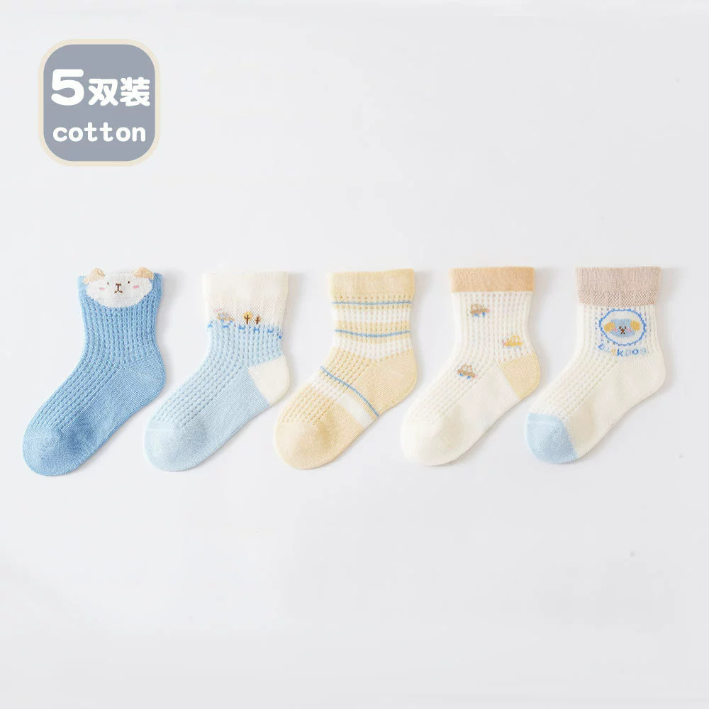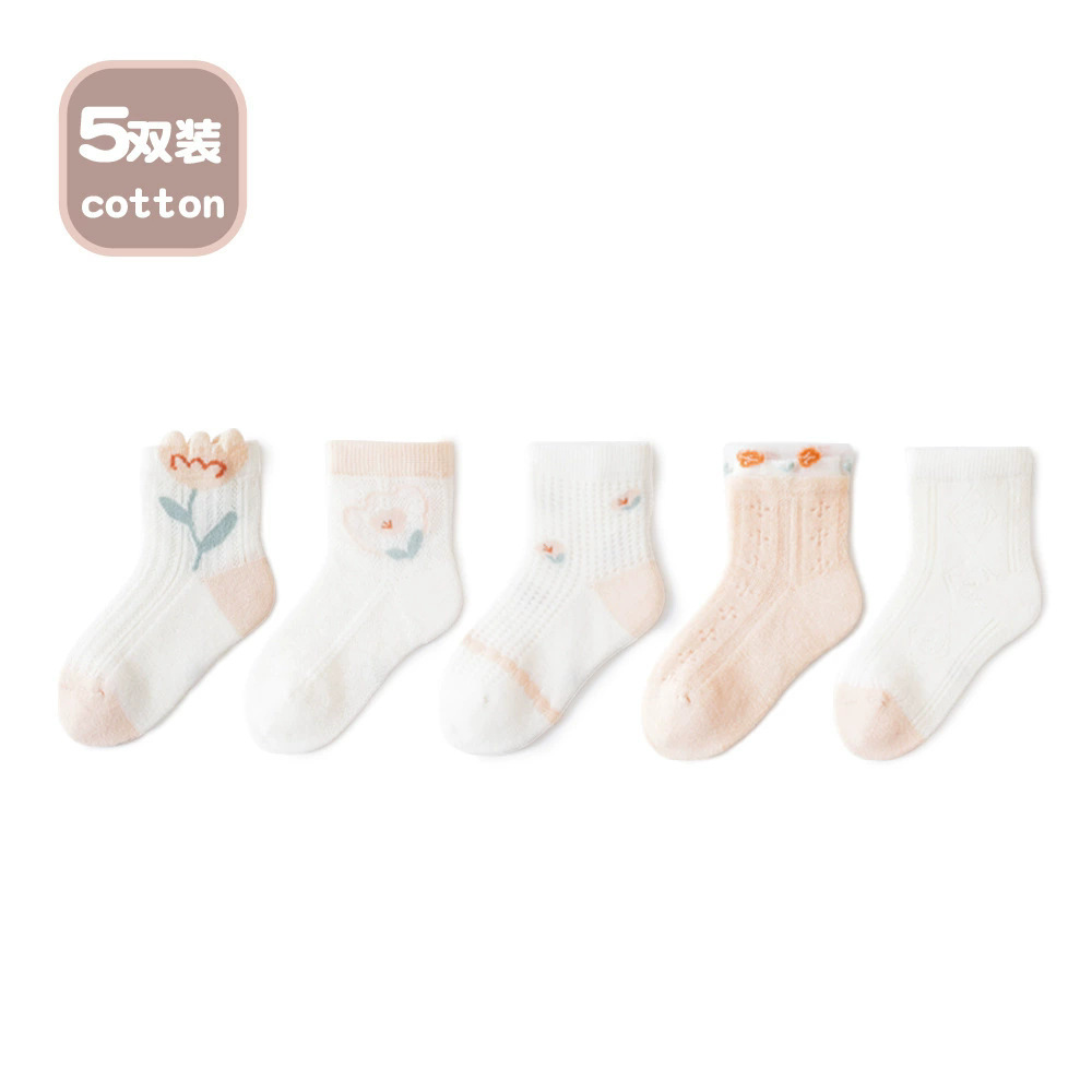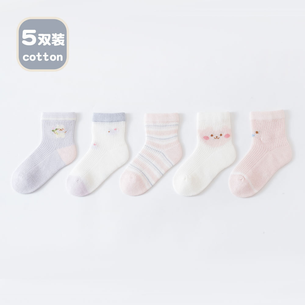 25 어린이 양말 봄과 여름 얇은 클래스 A 메쉬 양말 아기 면 양말 중간 튜브 남성과 여성의 뼈없는 어린이 양말 만화