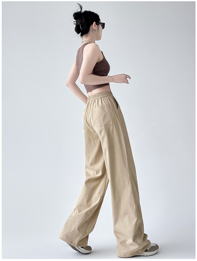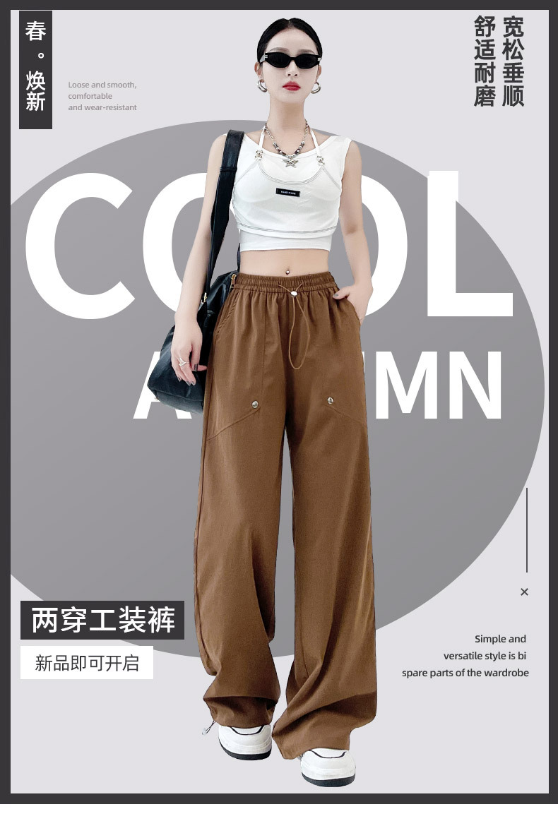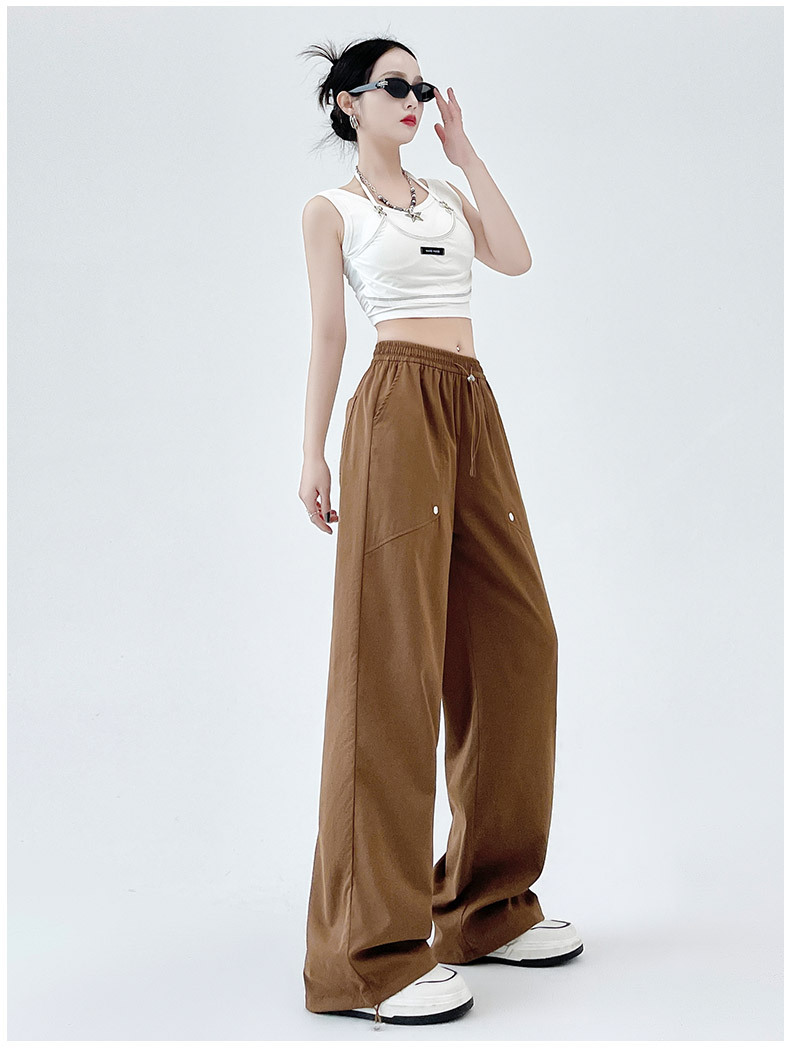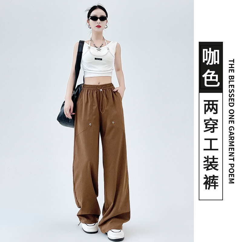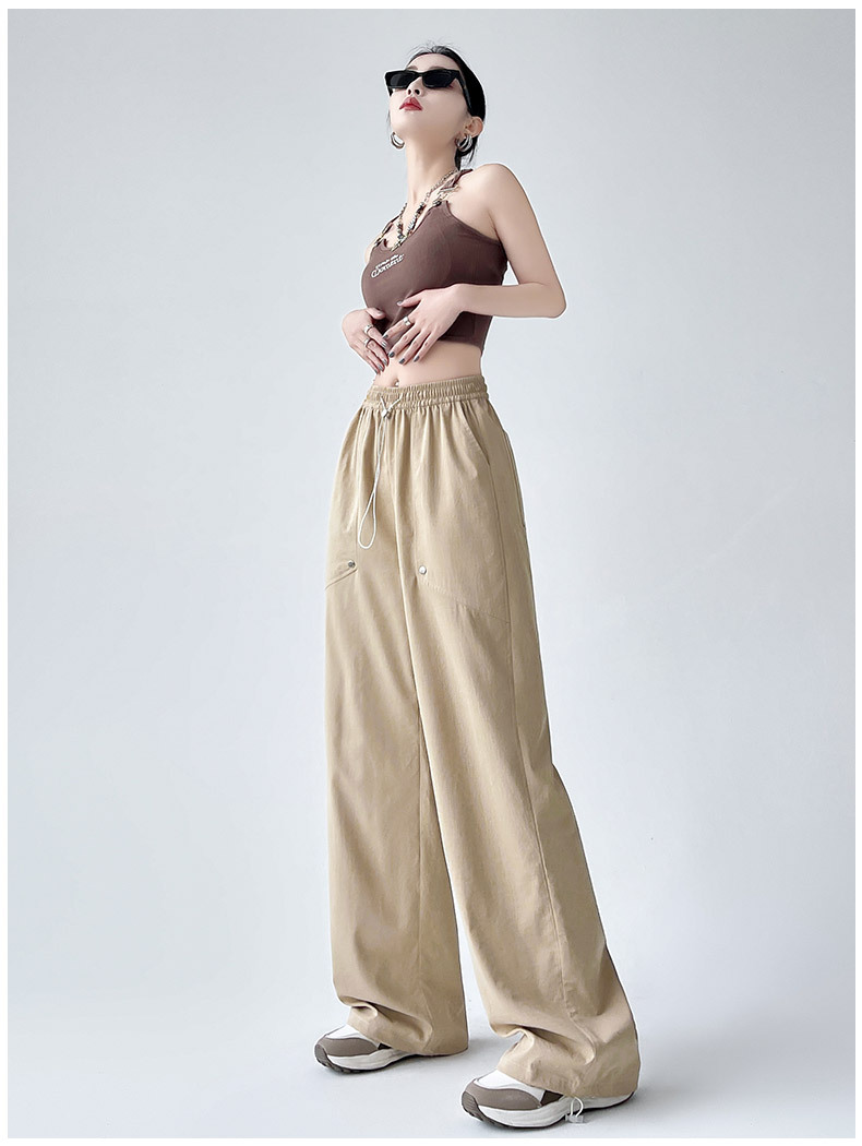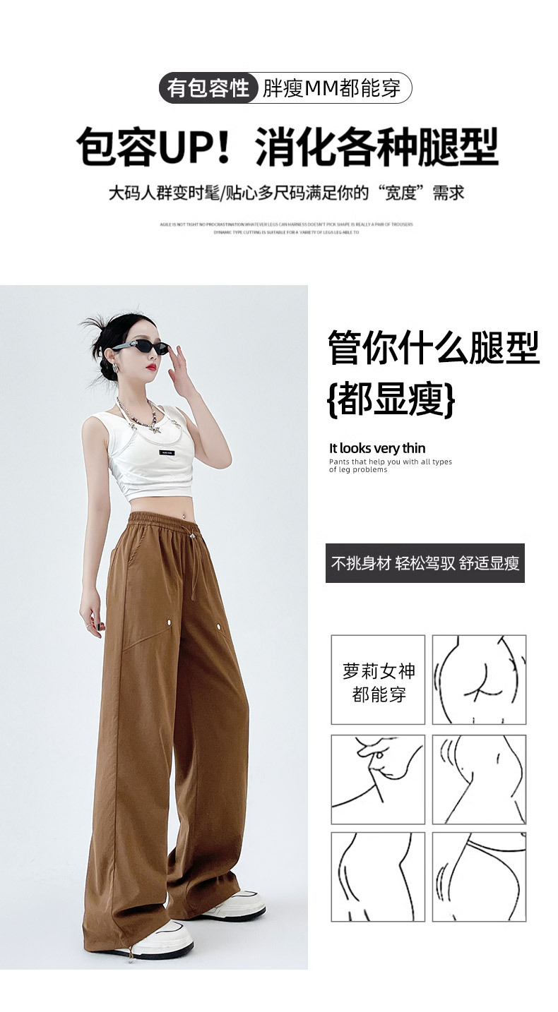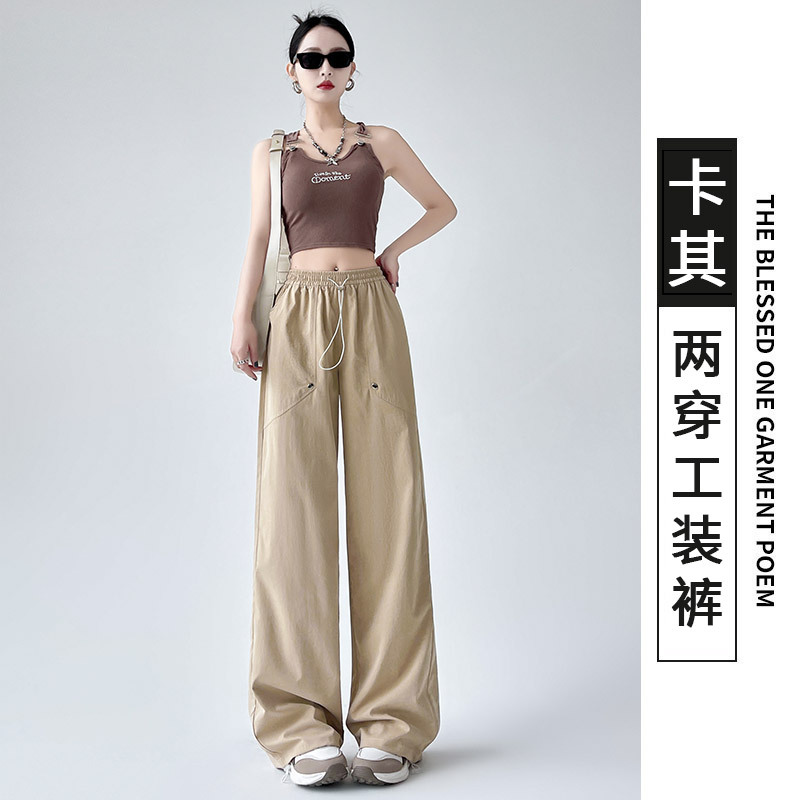 미국 스포츠 크록 바지 여자 여름 얇은 2025 새로운 등산 아이스 실크 빠른 건조 캐주얼 슬리밍 와이드 레그 바지