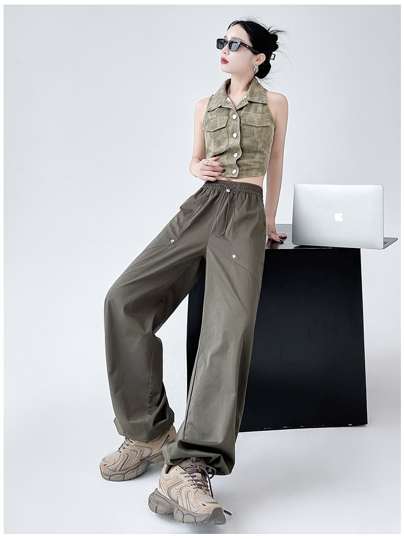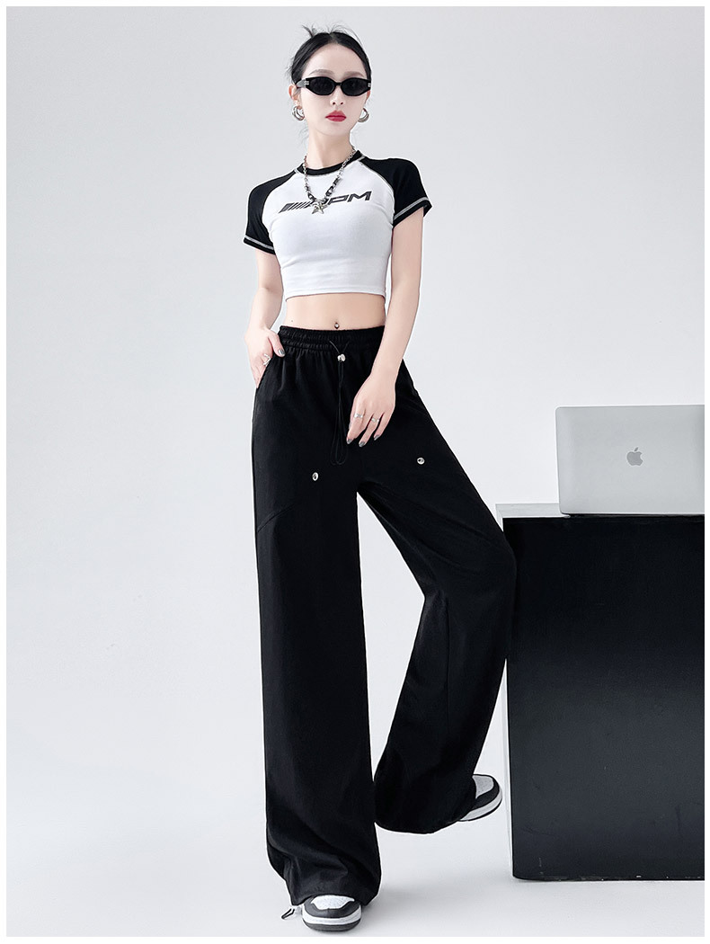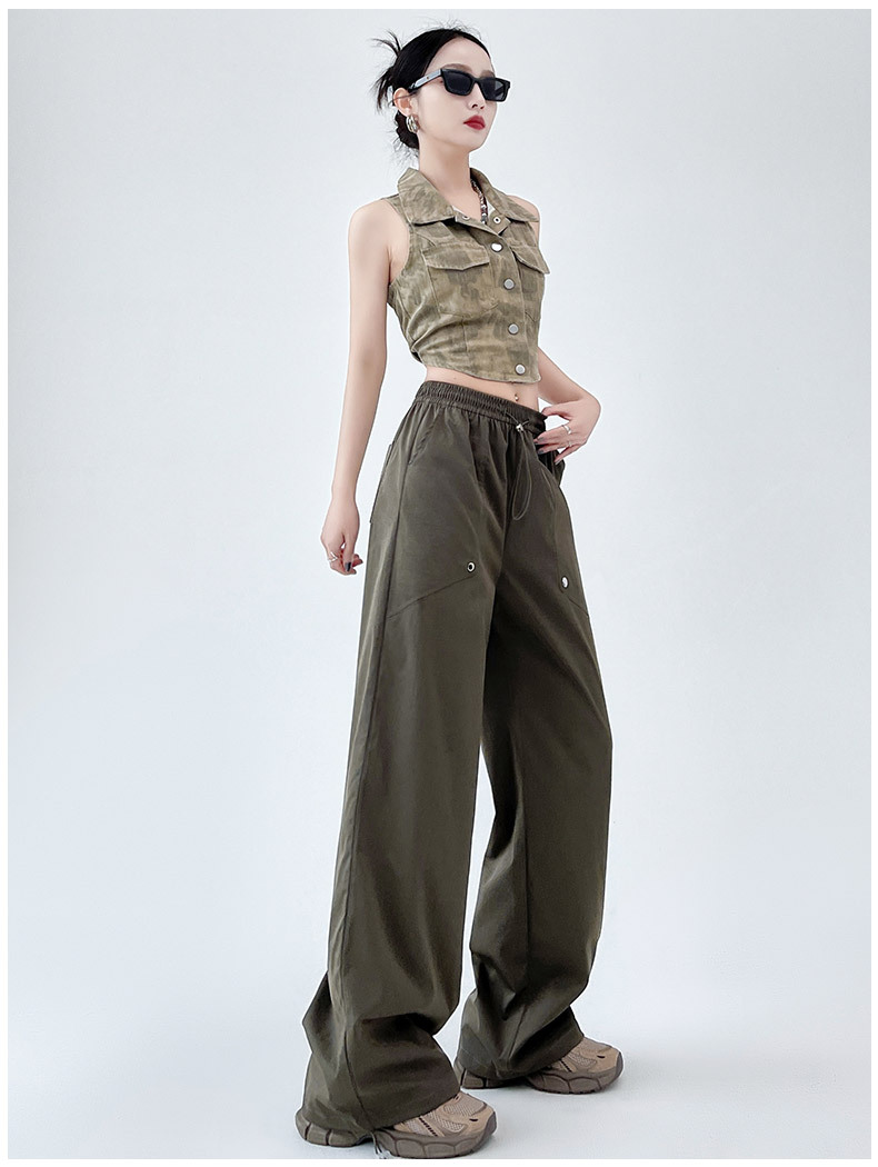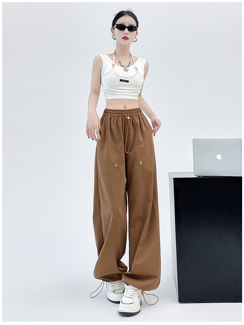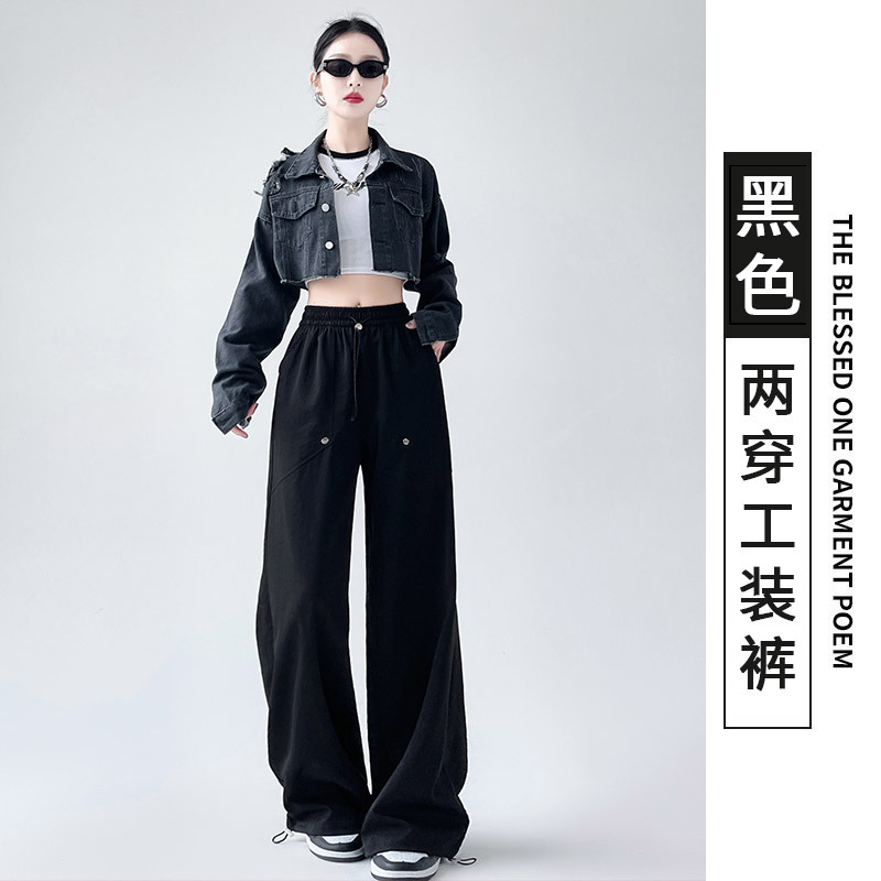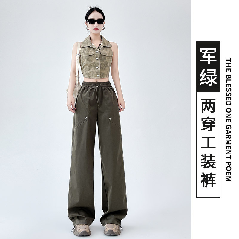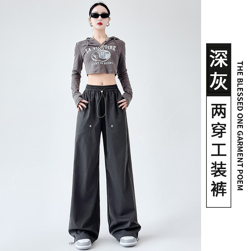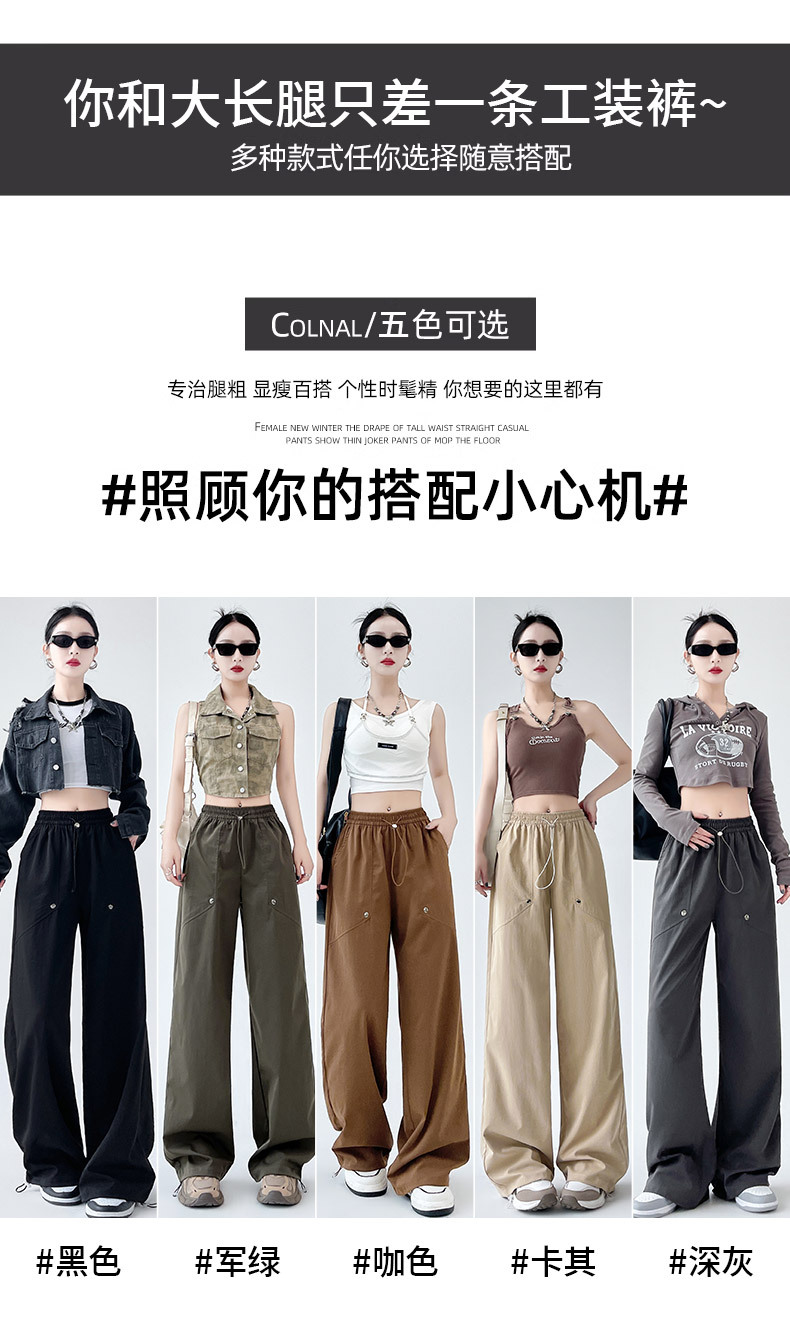 미국 스포츠 크록 바지 여자 여름 얇은 2025 새로운 등산 아이스 실크 빠른 건조 캐주얼 슬리밍 와이드 레그 바지
