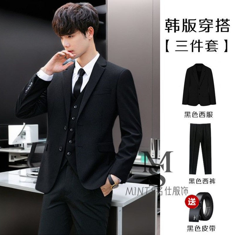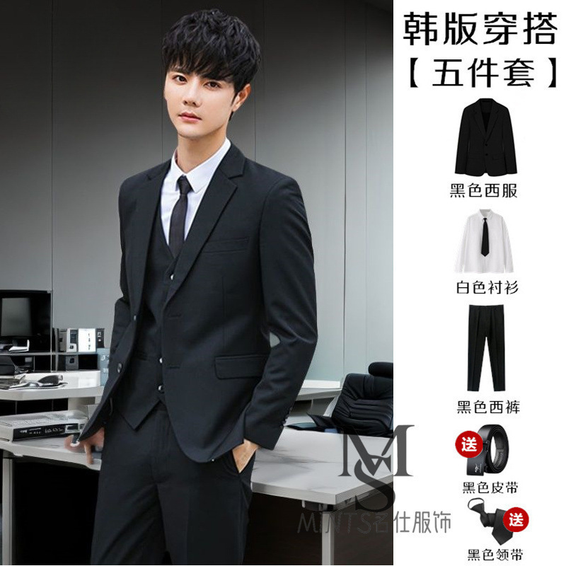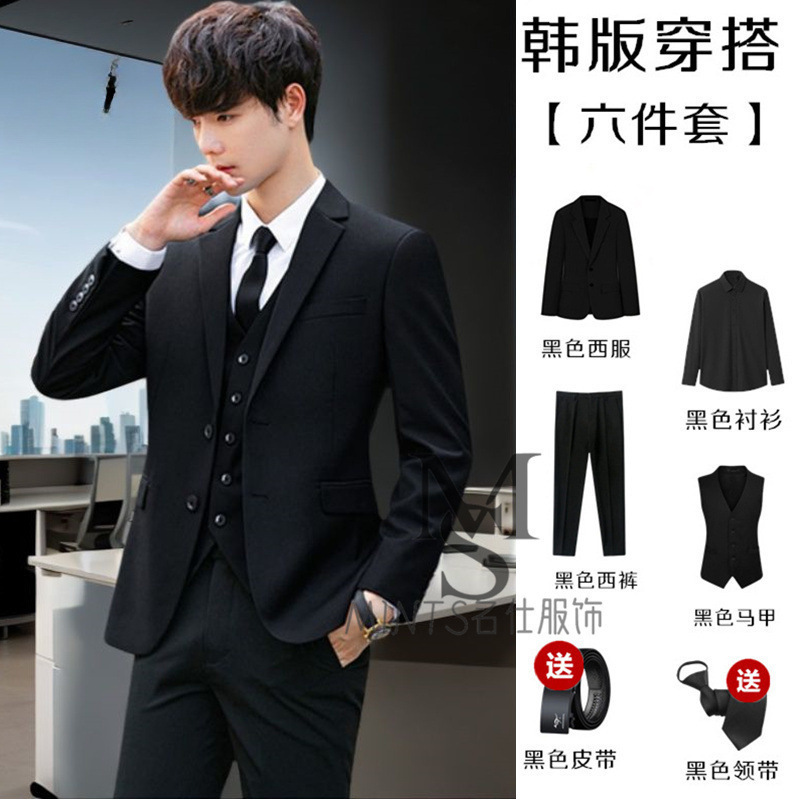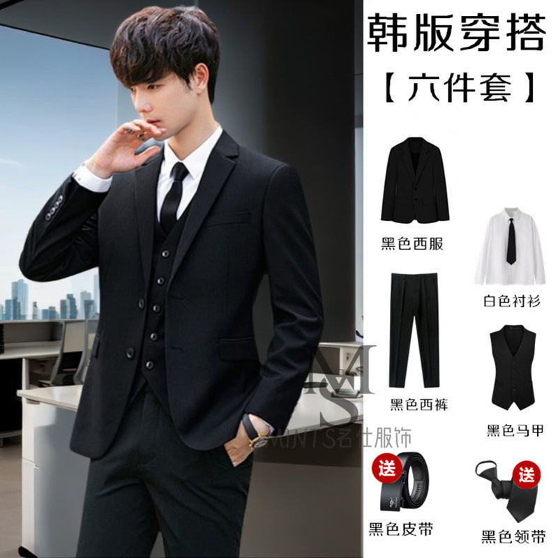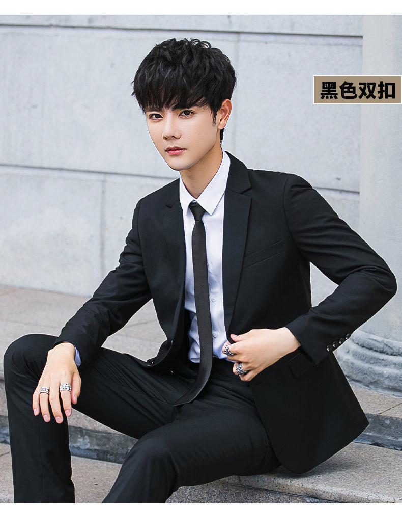 • 검은색 재킷 + 흰색 셔츠 + 바지 + 무료 벨트 타이
