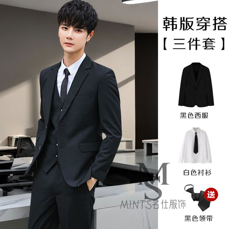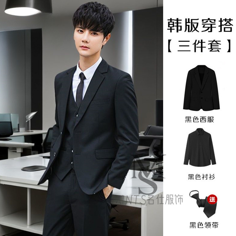 • 검은색 재킷 + 검은색 셔츠 + 무료 넥타이