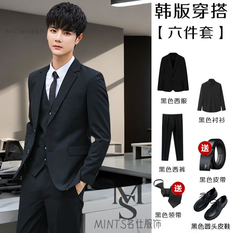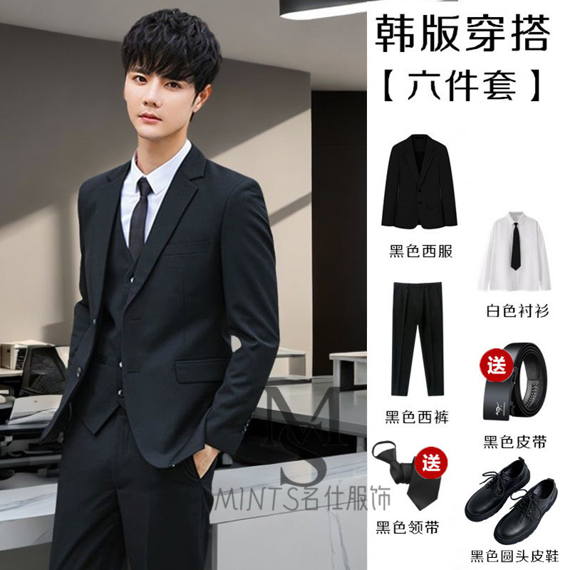 • 재킷 + 검은색 셔츠 + 바지 + 가죽 신발 + 무료 벨트와 넥타이