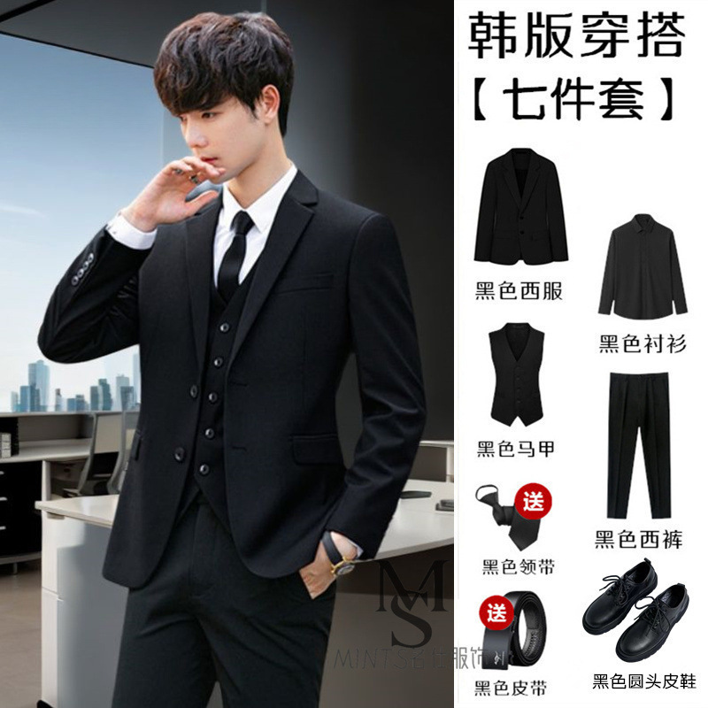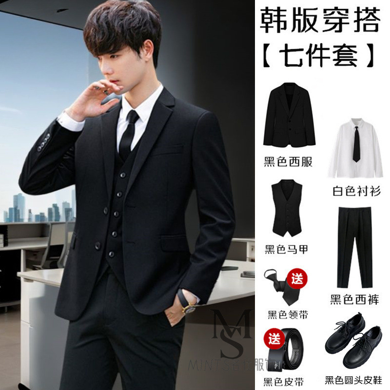 가벼운 성숙한 바람 러피 잘 생긴 작은 세트 소년 세트 한국 슬림 잘 생긴 대학생 인터뷰 세트 7 인조 세트