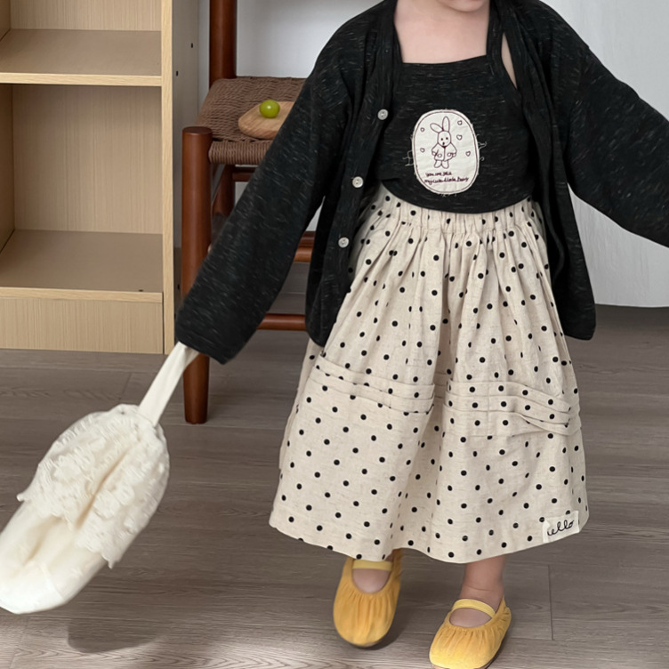 밀밭 시즌 봄과 여름 2025 새로운 도착 한국 스타일 아동복 소녀 린넨 폴카 도트 스커트 어린이 코튼 폴카 도트 스커트스토어 가기