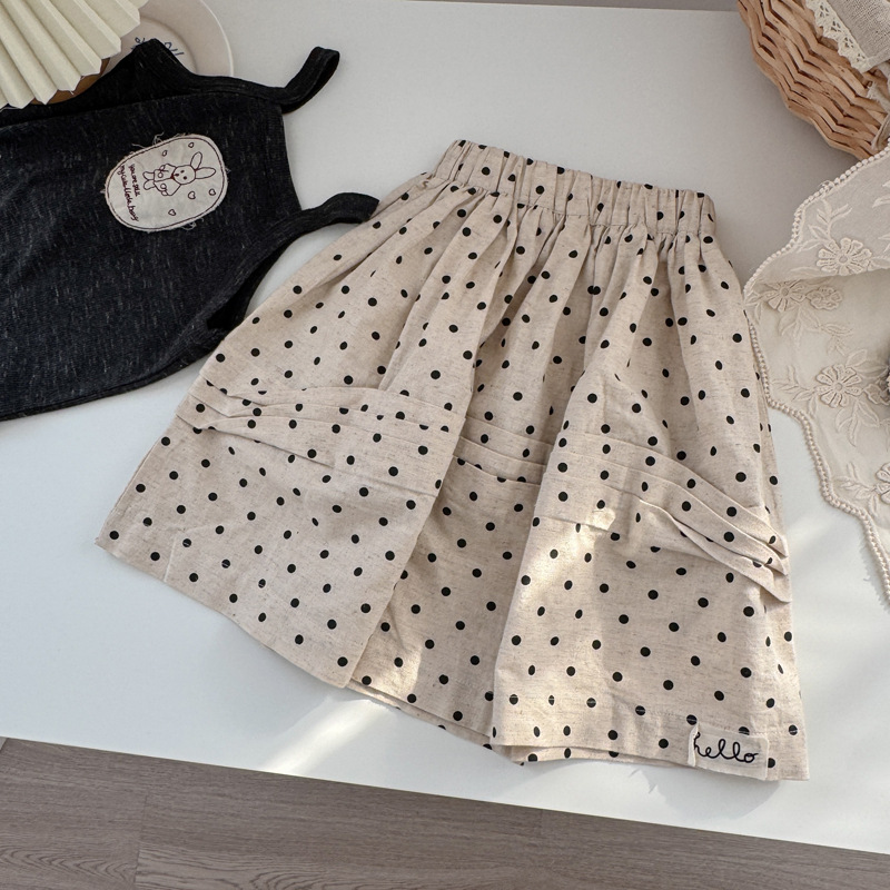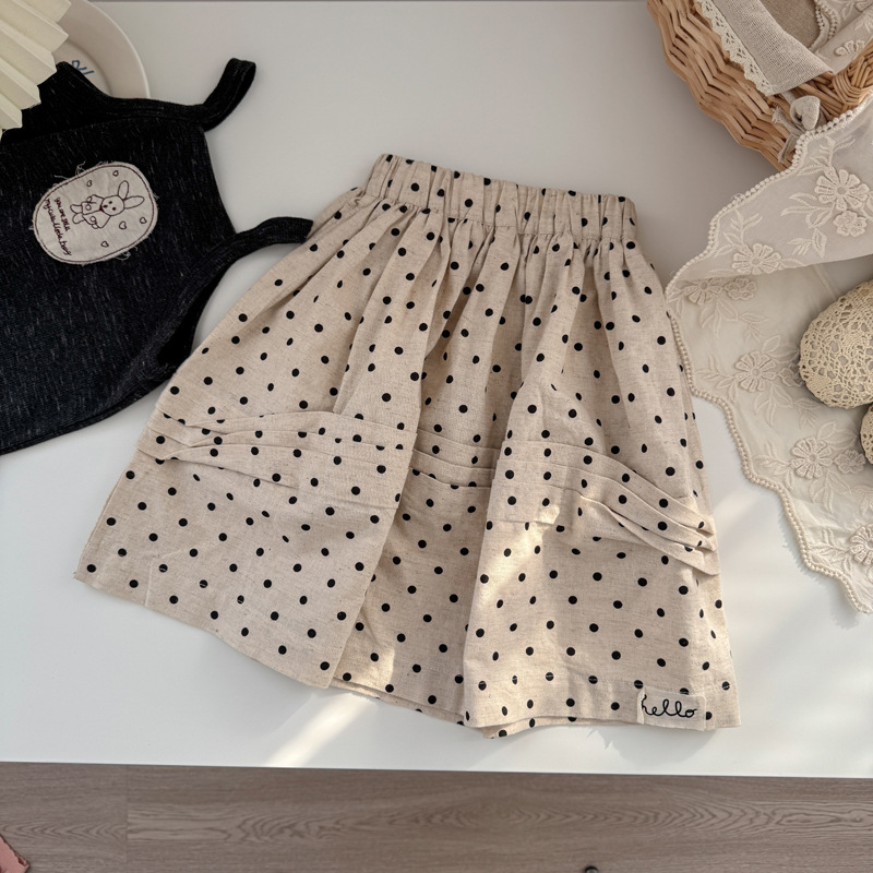 밀밭 시즌 봄과 여름 2025 새로운 도착 한국 스타일 아동복 소녀 린넨 폴카 도트 스커트 어린이 코튼 폴카 도트 스커트